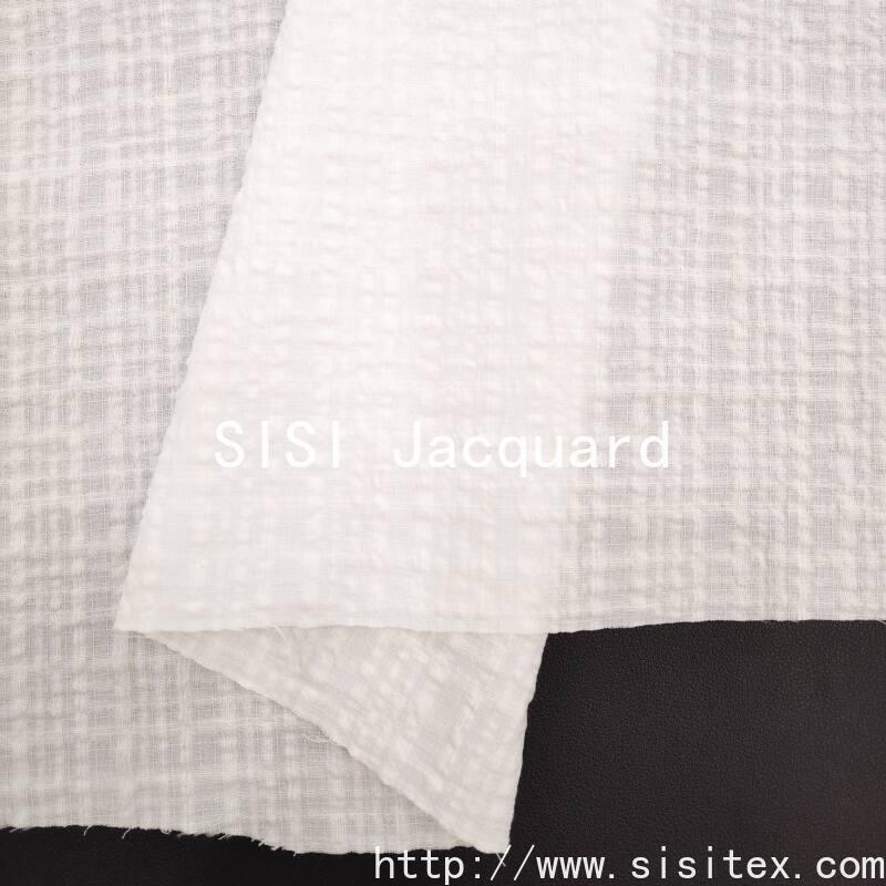 Model Number: SS18890 | Cotton and Polyester Ionic Bubble Weave Plaid Jacquard Fabric