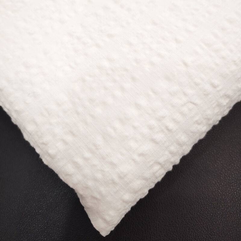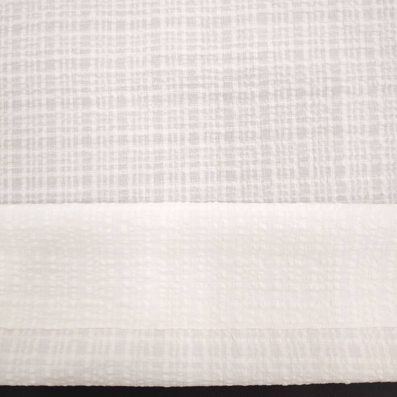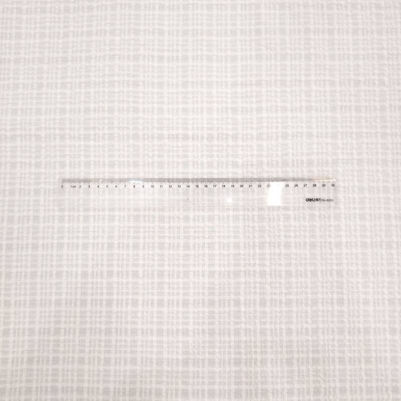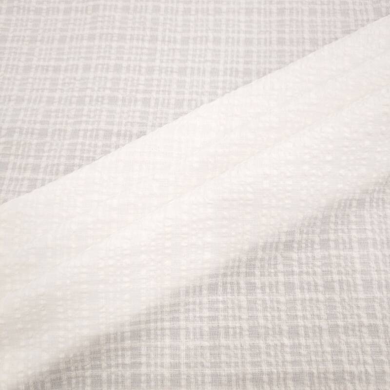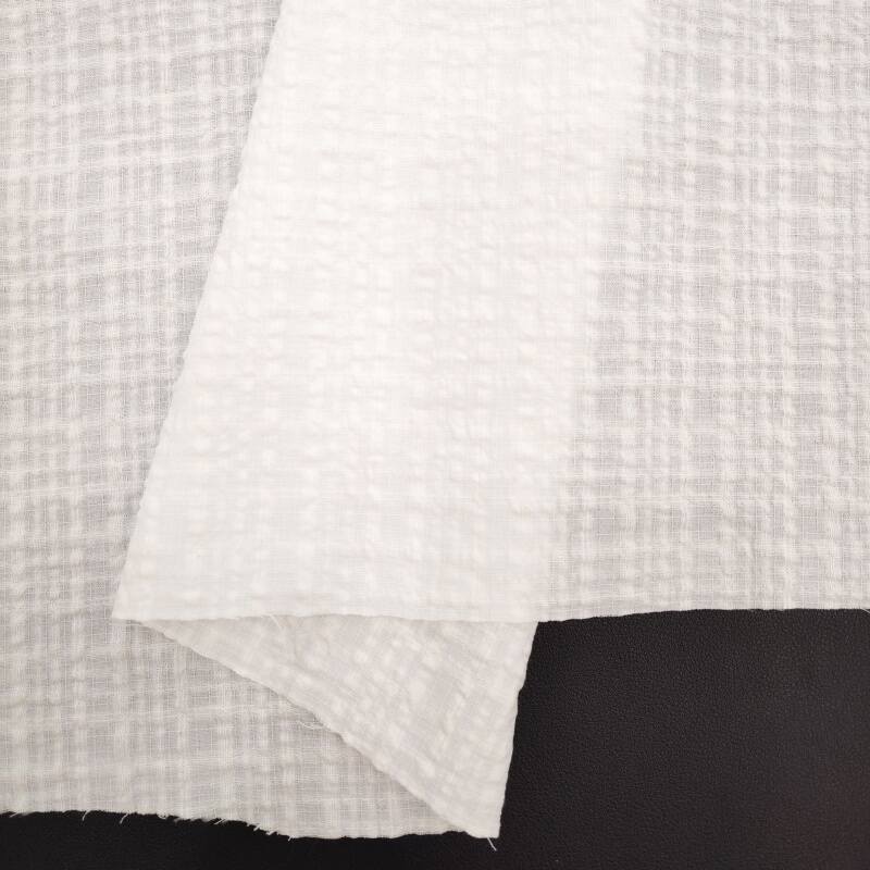 The check pattern is not a printed design; it is created by combining the jacquard weaving technique and bubble contraction. Visually, it presents a sense of order like a check pattern, while tactually, it has the three-dimensionality of bubbles, resulting in an extremely rich texture.