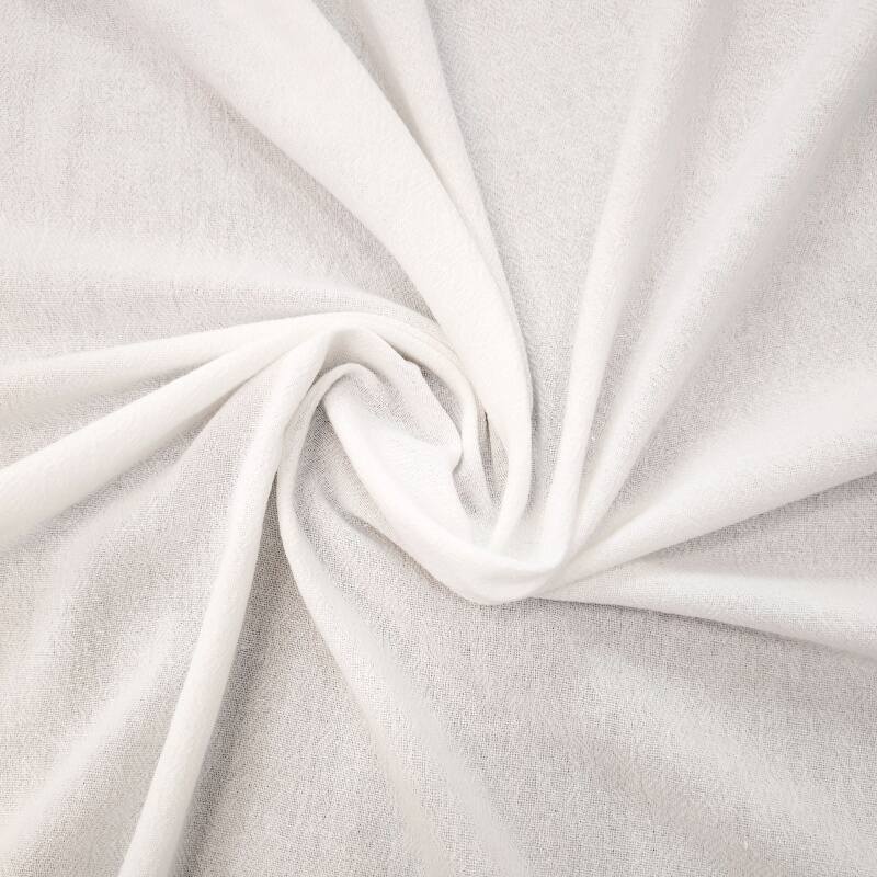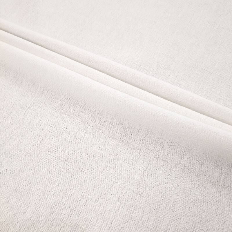 This product is made of 10S all-cotton double crepe fabric. It is woven with 10*10 thick yarn and 53*46 density, and the strong twisting process gives the fabric a natural and delicate double crepe texture. It is 100% cotton and complies with national standards. It is soft and skin-friendly, with good breathability. The weight is 190g/m², with a thick and full feel, and it has both stiffness and elasticity. It is a classic white color, simple and clean, with a prominent Korean-Japanese style. It is suitable for various clothing categories such as shirts, suits, halter tops, and dresses. It is a fabric that combines texture and practicality, suitable for all seasons, and especially suitable for creating a natural and casual style of dressing.