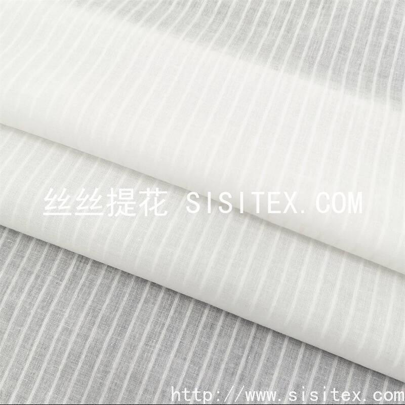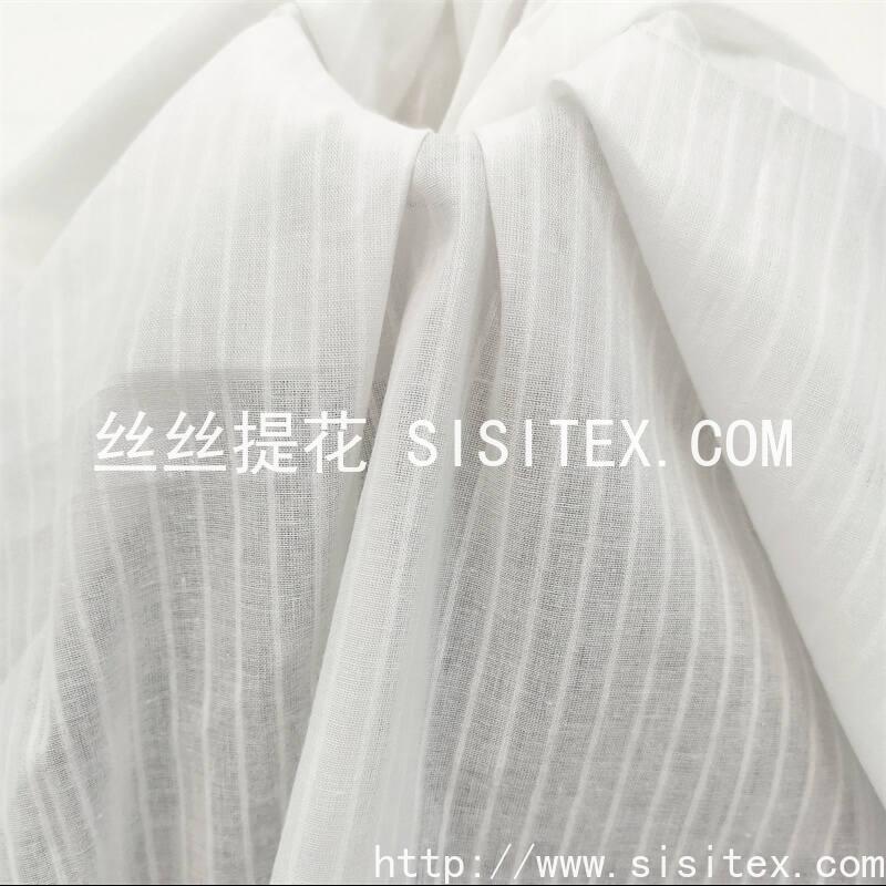 这款面料采用经典竖条纹与精致提花相结合的设计,远看简约大气,近看富有细节层次感。天然棉质赋予面料舒适的触感,同时兼具挺括性,适合制作高品质成衣。