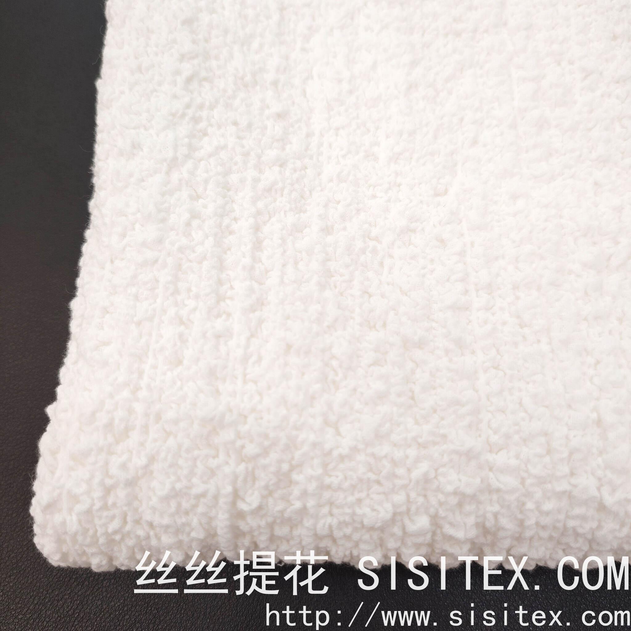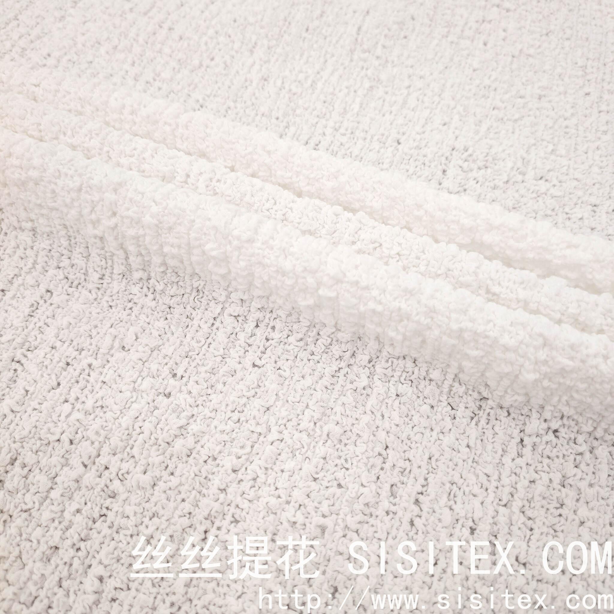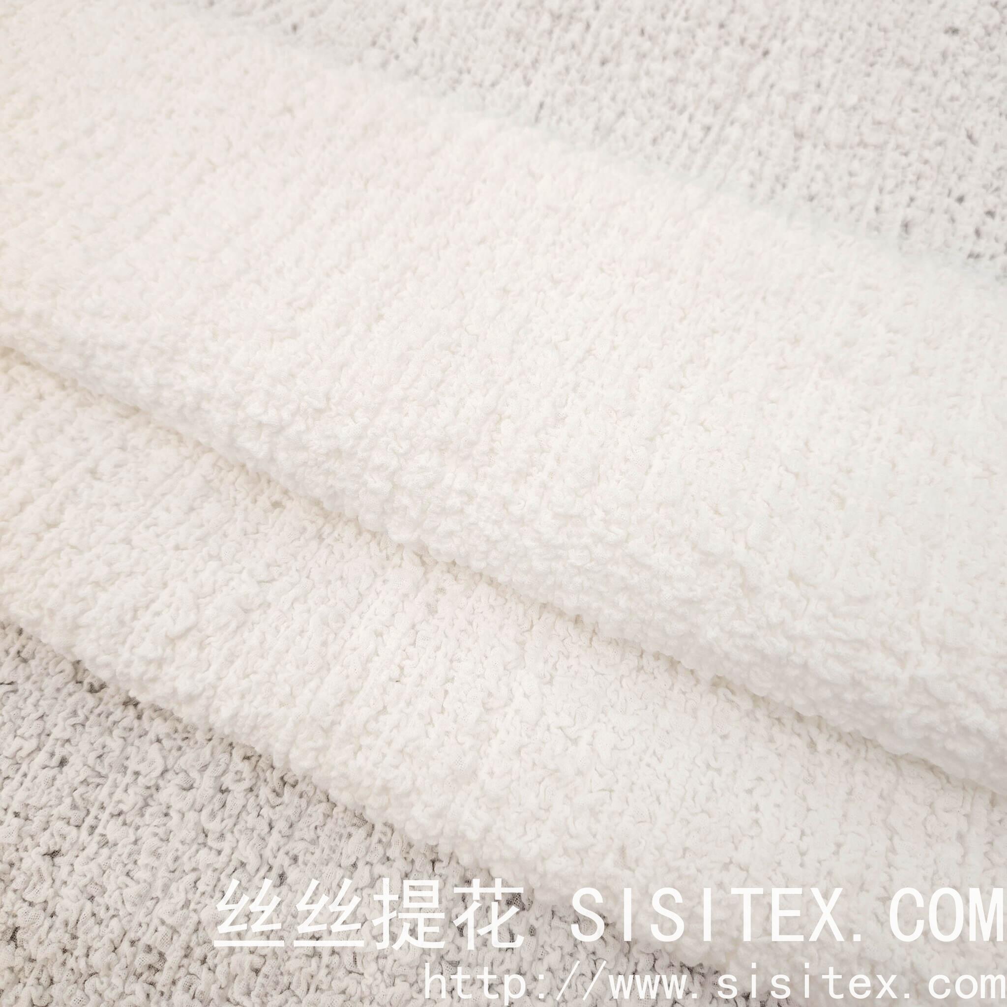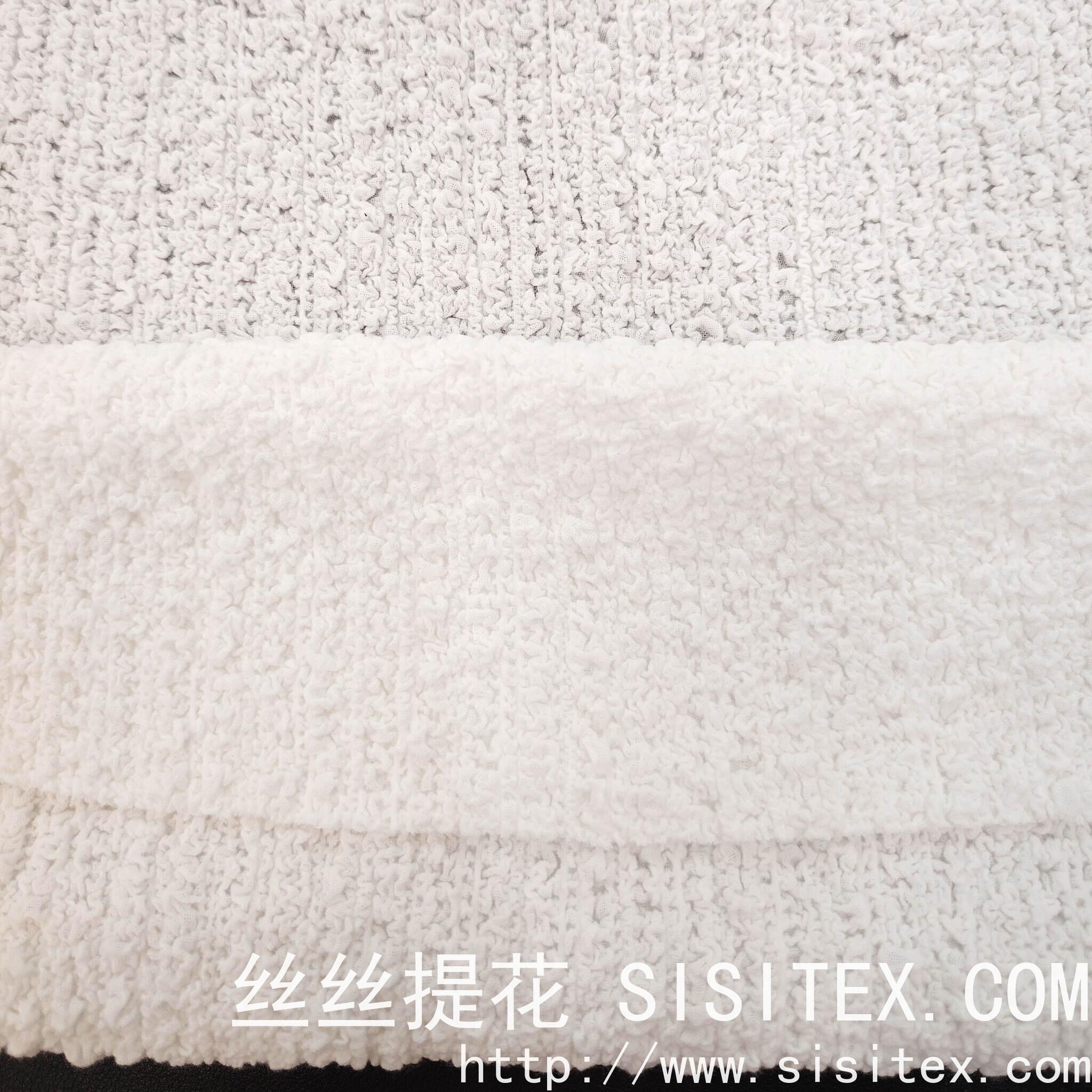 最大亮点在于其凹凸起伏的“泡泡格”提花,创造了强烈的三维立体效果,触感丰富,视觉上高级且富有艺术感。