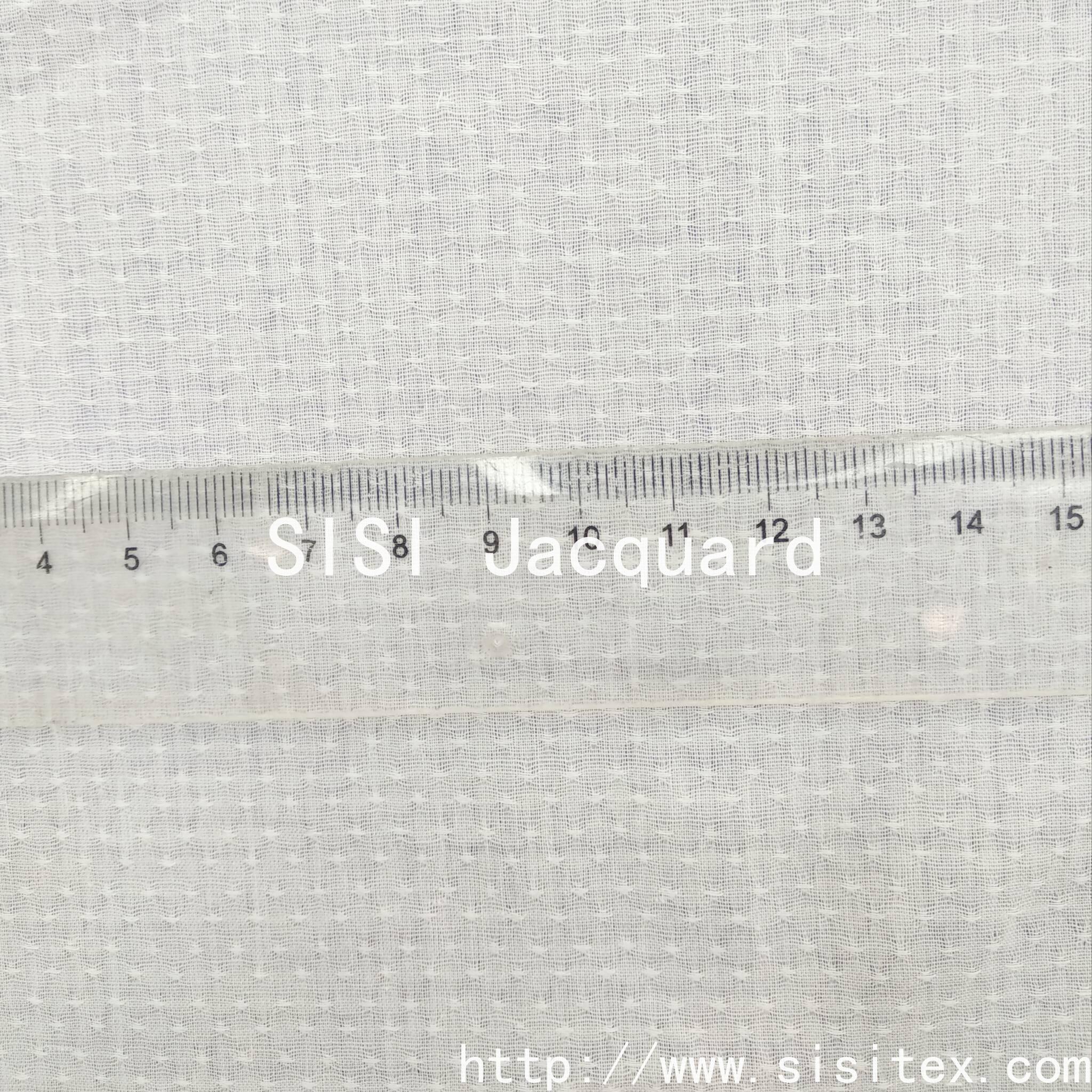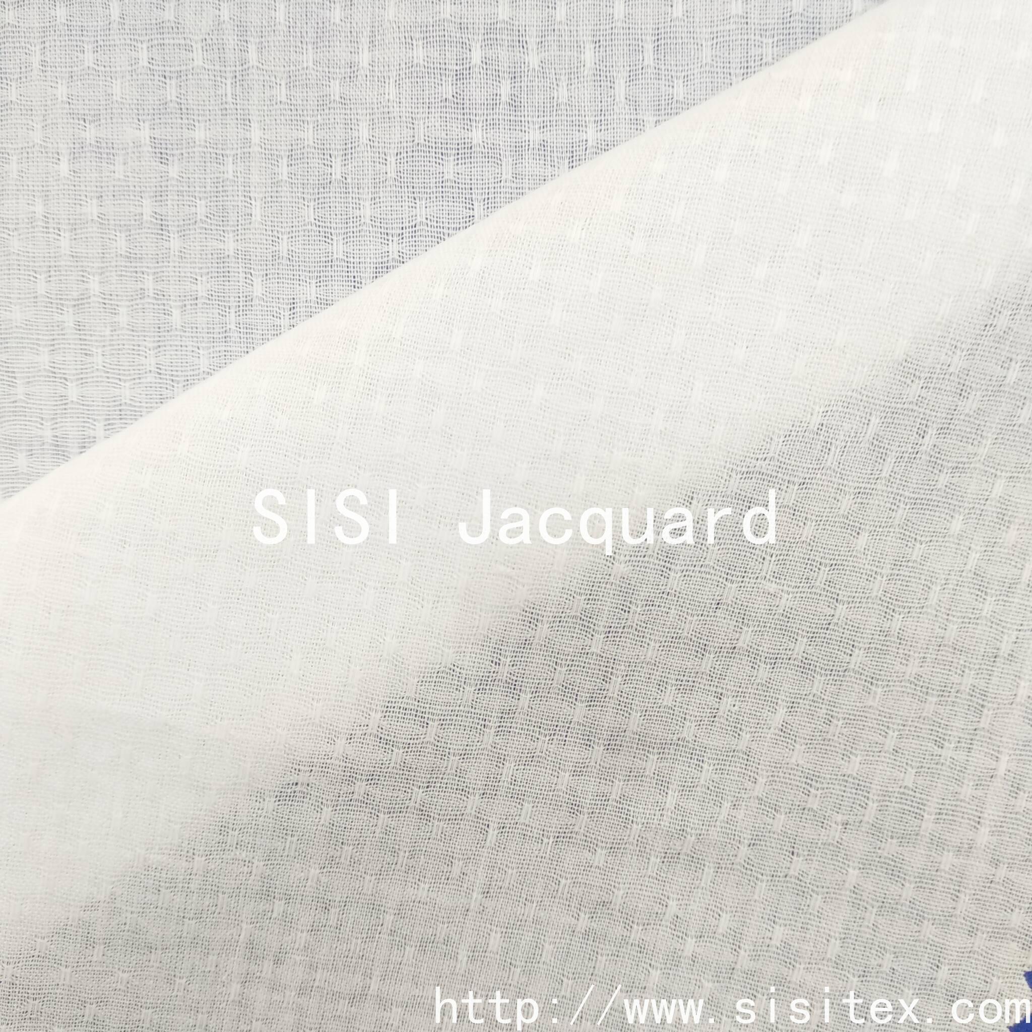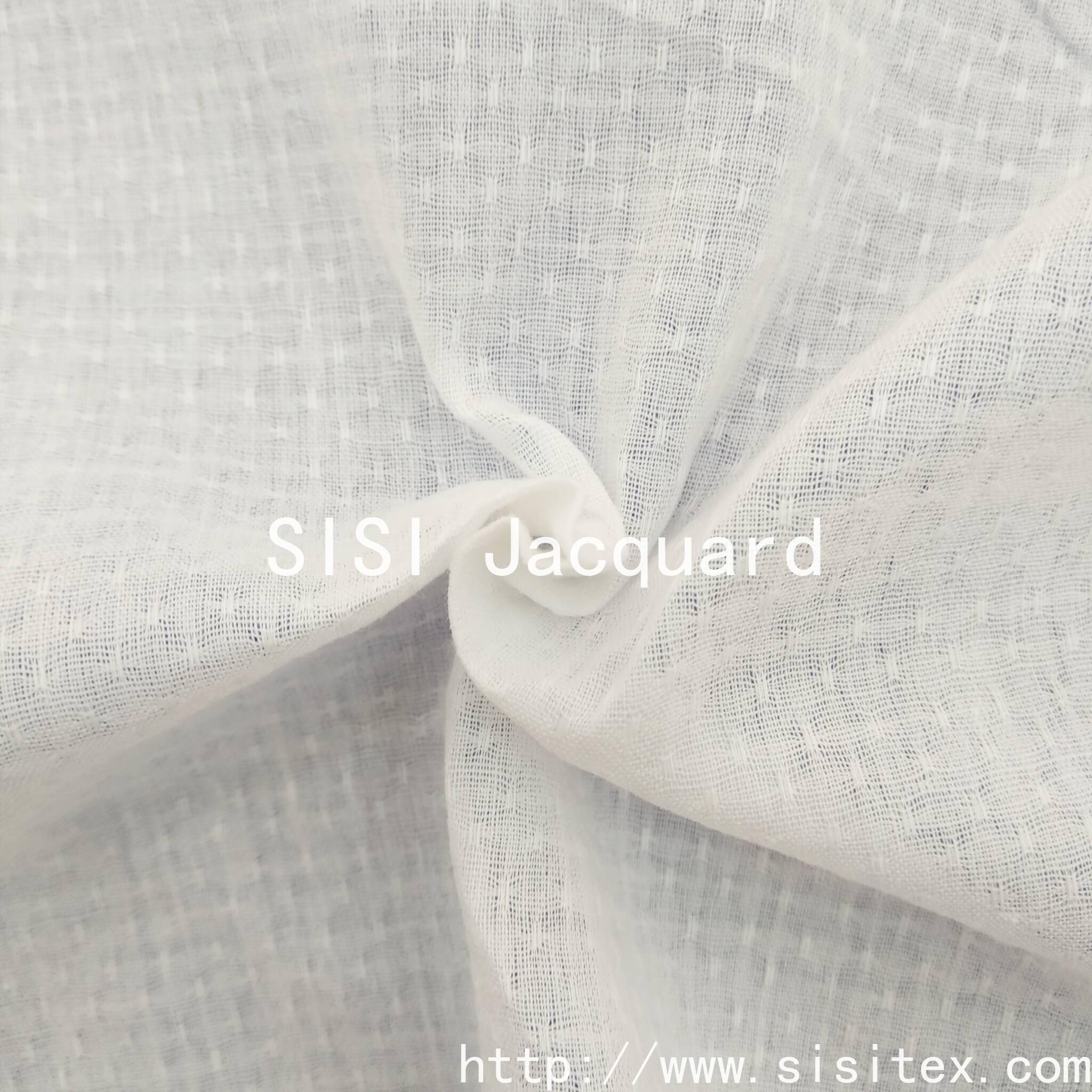 Shaoxing Sisi Textile Products Co., Ltd. produces "All-cotton Gauze Starry Sky Jacquard Fabric", which is woven with traditional gauze weaving techniques to create fine star-dotted jacquard patterns on a 100% cotton base. The fabric presents a unique translucent and hollowed-out effect, with star dot patterns that appear and disappear like stars in the night sky.