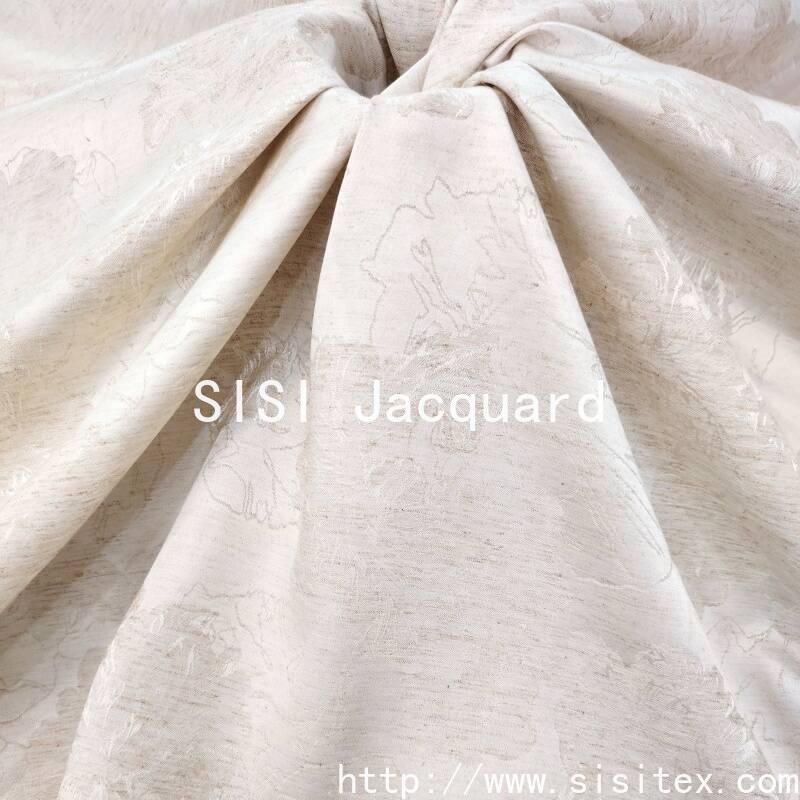 This jacquard fabric takes the classic peony pattern as its core design element and presents a three-dimensional relief-like exquisite pattern through exquisite jacquard craftsmanship. The fabric combines the luster and smoothness of rayon, the skin-friendliness and breathability of rayon, and the natural texture of linen, creating a light and smooth feel while also maintaining a natural and crisp silhouette. It is suitable for consumers who pursue the combination of high quality and artistic sense.