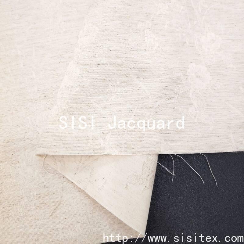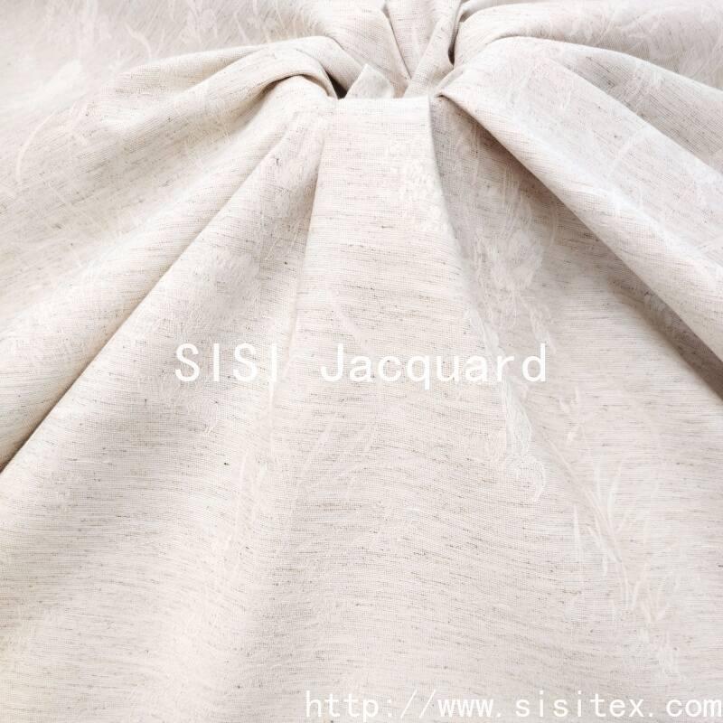 This jacquard fabric takes the classic peony pattern as its core design element, combining traditional weaving techniques with jacquard technology to create a three-dimensional floral texture. The material is made by blending 27% rayon, 58% cotton and 15% linen in the golden ratio. It not only retains the skin-friendly and breathable properties of cotton, but also combines the natural texture of linen with the smooth and drape of rayon. The overall touch is fine yet firm. The peony flower pattern is vivid and lifelike, with elegant color matching, endowing the fabric with a strong artistic atmosphere. It is suitable for consumers who pursue quality and natural beauty.