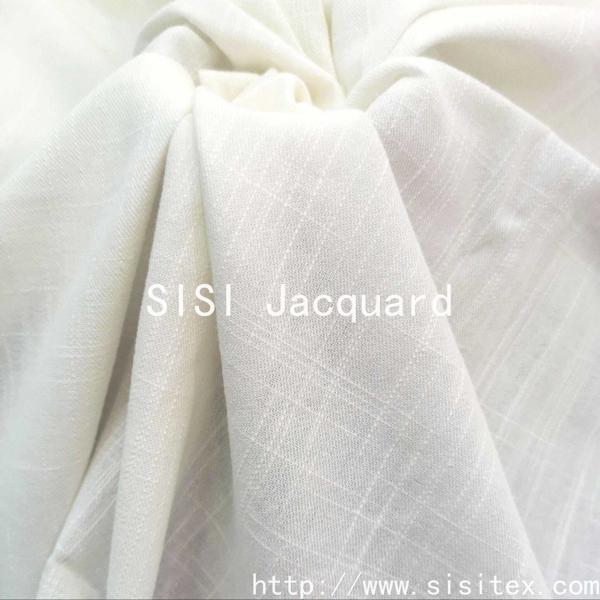 The "SISI TEX" all-cotton twill bamboo jacquard fabric produced by Shaoxing Sisi Textile Products Co., Ltd. perfectly combines natural texture with exquisite craftsmanship. Selected long-staple cotton fibers are used, and the twill warp and weft weaving gives the fabric a soft and flexible touch. Bamboo yarns are dotted among them, creating a three-dimensional jacquard texture that is staggered and well-arranged. Whether it's creating artistic shirts, casual home wear, or matching them with wabi-sabi soft furnishings, it can infuse the works with a natural and simple soul. Breathable and skin-friendly, suitable for all seasons, it is the choice for those who pursue both quality and style.
