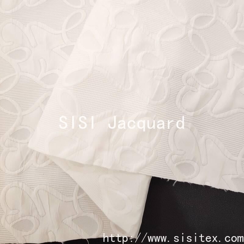This product is a high-end woven jacquard fabric (item No. : SS20405), precisely woven from 100% high-quality polyester. It features a unique embossed texture created through three-dimensional jacquard technology, offering a rich and delicate touch. The surface presents a low-key matte texture and a faint luster flow, perfectly blending modern craftsmanship with traditional aesthetics. It is an ideal choice for creating items in a light luxury style.