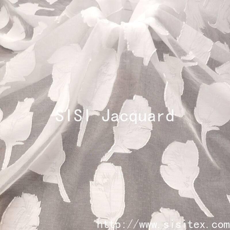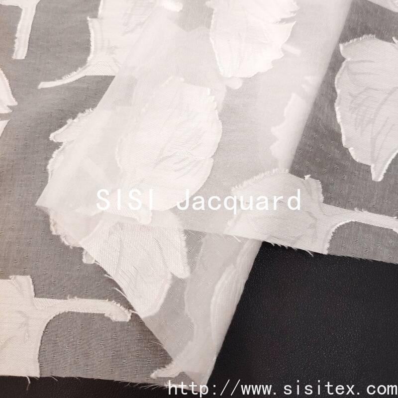 The jacquard cutting technique features flowers with a raised height of up to 1.2mm (as shown in the picture). The petals are layered like real flowers suspended on the gauze, and the three-dimensional veins can be touched with fingertips.
