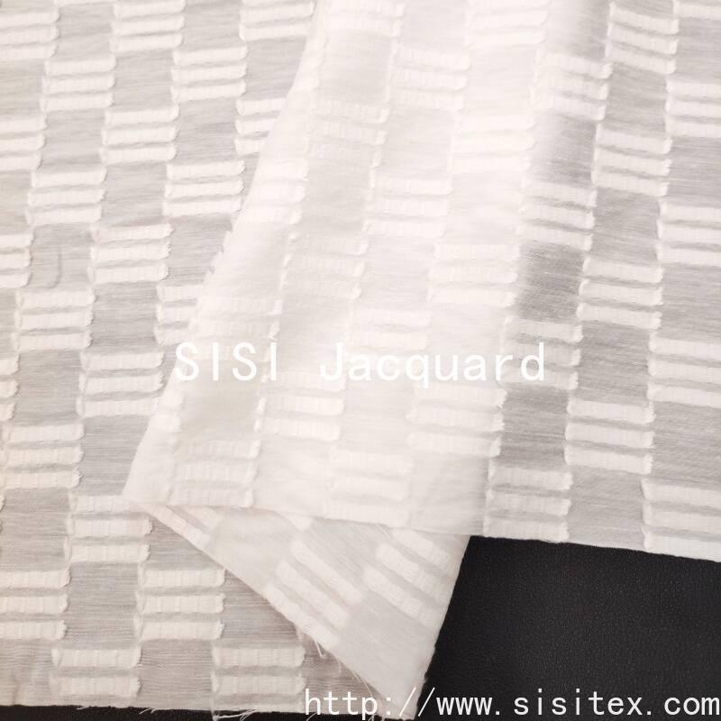 Explore the art of texture and light! This H25216 jacquard printed fabric is crafted through exquisite weaving techniques, creating a unique "pineapple leaf" three-dimensional texture. The fabric combines 84% viscose for its smooth drape, 9% nylon for its strong resilience, and 7% linen for its natural roughness, presenting a rich and sophisticated tactile experience.