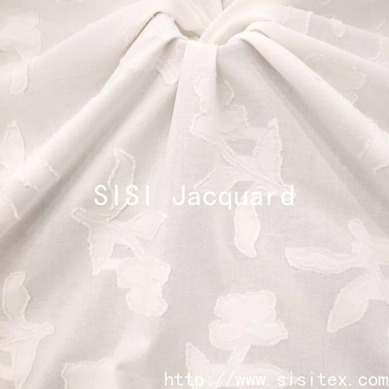 **H25219** is a high-end cotton fabric that combines traditional jacquard weaving technique with modern cutting techniques. It is made from 100% high-quality cotton, and through precise weaving, it presents a three-dimensional relief pattern. The flower design is lively and full, with a soft and skin-friendly texture. The fabric surface is created by the cutting technique to remove some of the raised lines, resulting in a light and dark interwoven relief effect. This gives the fabric a distinct artistic beauty with clear layers, while maintaining natural breathability and draping texture. It perfectly embodies "low-key luxury".