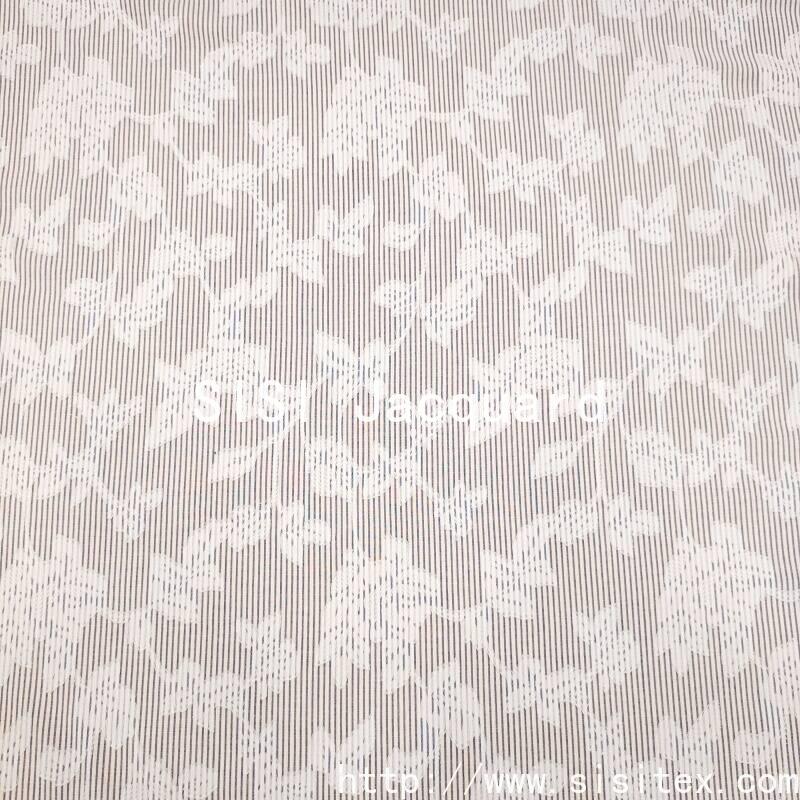 This polyester-cotton striped jacquard jacquard fabric is made from 50% cotton and 50% polyester blended yarn. It is woven through a jacquard and embroidery process using a blue-white or black-white striped base fabric, creating a three-dimensional and lively geometric pattern. The fabric density is 147×62, with a weight of 119g/㎡. It has a thick and crisp texture, combining the comfort and breathability of cotton with the wrinkle resistance and durability of polyester. The striped base combined with the three-dimensional jacquard design has strong layers, distinct color contrasts, and an overall style that is simple and powerful, with an element of modern European style. It is suitable for creating clothing and home products that combine practicality and design.