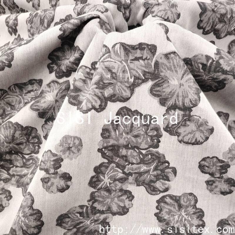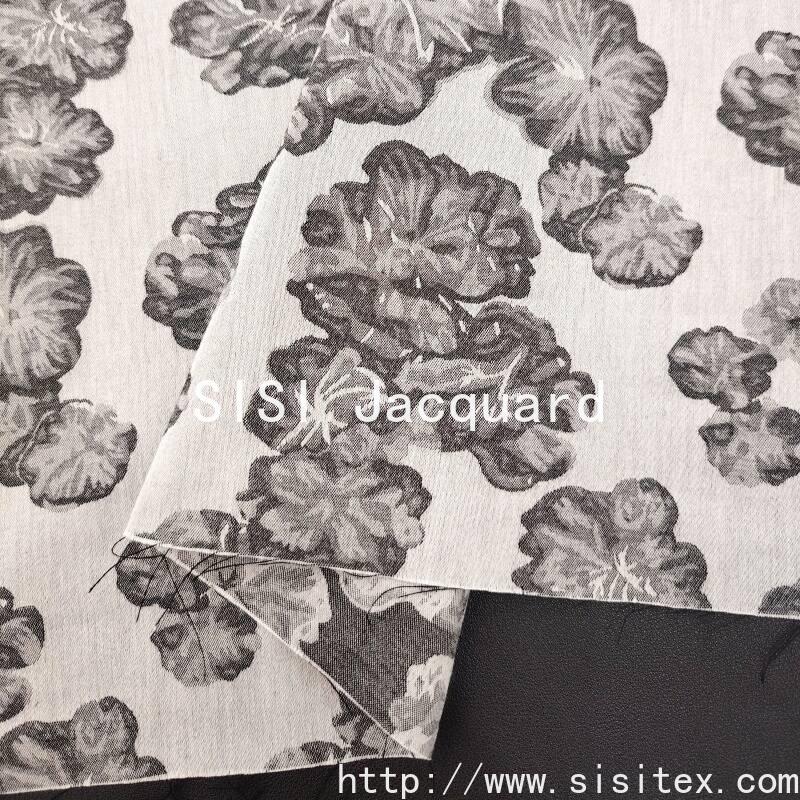 This woven ink-wash lotus pattern jacquard fabric is made from a blend of 90% cotton and 10% polyester yarns. Through the jacquard weaving technique and color weaving process, it presents a blooming lotus pattern that resembles an ink wash painting. The fabric density is 115×56, with a weight of 141g/㎡. It is soft and thick, combining the comfort and skin-friendliness of cotton with the durability and stiffness of polyester. The lotus pattern is elegant and lively, with a natural color transition, and exudes an Eastern ink-wash artistic style and freehand beauty. The overall style is classical and elegant, with a touch of Zen and artistic atmosphere. It is suitable for creating new Chinese-style clothing, tea person attire, and elegant home textile.