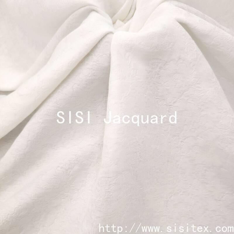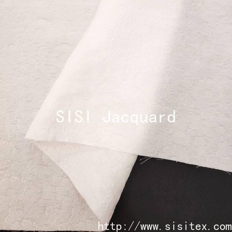 This woven flower relief jacquard fabric is made by combining 41% nylon, 41% cotton and 18% polyester yarns. Through a high-density weaving method and three-dimensional jacquard technology, it creates a flower texture that resembles a relief. The fabric has a density of 178×183 and a weight of 144g/㎡. It is tightly and thickly textured, with a soft and flexible touch. It combines the elasticity of nylon, the smoothness and draping of cotton, and the stiffness of polyester. The flower pattern is full and distinct in layers, resembling a relief art. The overall style is luxurious and exquisite, with a high-grade texture and feminine charm. It is suitable for creating formal dresses, high-end clothing, and light luxury home decorations.