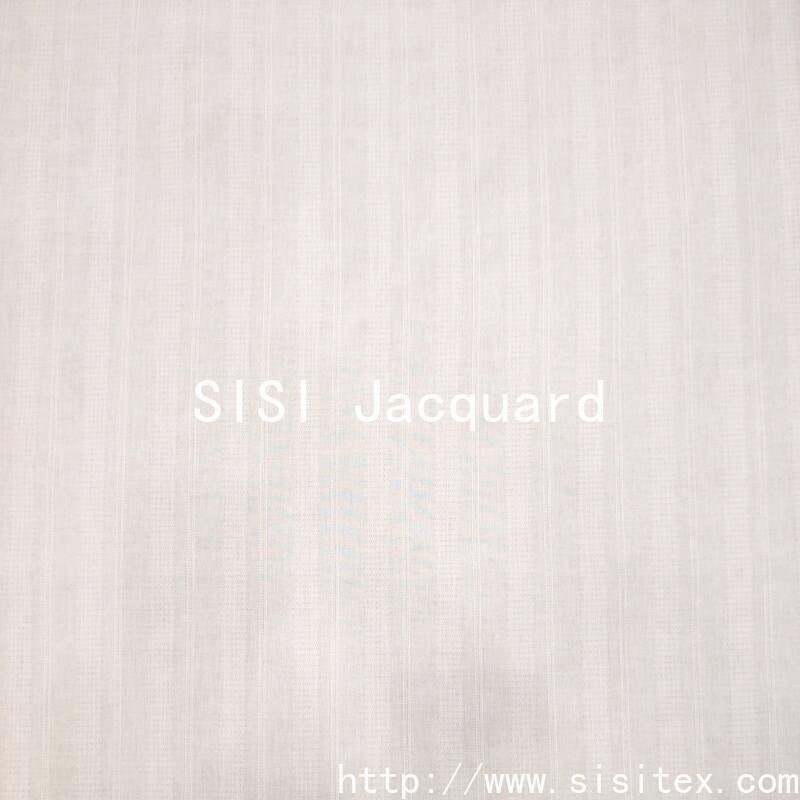 This cotton striped jacquard fabric is made of 100% high-quality cotton yarn. It combines vertical stripe weaving technique with jacquard weaving to create a delicate and three-dimensional concentric knot pattern and stripe texture. The fabric density is 100×68, with a weight of 109g/㎡. It is soft and elastic, combining the natural skin-friendly property of cotton with the longitudinal extension effect of the stripe fabric. The stripe base is clean and simple, with the concentric knot jacquard点缀 in between, adding details and design ingenuity. The overall style is simple and elegant, suitable for creating comfortable and stylish daily wear and home textiles.