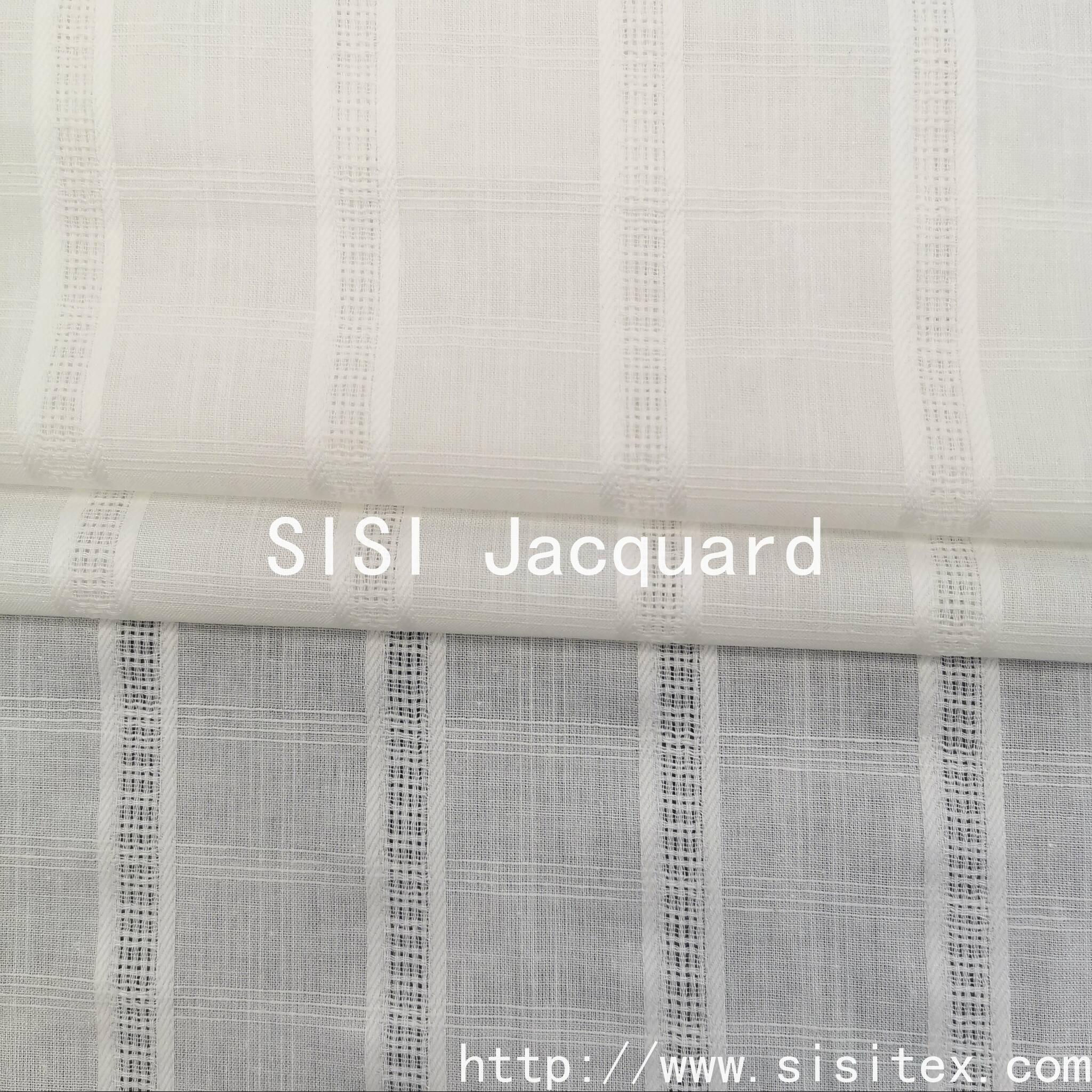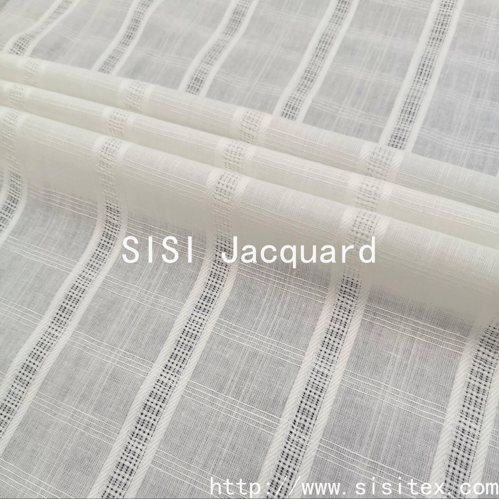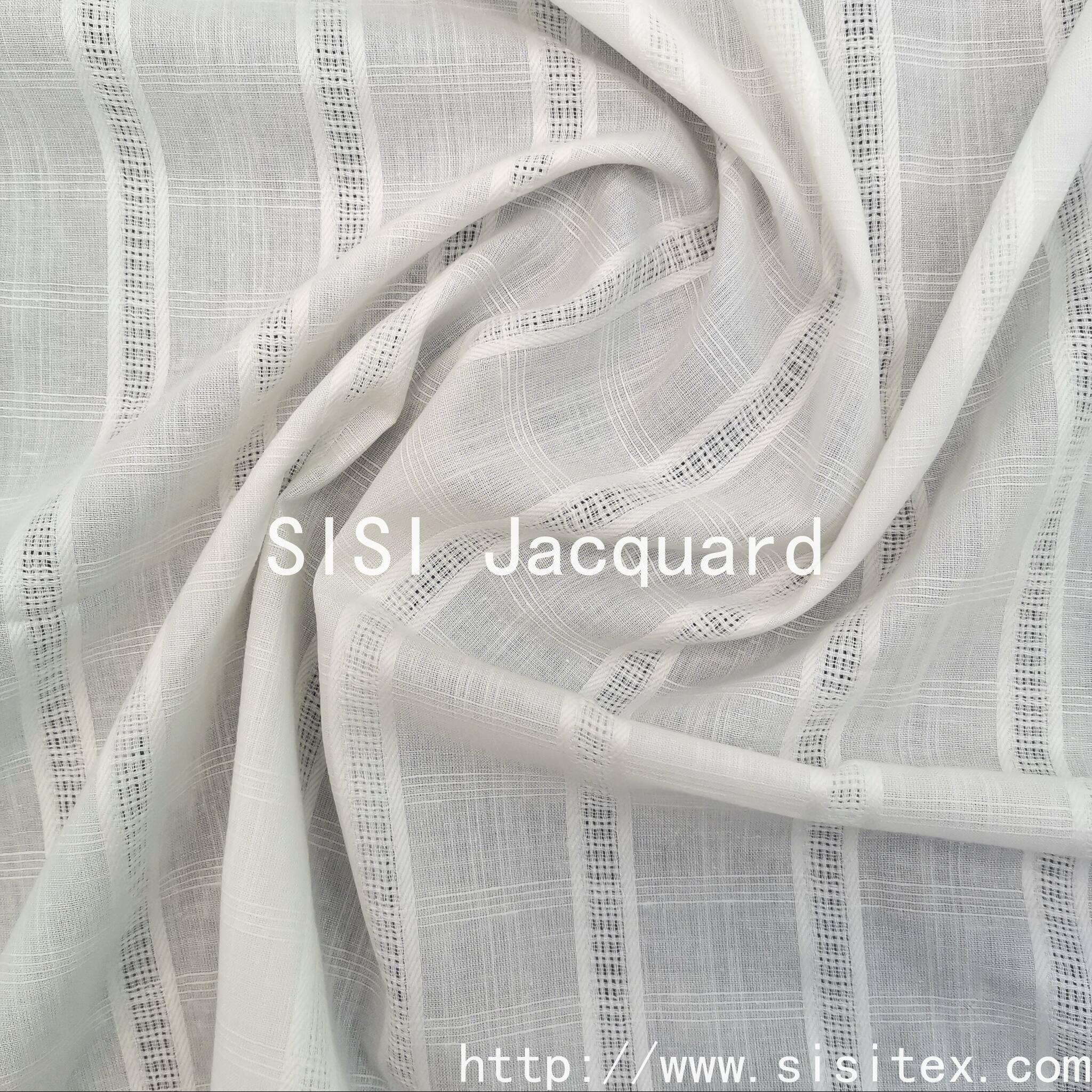 Woven from high-quality cotton yarn, it features a classic geometric jacquard and vertical stripe design to present a three-dimensional texture. Paired with a gauze and hollowed-out technique, it is breathable and not stuffy. The fabric is soft and smooth, suitable for making shirts, trousers and home textile products. High-density weaving ensures durability. The jacquard parts are exquisitely detailed and the style is simple and versatile. Whether it's daily wear or home decoration, it can enhance the sense of quality.