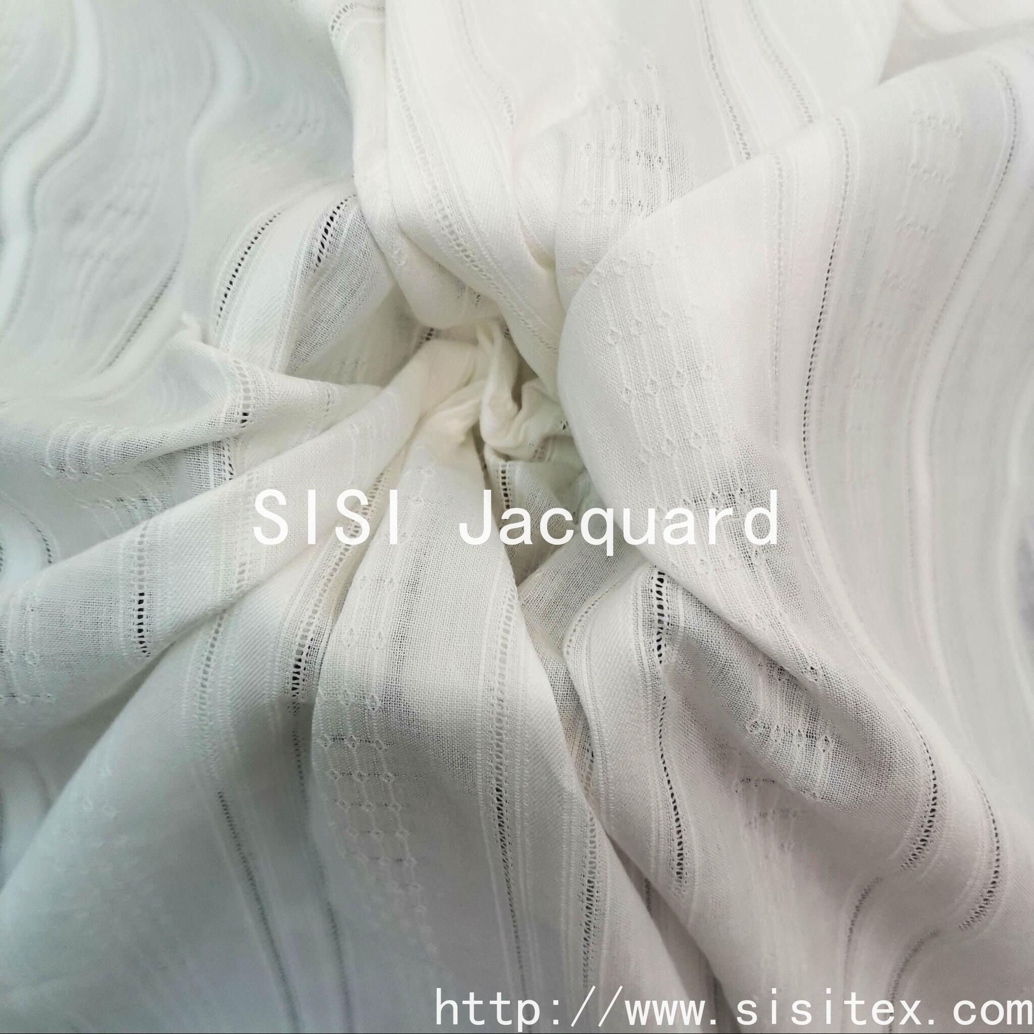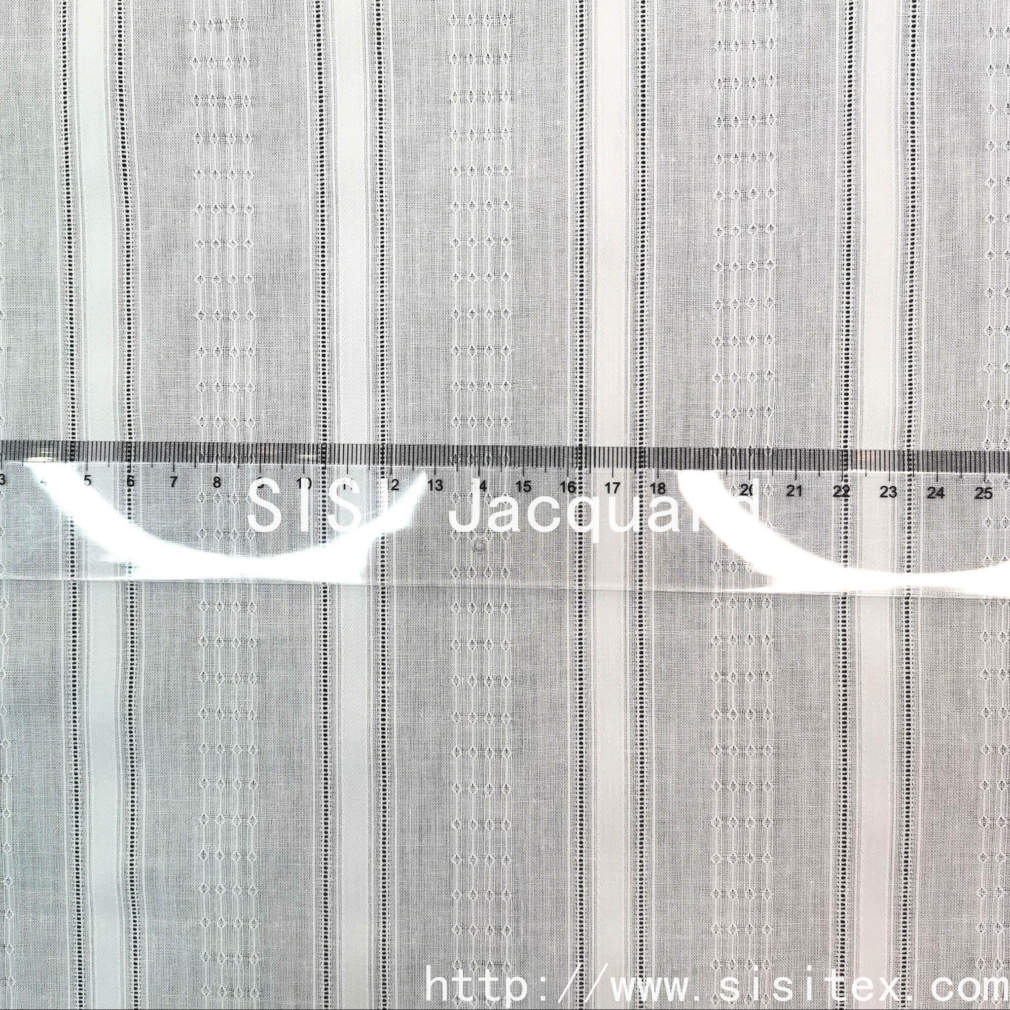 This all-cotton gauze vertical jacquard fabric innovatively combines classic vertical stripes with gauze craftsmanship, exuding a faint sense of light and shadow in its breathable texture. The three-dimensional jacquard pattern endows the stripes with dynamic layers, and the all-cotton material ensures skin-friendly softness. It is an ideal choice for making light and thin summer items. Whether it's a smooth dress or a breathable home curtain, they can add a touch of fresh rhythm to your design and life.