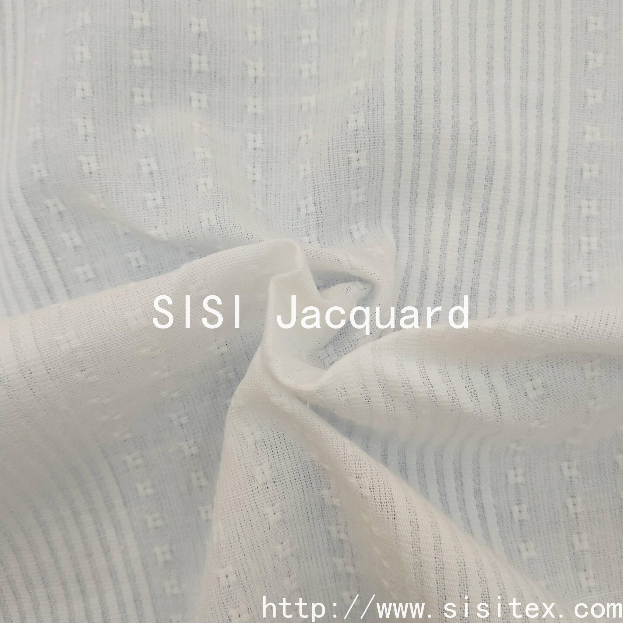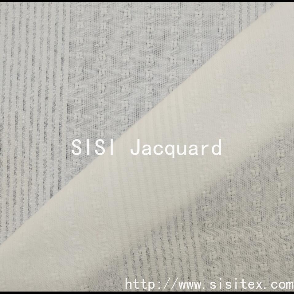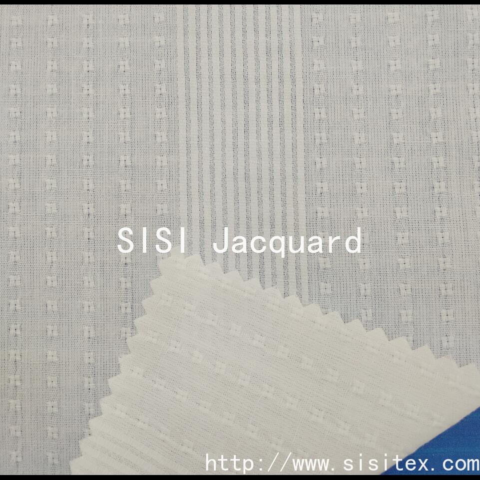 It is woven with high-quality cotton yarn, featuring a classic geometric motif jacquard and vertical stripe design to present a three-dimensional texture. Combined with a mesh embroidery technique, it is breathable without being stuffy. The fabric width is 145cm, soft and flowing, suitable for making shirts, pants and home textile items. The high-density weaving ensures durability, and the details of the jacquard part are exquisite, with a simple and versatile style. Whether for daily wear or home decoration, it can enhance the quality perception.