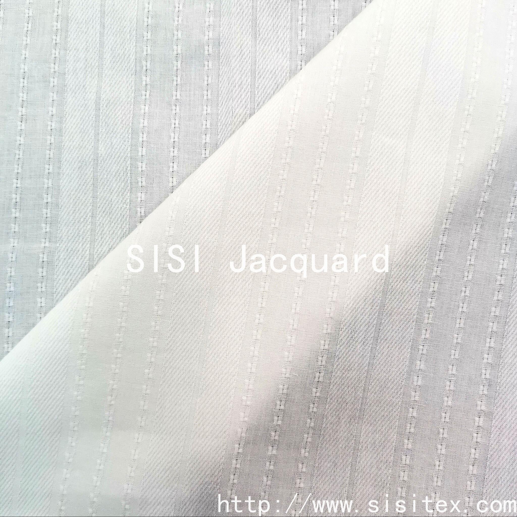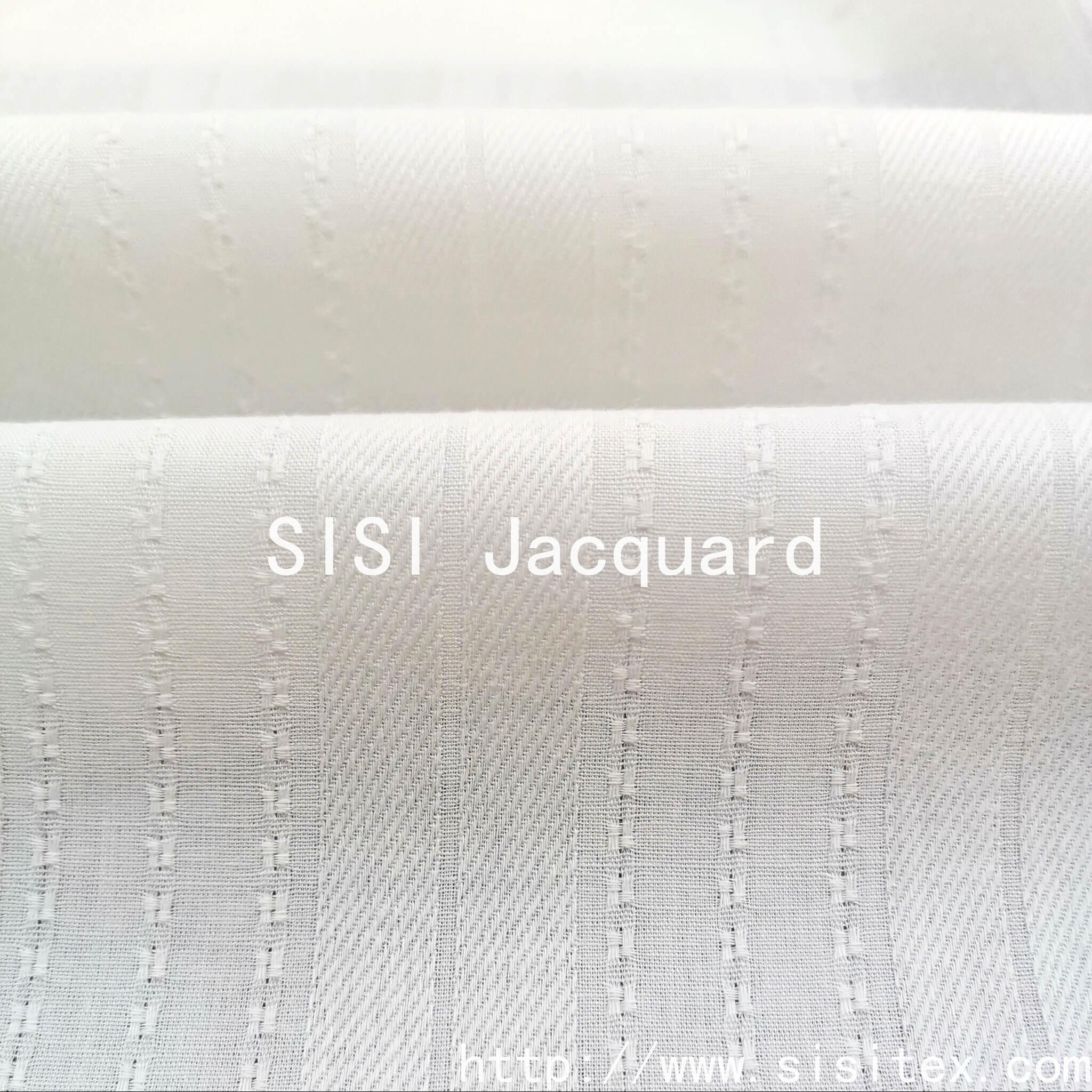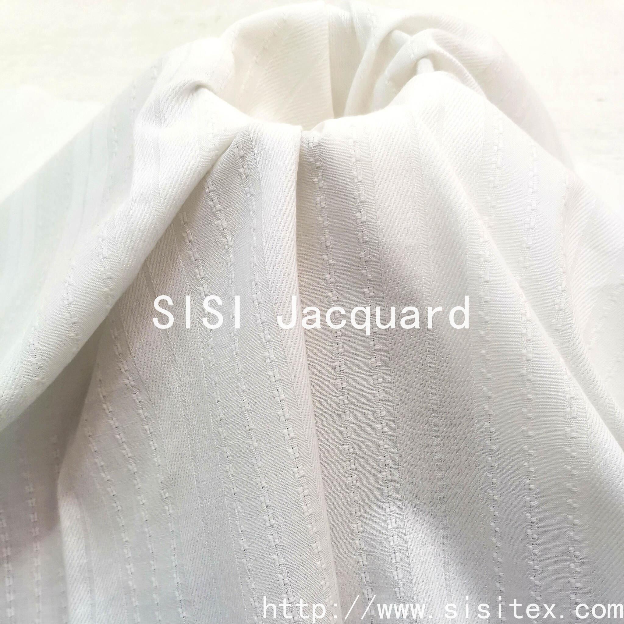 "Shaoxing Si Si Textile Co., Ltd. has meticulously crafted all-cotton vertical stripe jacquard fabric, which seamlessly combines natural comfort with fashionable aesthetics. Using high-quality long-staple cotton, the vertical stripe jacquard design elongates the figure, and the three-dimensional jacquard embellishments add a touch of elegance. Whether it's for making casual shirts, flowing dresses, or home soft furnishings, this fabric can infuse your designs with a simple yet sophisticated style. The eco-friendly material is soft, breathable, and is a choice that prioritizes both quality and style."