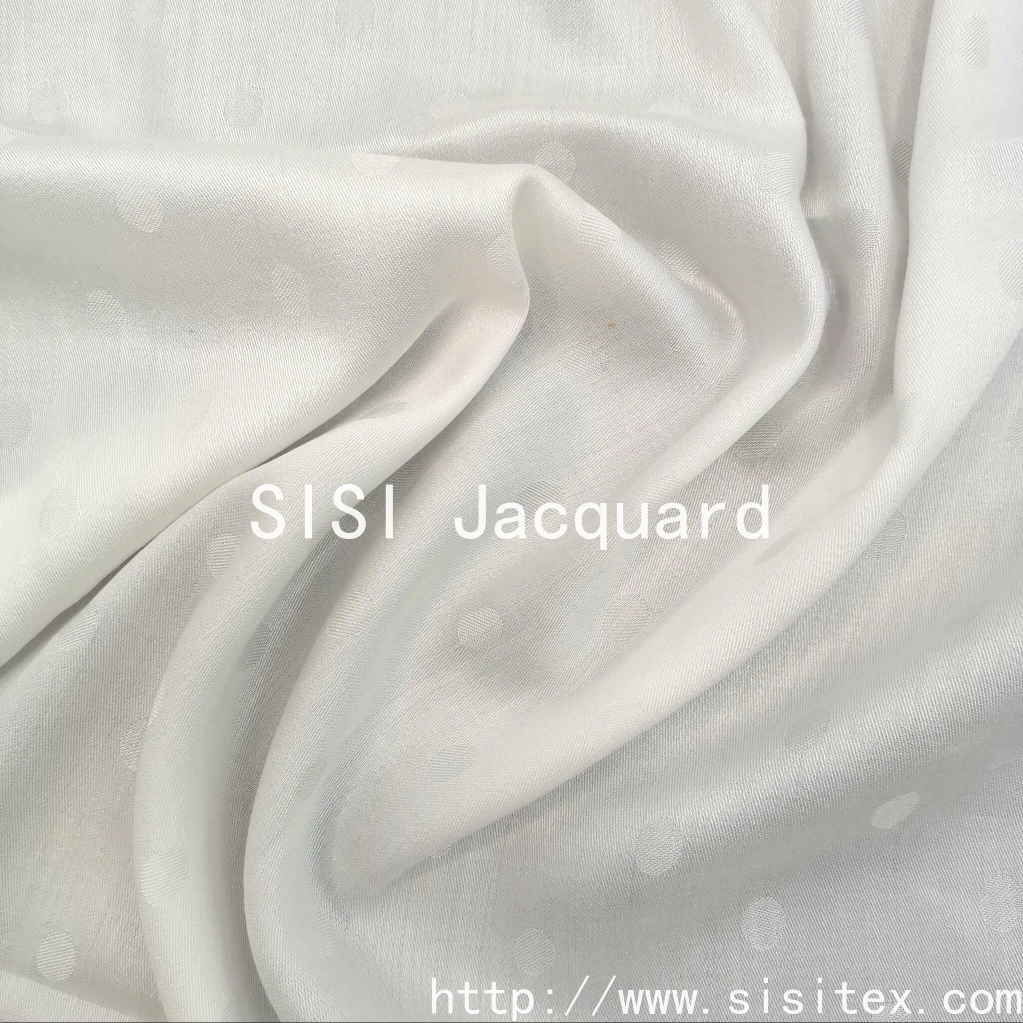 3. **Jacquard texture, exquisite and three-dimensional:** The **jacquard technique** weaves **distinctly textured circular patterns** onto the smooth satin surface, giving the fabric a rich **three-dimensional texture and visual depth**, highlighting the quality through its details.