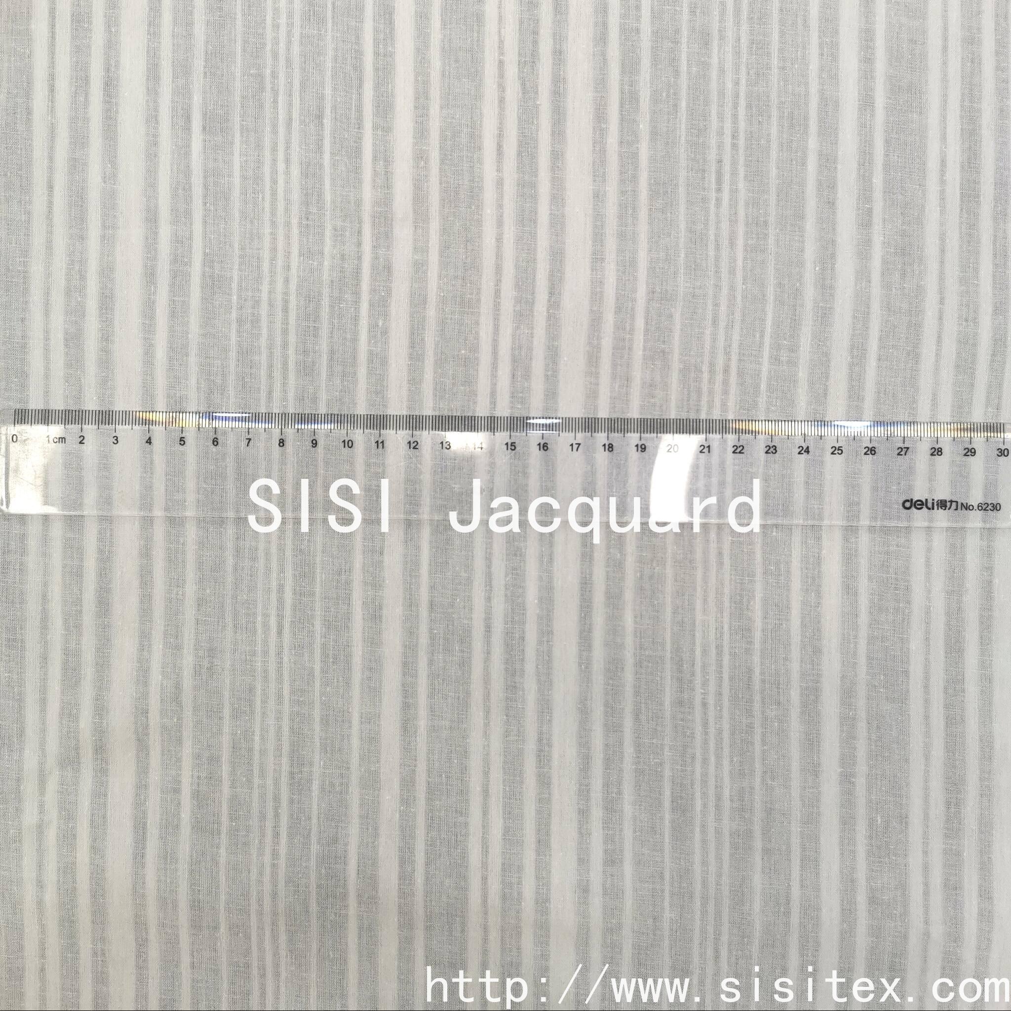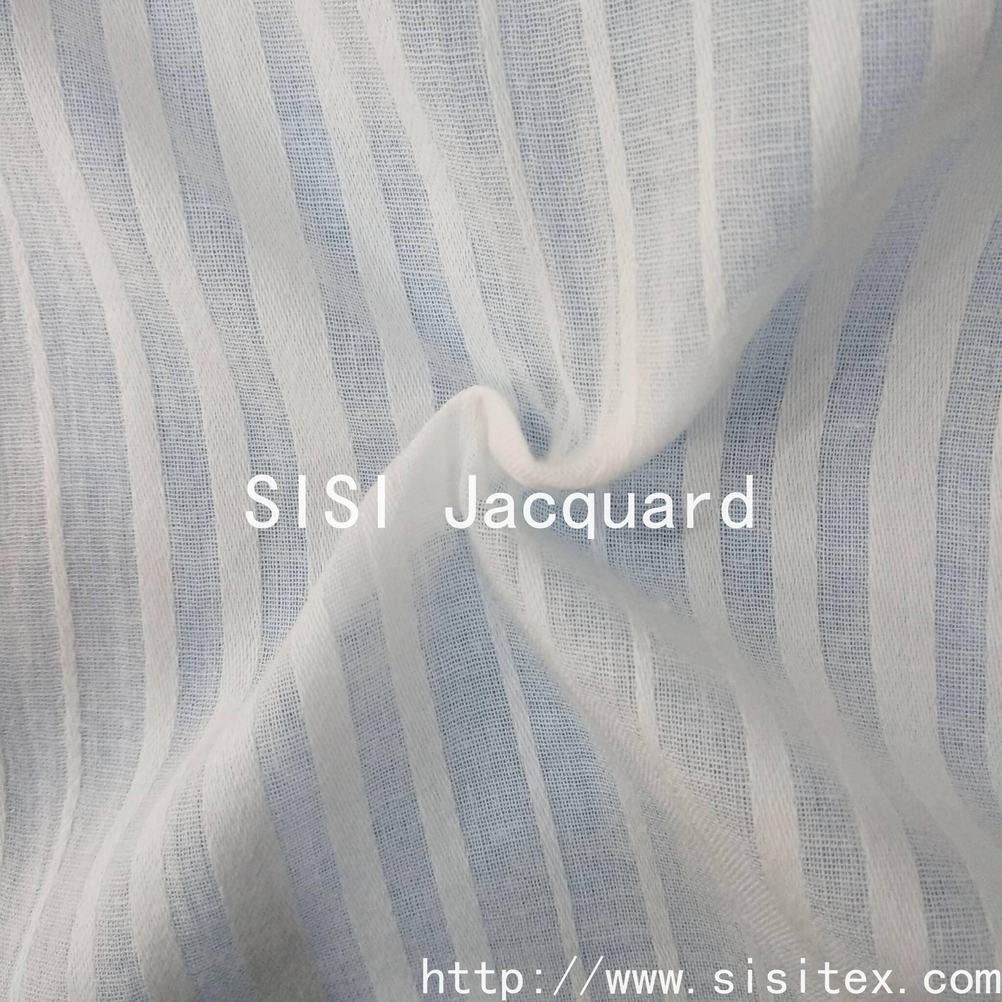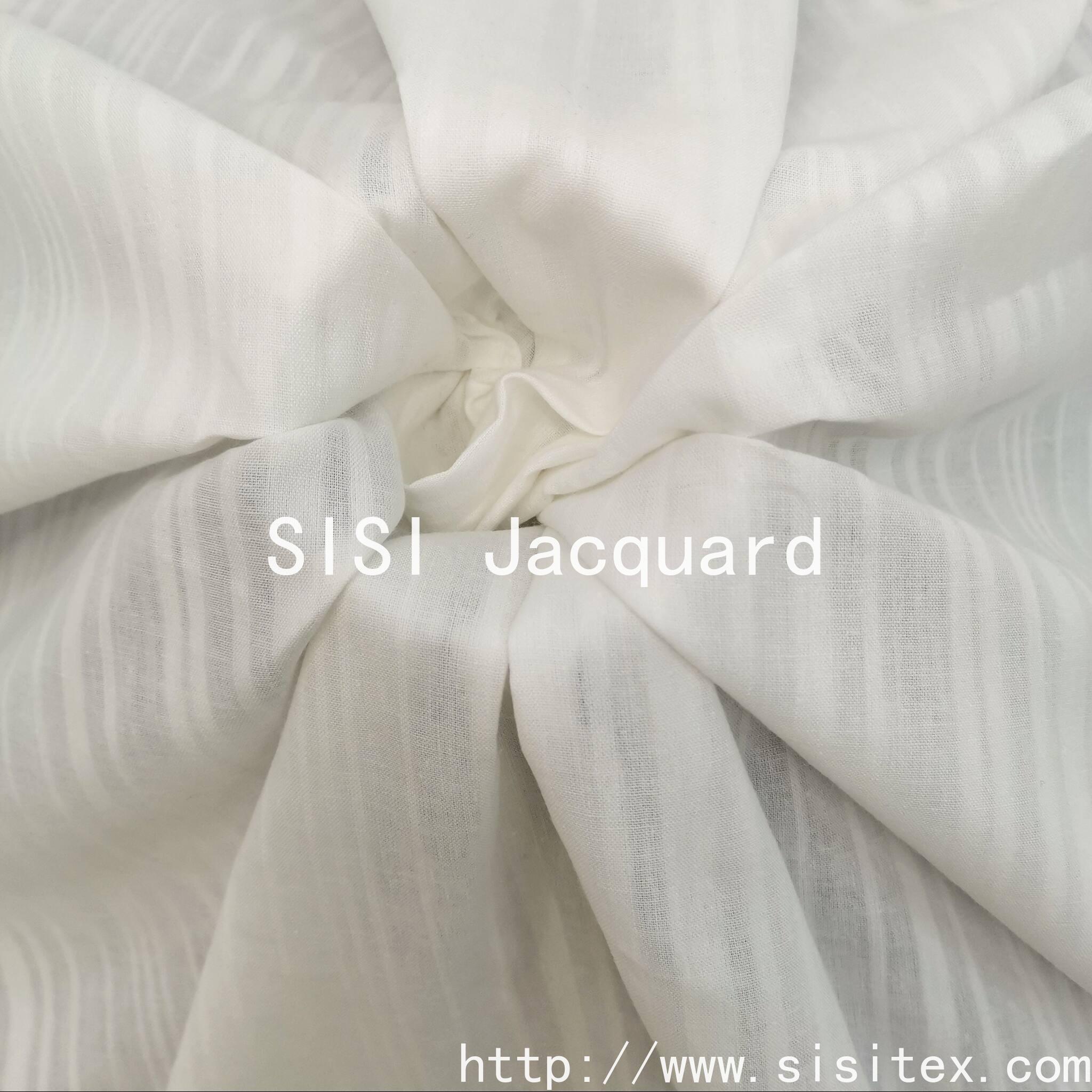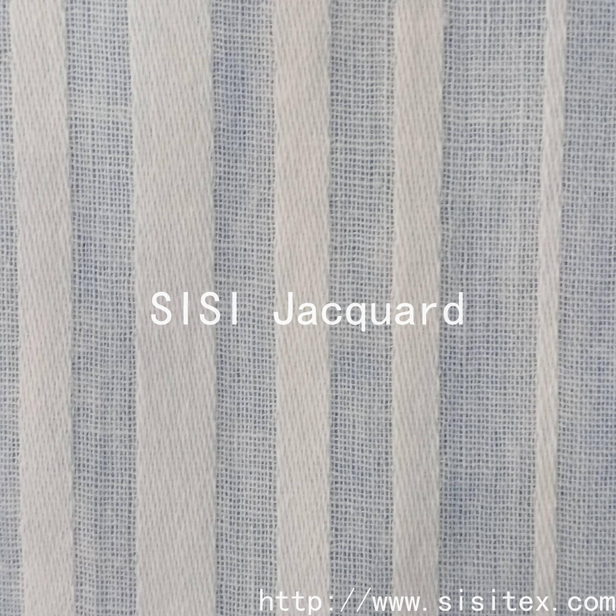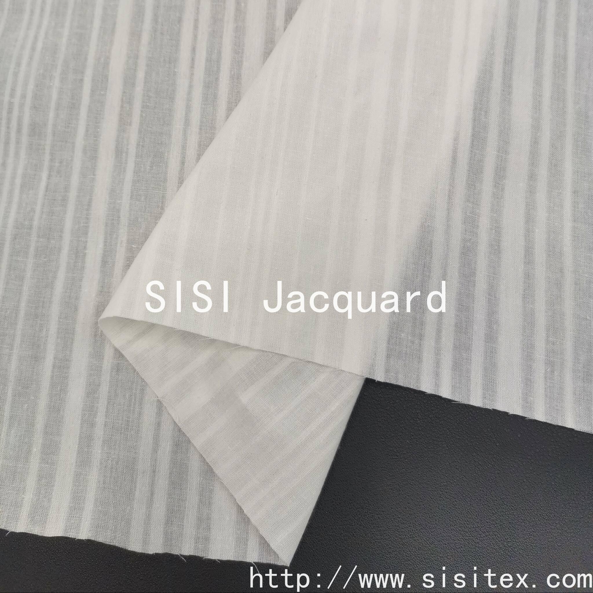 "SISI TEX all-cotton beauty strip jacquard fabric is made by selecting high-quality cotton yarn and using a delicate strip jacquard weaving technique to create a three-dimensional texture. It feels soft yet retains its structure. The natural breathability allows the skin to breathe freely. Whether it is used to make literary-style shirts, relaxed home wear, or simple bedding, it can infuse natural aesthetics into daily life. The jacquard lines are understated and elegant, and the details showcase craftsmanship. It is the perfect choice for those who value quality and practicality."