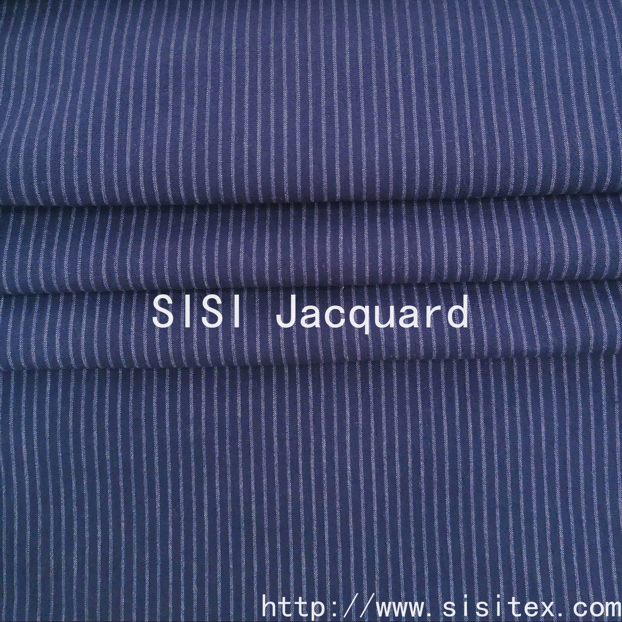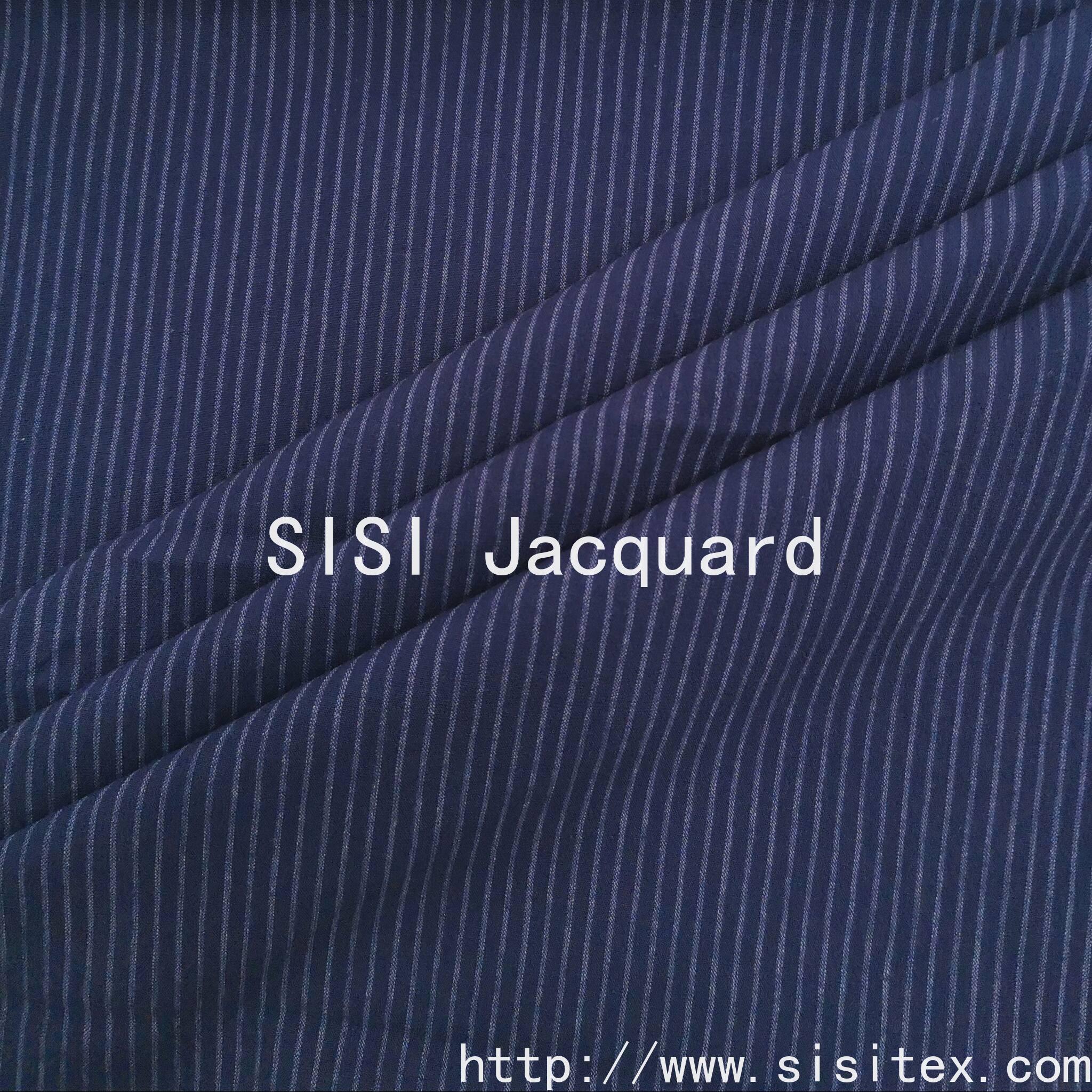 This cotton-polyester-spandex stretch jacquard fabric is scientifically blended with 80% cotton, 18% polyester and 2% spandex, offering a balance of comfort, breathability, durability, wrinkle resistance and stretch. The fabric is produced using a jacquard weaving technique, featuring a deep blue color tone combined with delicate stripe patterns. This combination of retro texture and modern aesthetics creates a perfect harmony. It is suitable for both casual and light business wear, and can also be used for home decor to enhance the overall quality. The cotton provides comfort and breathability, the polyester offers durability and wrinkle resistance, and the spandex provides stretch. These three advantages make the fabric excel in terms of comfort, durability and shaping. It is an excellent choice for creating items in retro, minimalist or light business styles.