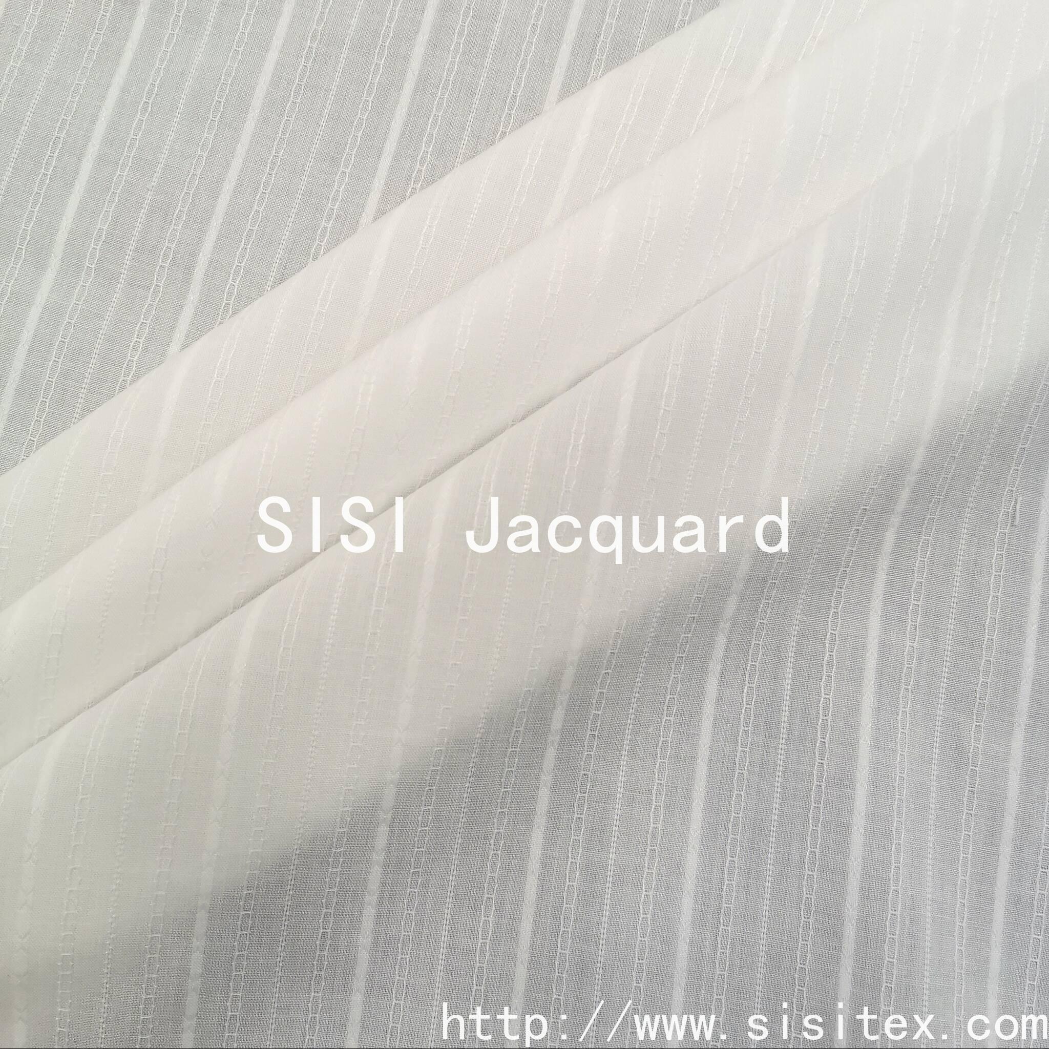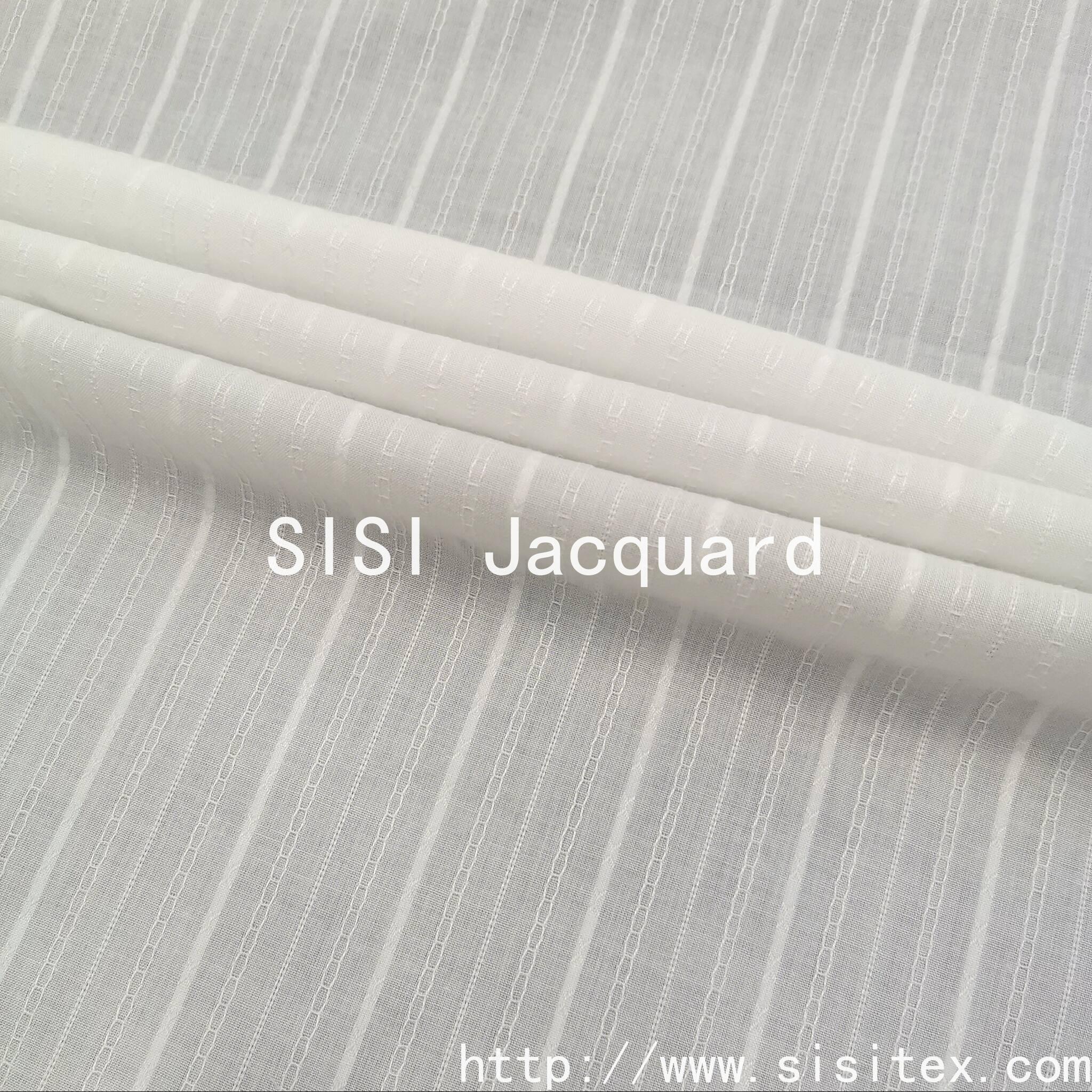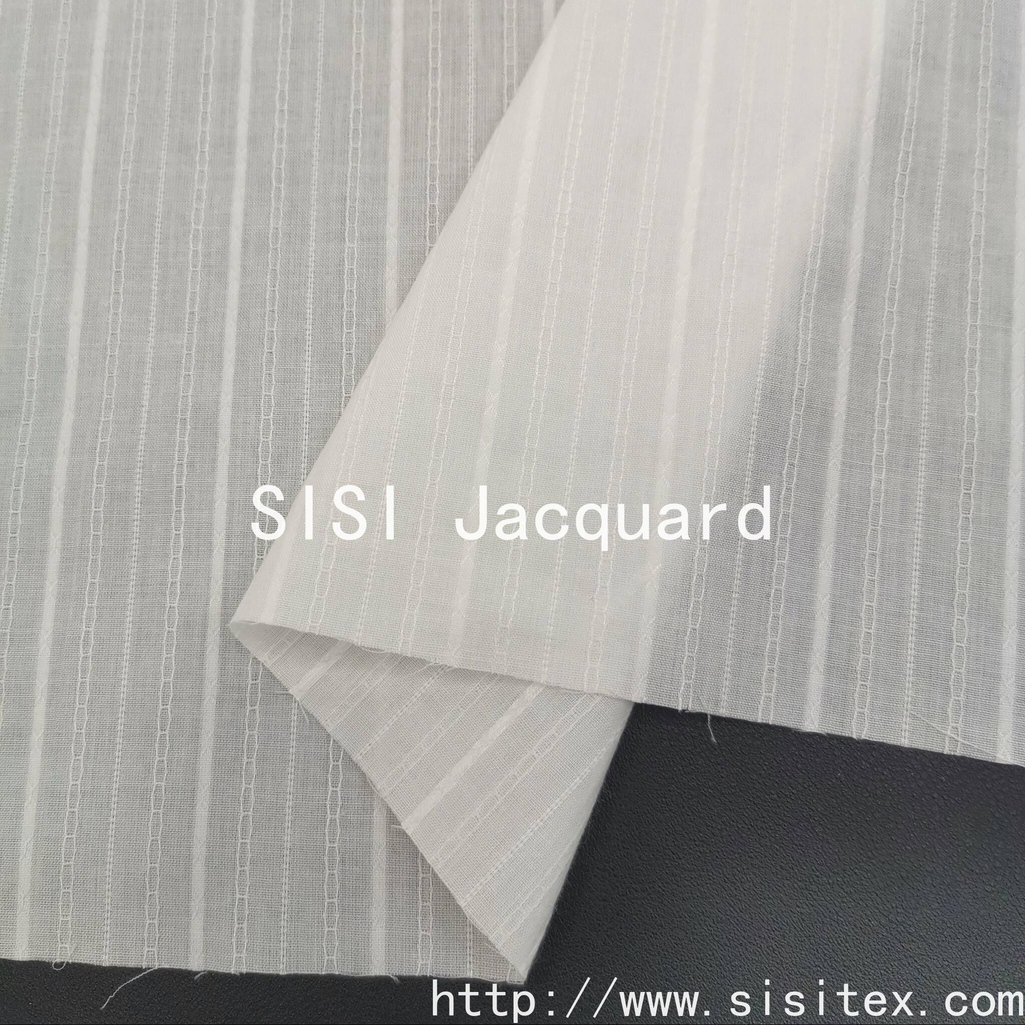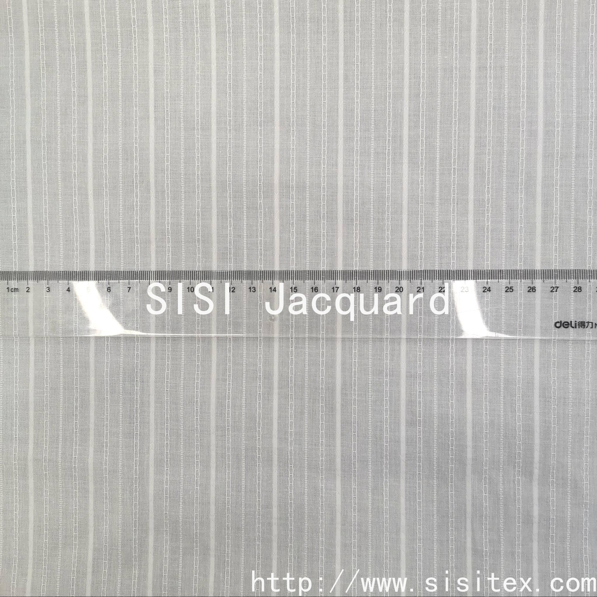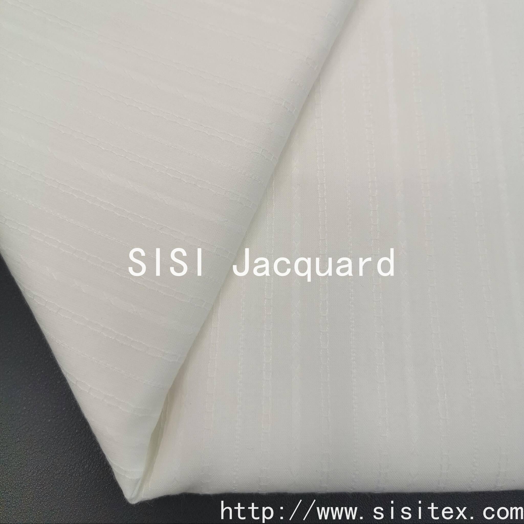 This is a woven CVC striped jacquard fabric, made by blending 65% cotton and 35% polyester. It combines the softness and breathability of cotton with the anti-wrinkle and wear-resistance of polyester. The fabric is produced through weaving technology, presenting a crisp and stylish appearance; the jacquard technique creates a delicate and three-dimensional texture, combined with the stripe elements, which not only retains a retro feel but also suits various modern styles such as minimalist and luxury.