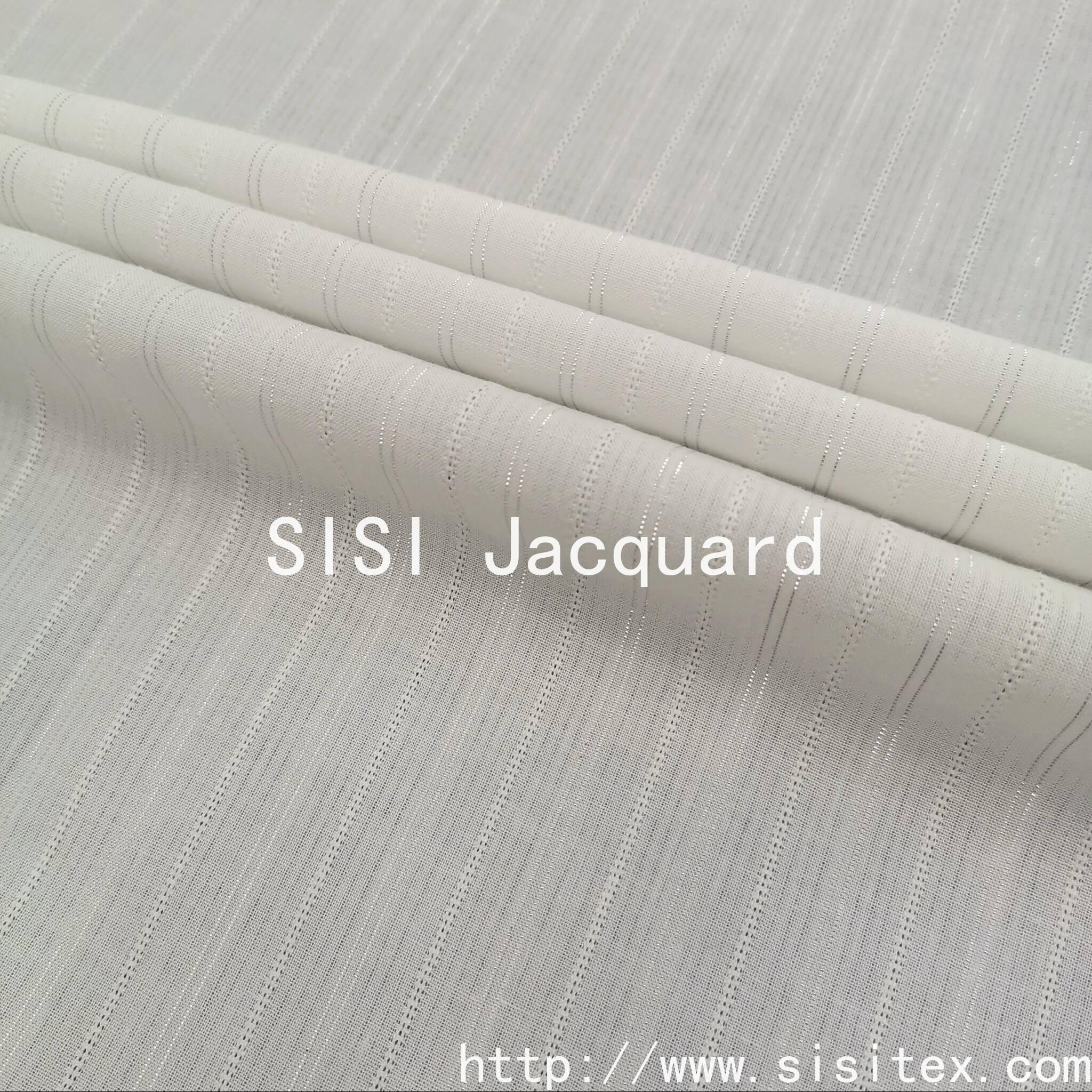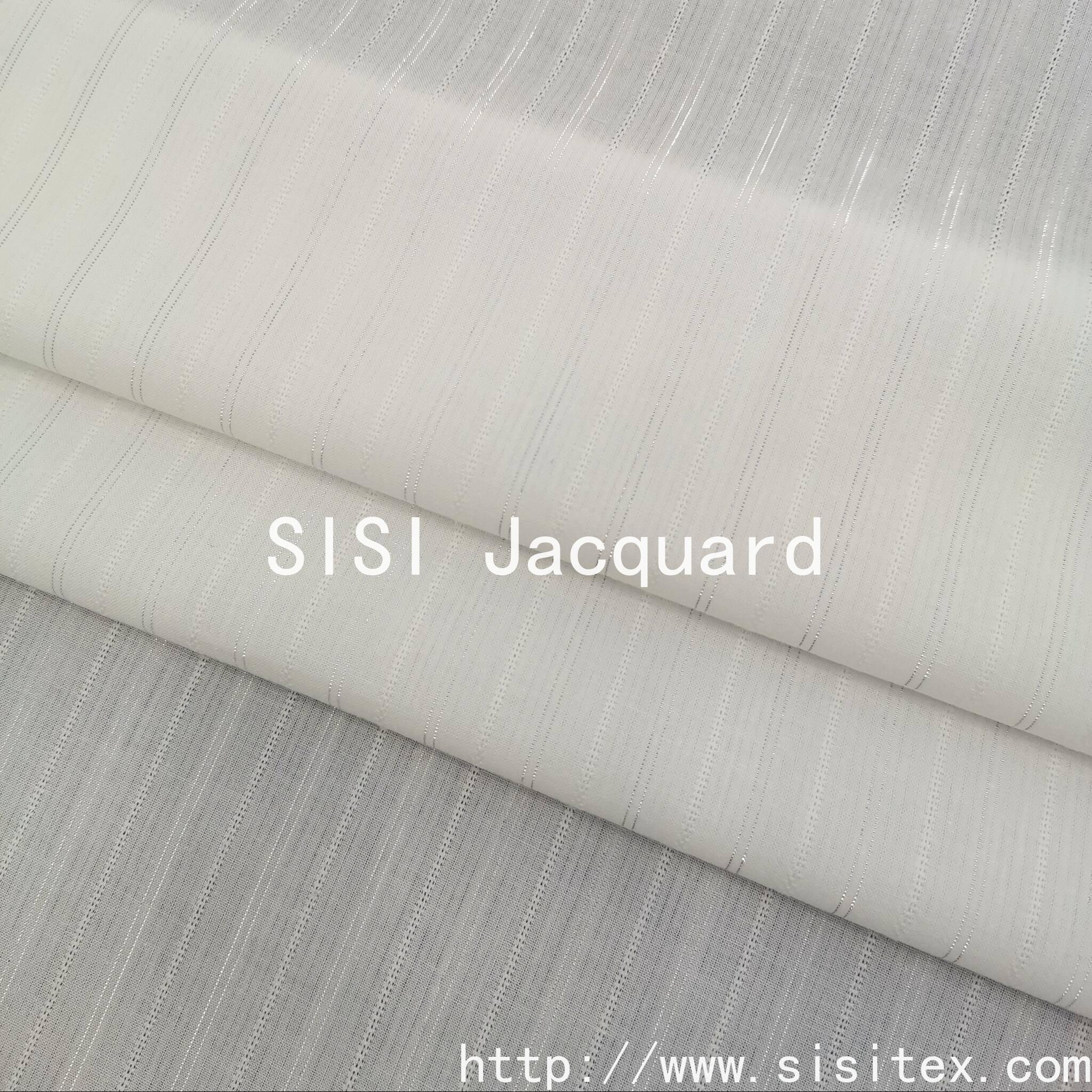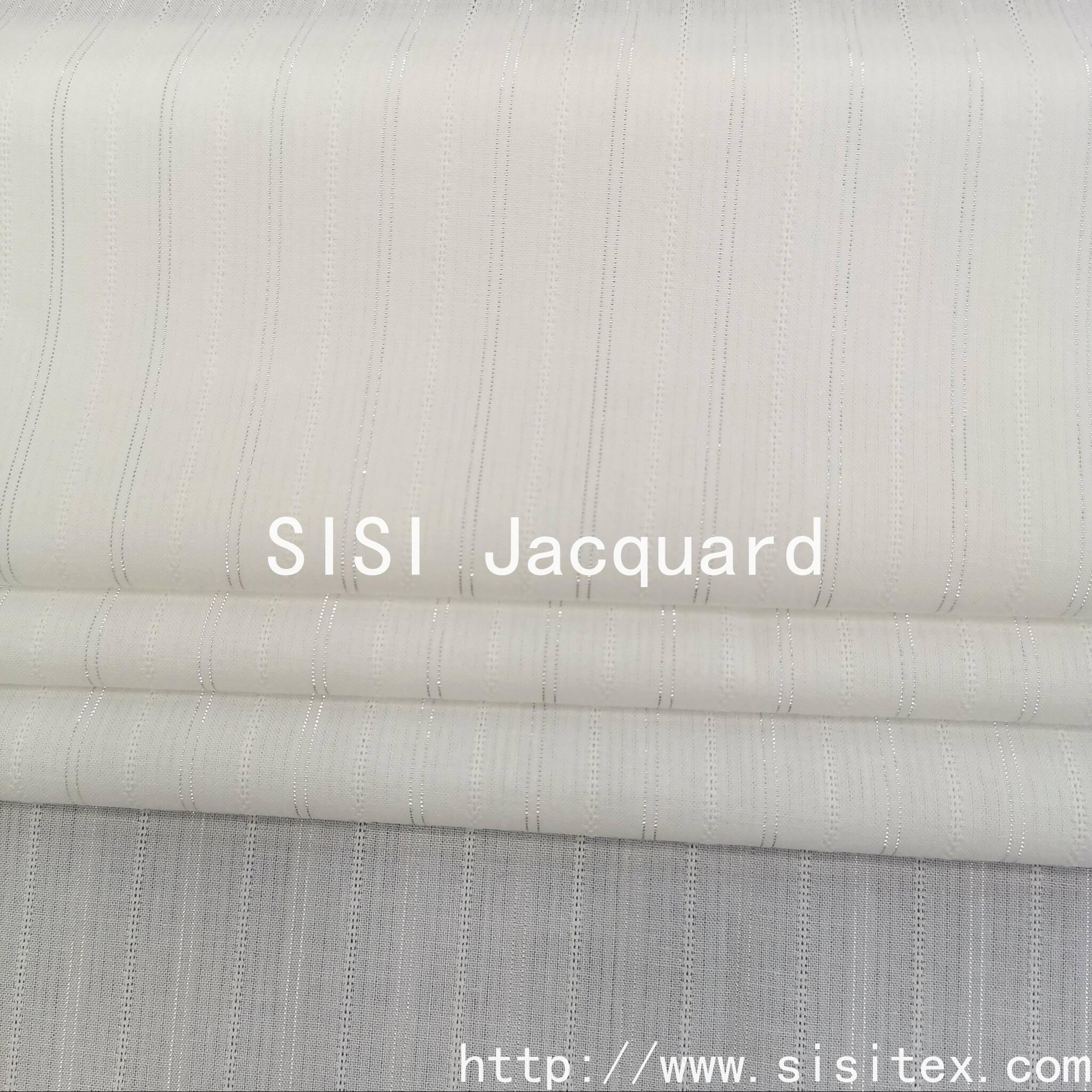 This all-cotton silver-striped jacquard fabric is made with 99% natural cotton as the base, complemented by 1% silver thread (LUREX). It ingeniously combines "skin-friendly comfort" with "technological texture". The vertical stripe jacquard technique makes the fabric lines neat and has a three-dimensional layering effect. It presents a simple and elegant appearance while hiding exquisite details. It is suitable for daily wear such as shirts, dresses, and home wear, and can also be used for bedding, scarves, and other home accessories. The combination of the skin-friendly breathability of natural cotton and the lustrous texture of the silver thread makes the basic fabric more "exquisite". It not only meets the comfort requirements of daily wear but also adds fashionable highlights to the outfit through the vertical stripe jacquard technique and the silver thread embellishment. It is the preferred fabric for those who pursue a sense of quality and compatibility with diverse styles.