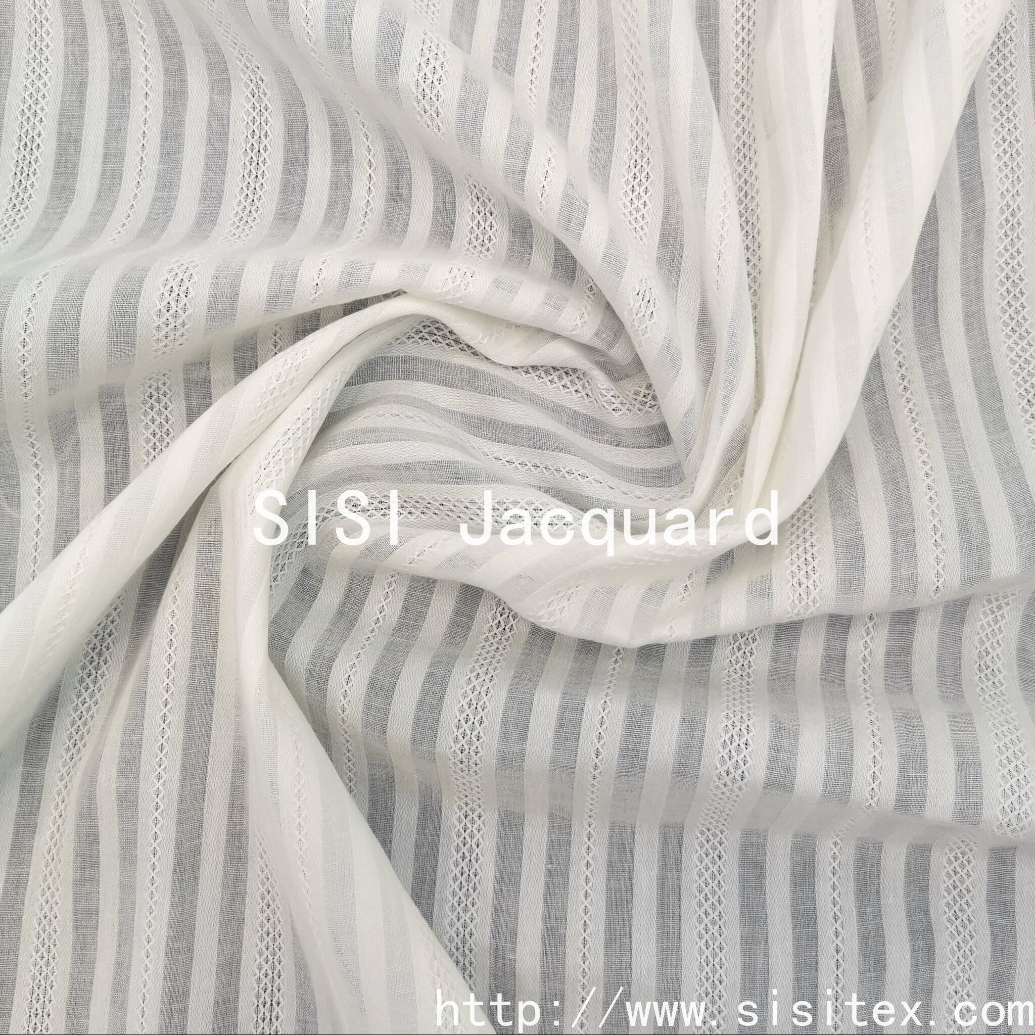 This 100% cotton muslin striped jacquard fabric is based on 100% natural cotton, integrating jacquard weaving technology with classic striped elements to create a dual experience of "skin-friendly comfort + artistic texture". 100% cotton is breathable and comfortable, suitable for all seasons, and does not burden the skin; the jacquard weaving technique gives the fabric a delicate and three-dimensional texture, visually exquisite and with rich texture, enhancing the design's layering effect; the classic striped elements are versatile and compatible with jacquard details, simplistically integrating artistic elements, suitable for various styles such as retro, minimalist, and casual; this fabric can be applied to clothing (t-shirts, shirts, dresses, etc.), home decor (tablecloths, curtains, bedding, etc.), and accessories (bags, scarves, etc.), meeting the needs of daily wear and space decoration. Whether it is for daily casual wear seeking comfort or creative design emphasizing artistic elements, this fabric can inject natural texture and exquisite details into the work, making it an excellent choice for the development of spring and summer new products.