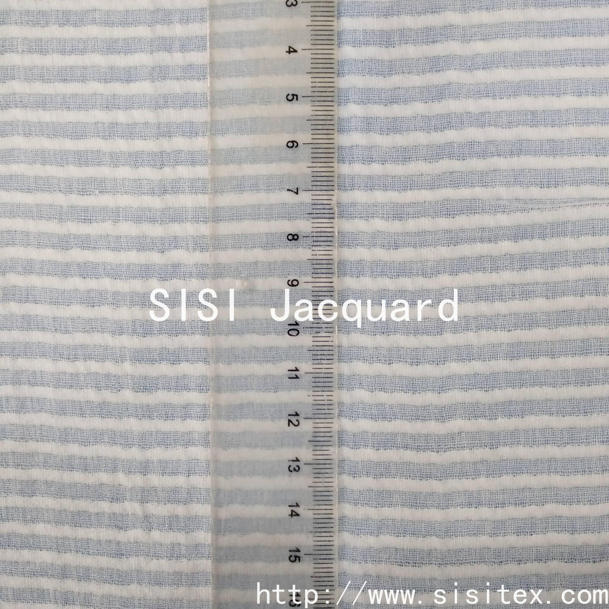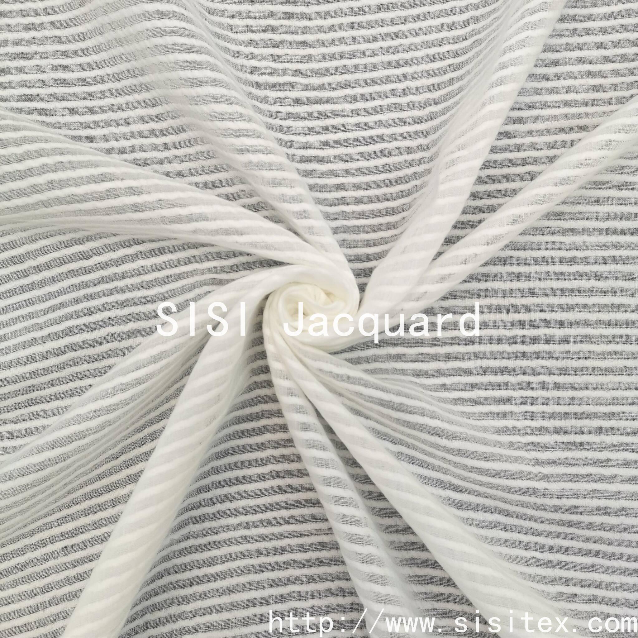 This is a gauze cross-stripe jacquard fabric, made of 100% cotton. It combines the natural comfort and breathability of cotton with excellent sweat absorption properties. The jacquard cross-stripe weaving technique gives the fabric a unique texture. The black and white stripes are classic and versatile, suitable for minimalist, retro, and casual styles. Whether used to make summer clothing (such as shirts, dresses, casual pants), or to create home items (such as bed sheets, pillowcases, tablecloths), it can meet the diverse needs of daily wear and home decoration with exquisite craftsmanship and comfortable texture. It is the preferred fabric for those who pursue quality and fashion.