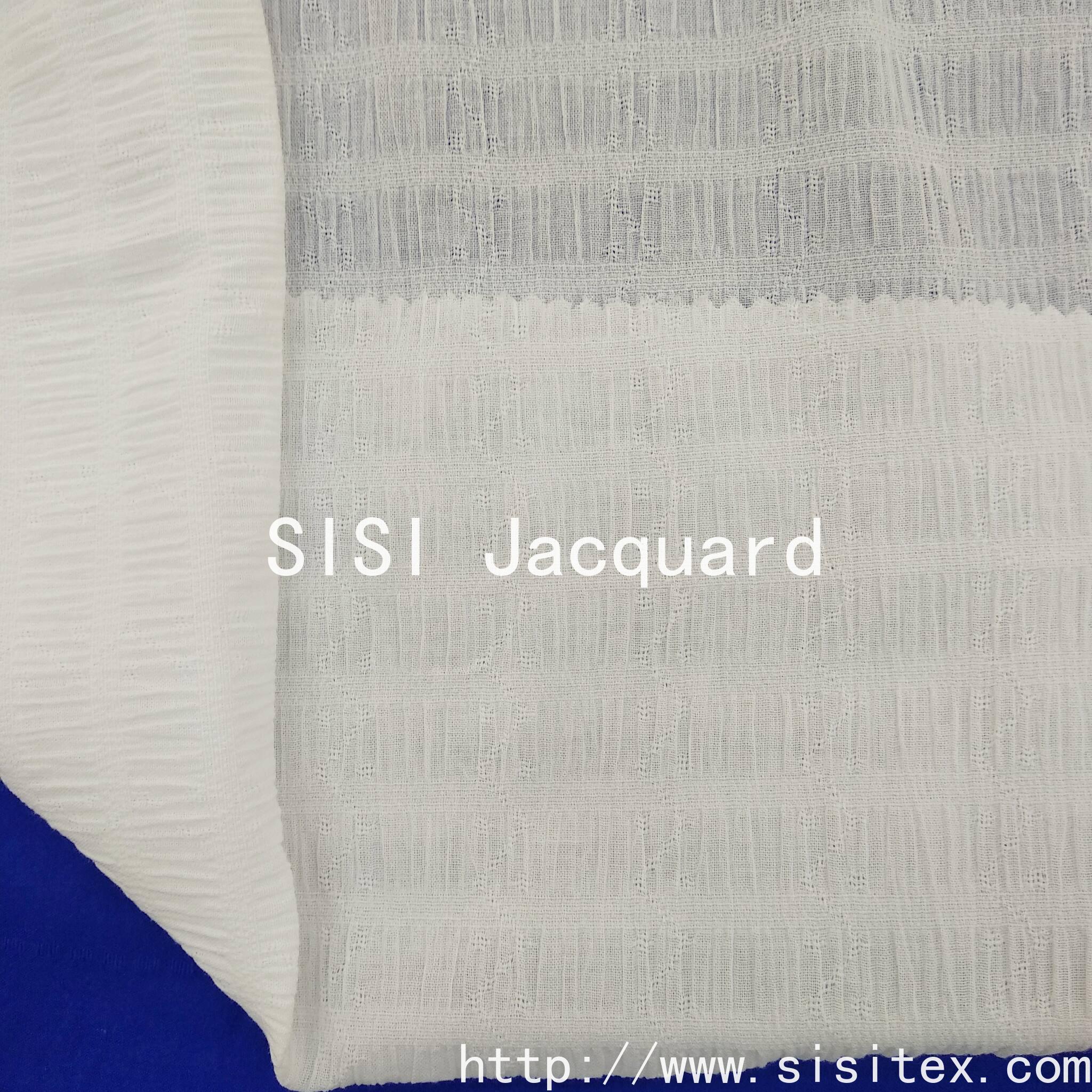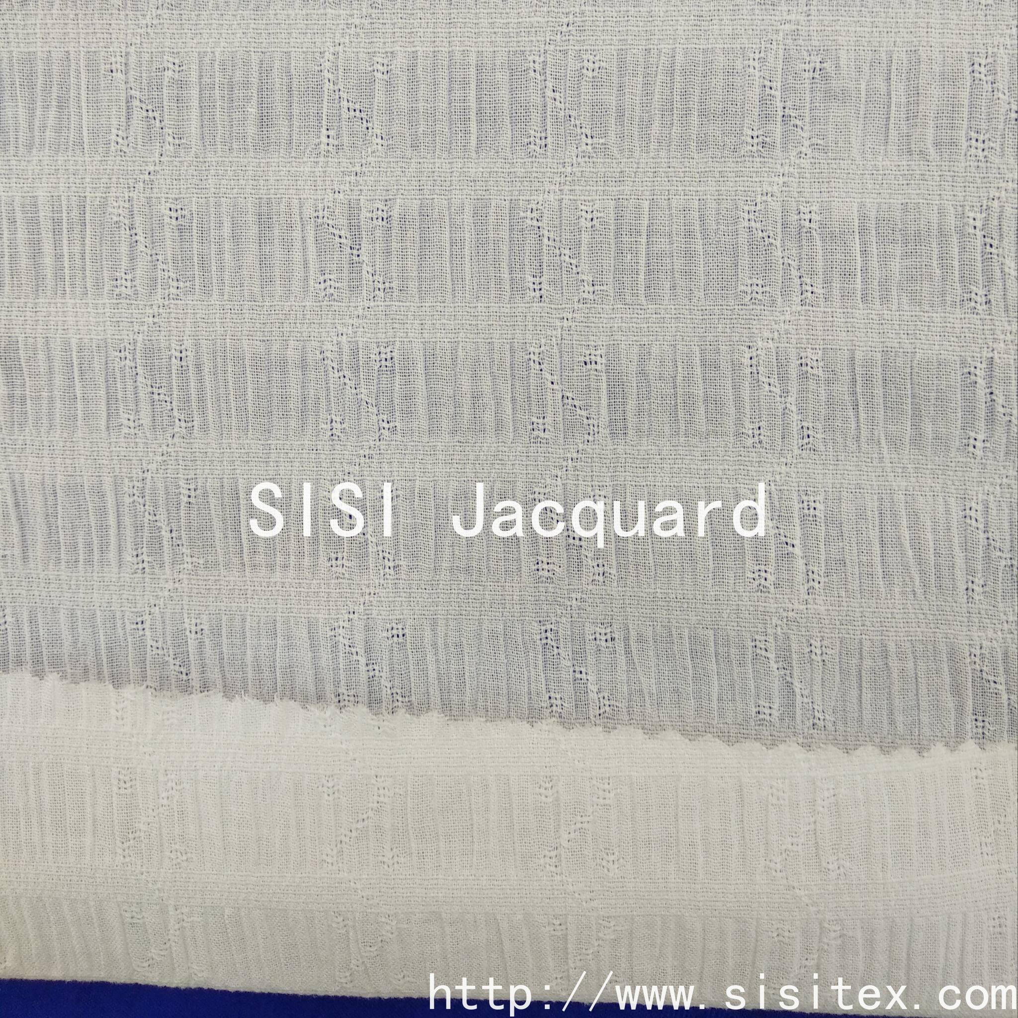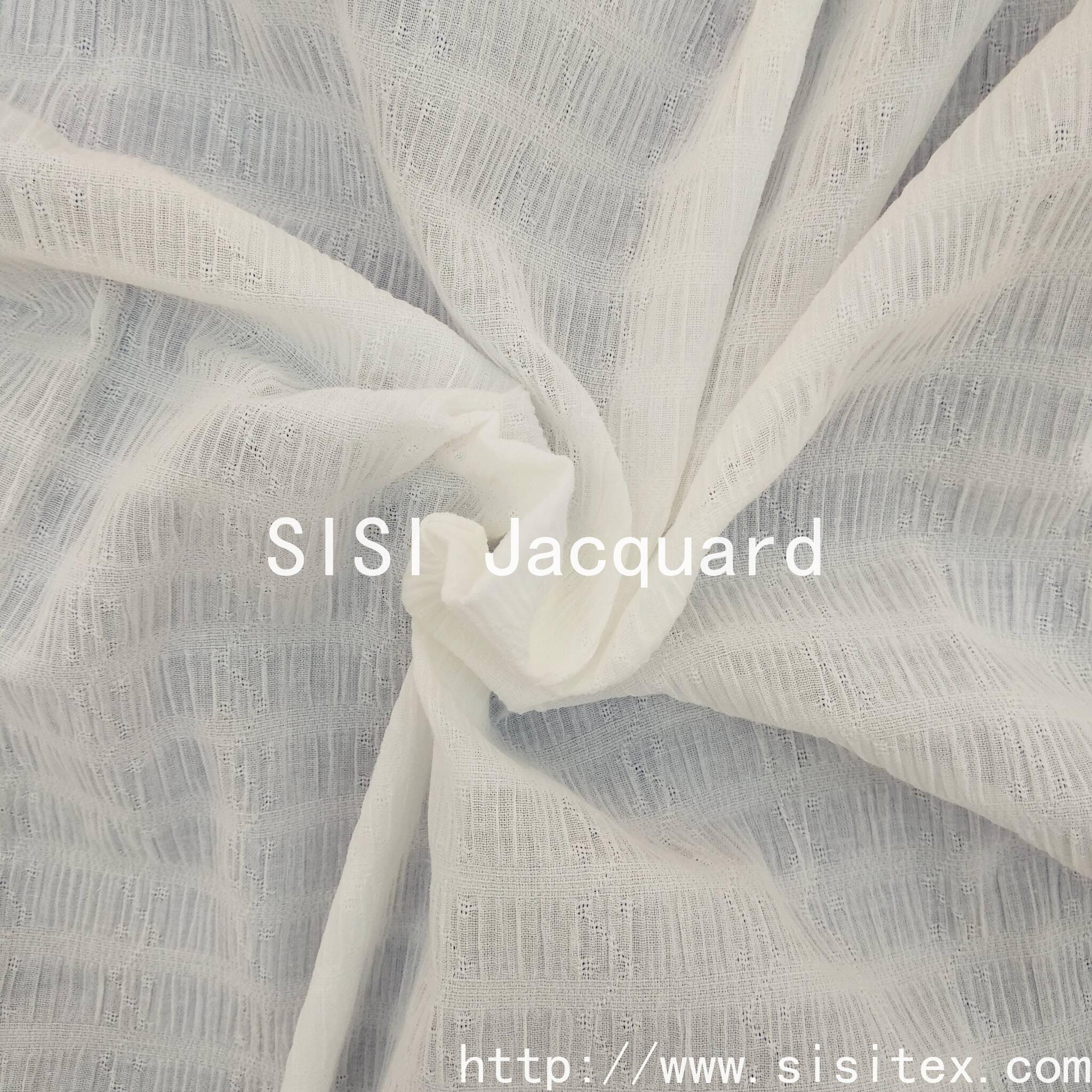 This fabric is a cotton jacquard fabric (SS18641), consisting of 99% cotton and 1% spandex. It is woven with jacquard technique, where the warp and weft threads are interwoven to create a fine texture. The cotton is soft and breathable, while the spandex gives the fabric elasticity, making it more comfortable when fitting to the body. It is widely used in casual clothing (T-shirts, shirts, dresses, etc.), household items (pillowcases, bedding), and light industrial products (scarves, inner linings of pouches) to create a simple, natural, and comfortable breathable dressing experience.