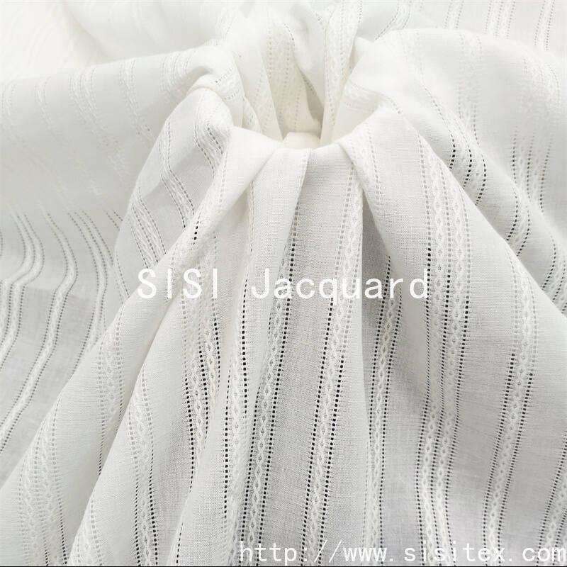 This pure cotton yarn linen strip fabric is woven from high-quality cotton yarn, with a soft and skin-friendly texture and excellent breathability. The unique twist texture combined with jacquard craftsmanship presents a delicate three-dimensional effect and a fine sense of layering. It not only retains the natural and simple style but also adds fashionable design elements. The fabric has a good drape and is suitable for making all kinds of casual and light retro style clothing.