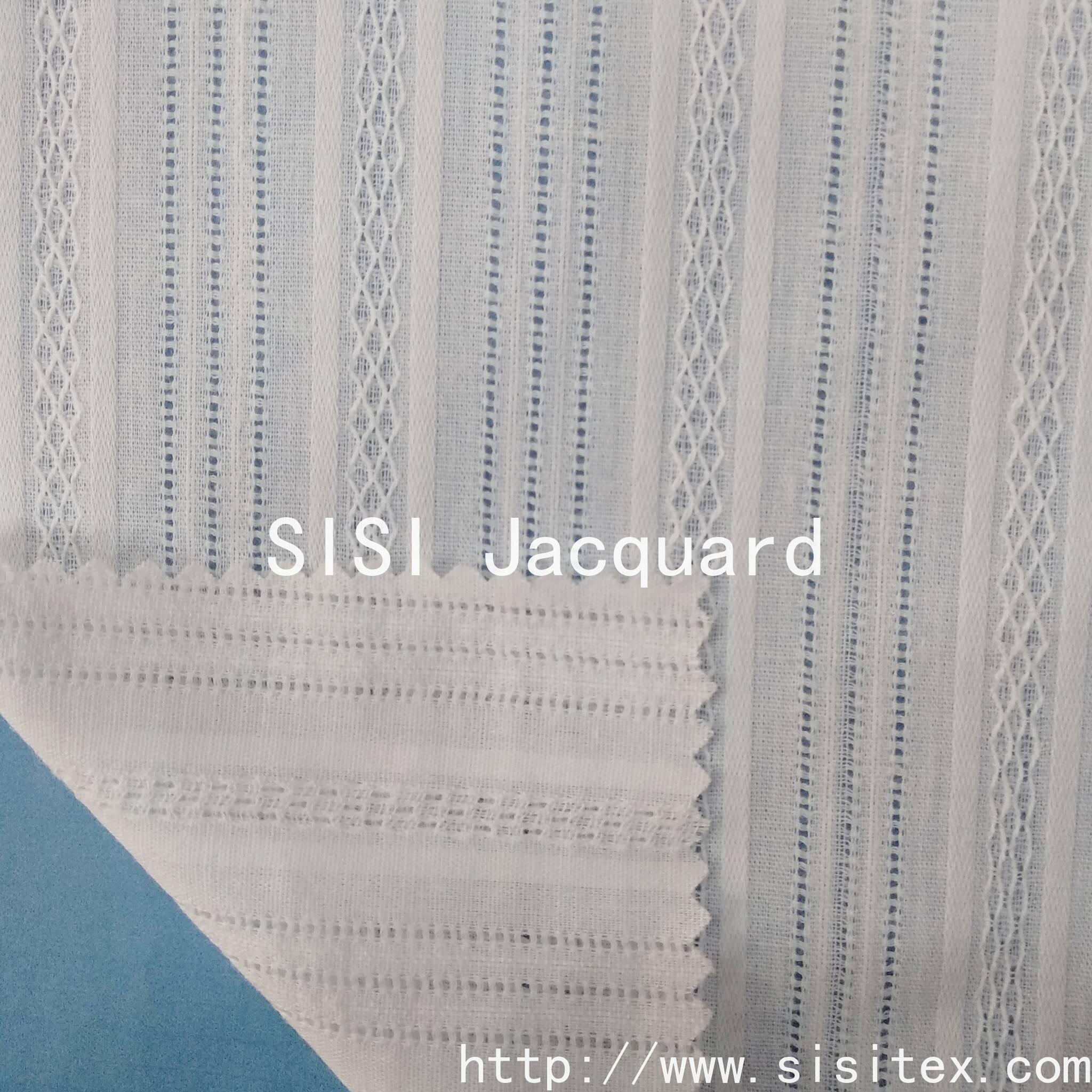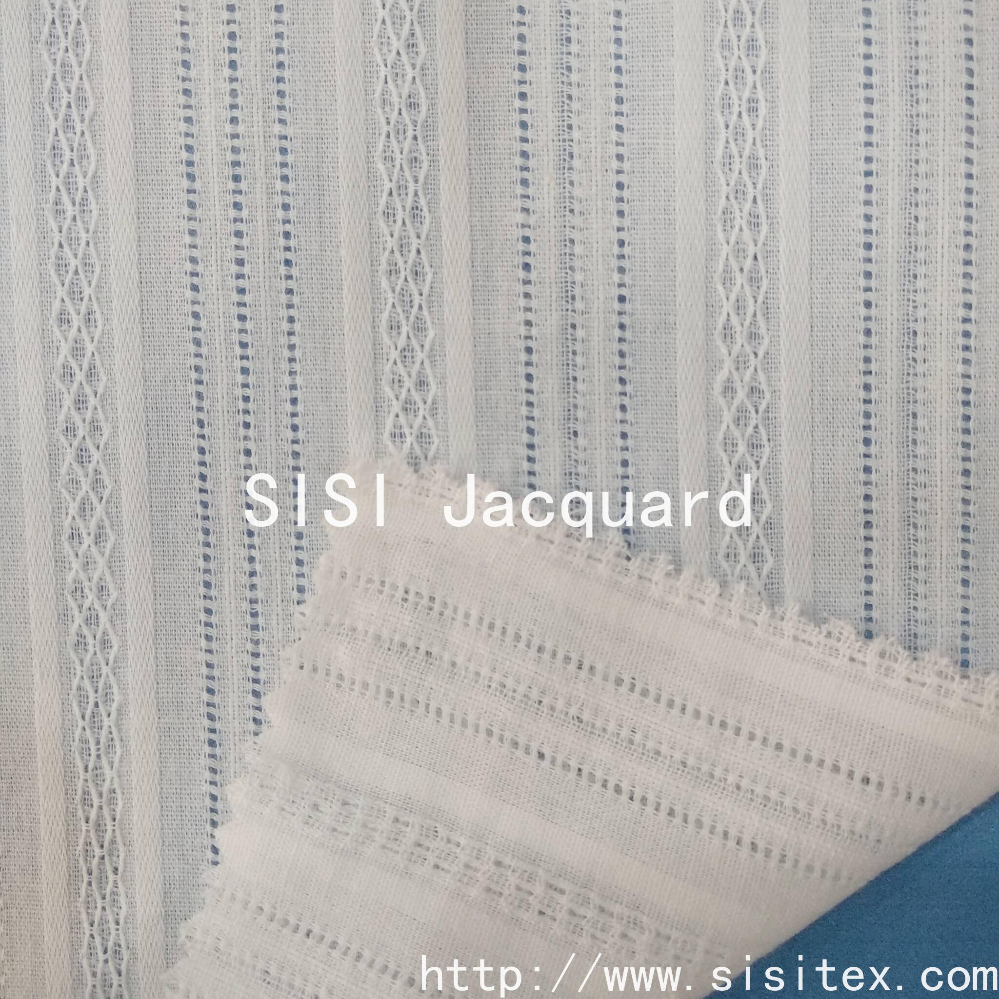 This is a woven cotton muslin fabric with vertical striped jacquard pattern. It is made of 100% natural cotton and combines the comfortable properties of breathability and skin-friendliness with the exquisite details of jacquard weaving. The vertical striped jacquard pattern is detailed and three-dimensional, looking simple and elegant from a distance and rich in texture when viewed closely, adding depth to the design. The fabric is produced by weaving technology, with a stable structure that is not prone to deformation, making it suitable for creating summer women's wear (shirts, dresses, skirts), children's wear (shirts, dresses, home wear), and DIY handicrafts (aprons, cushions, etc.). The natural cotton material is skin-friendly and non-irritating, and the jacquard weaving gives the fabric a unique texture. It is the preferred fabric for those who pursue a "comfortable + refined" style.