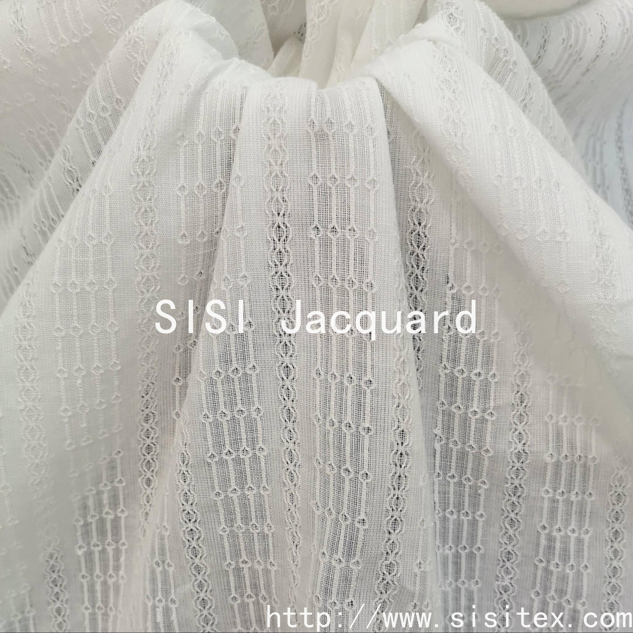 This is a 100% cotton voile jacquard fabric. It is made with advanced jacquard technology, giving the fabric a smooth and exquisite texture pattern on the surface. Visually, it is full of design elements without overpowering the main features. The natural cotton material is soft and breathable, providing a comfortable and unrestricted feeling when worn close to the body. It is suitable for both home use and daily wear, offering a comfortable and relaxed experience.