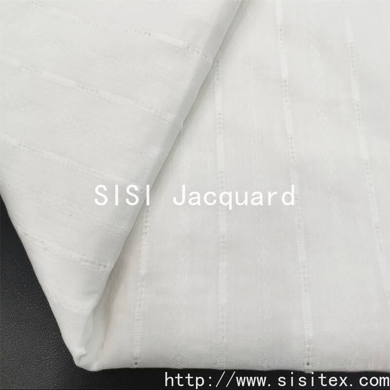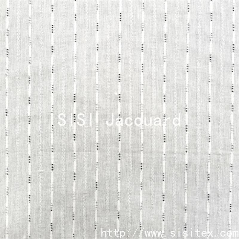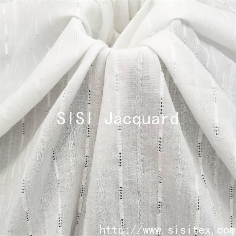 This all-cotton gauze hollowed-out jacquard fabric is made from 100% high-quality long-staple cotton. By combining traditional gauze weaving techniques with modern jacquard technology, it creates unique hollowed-out stripes and exquisite jacquard patterns. The fabric is light and transparent in texture. The surface of the fabric presents regular hollowed-out patterns and three-dimensional jacquard details, combining excellent breathability and a soft drape, perfectly interpreting the high-end texture of "transparent but not revealing".