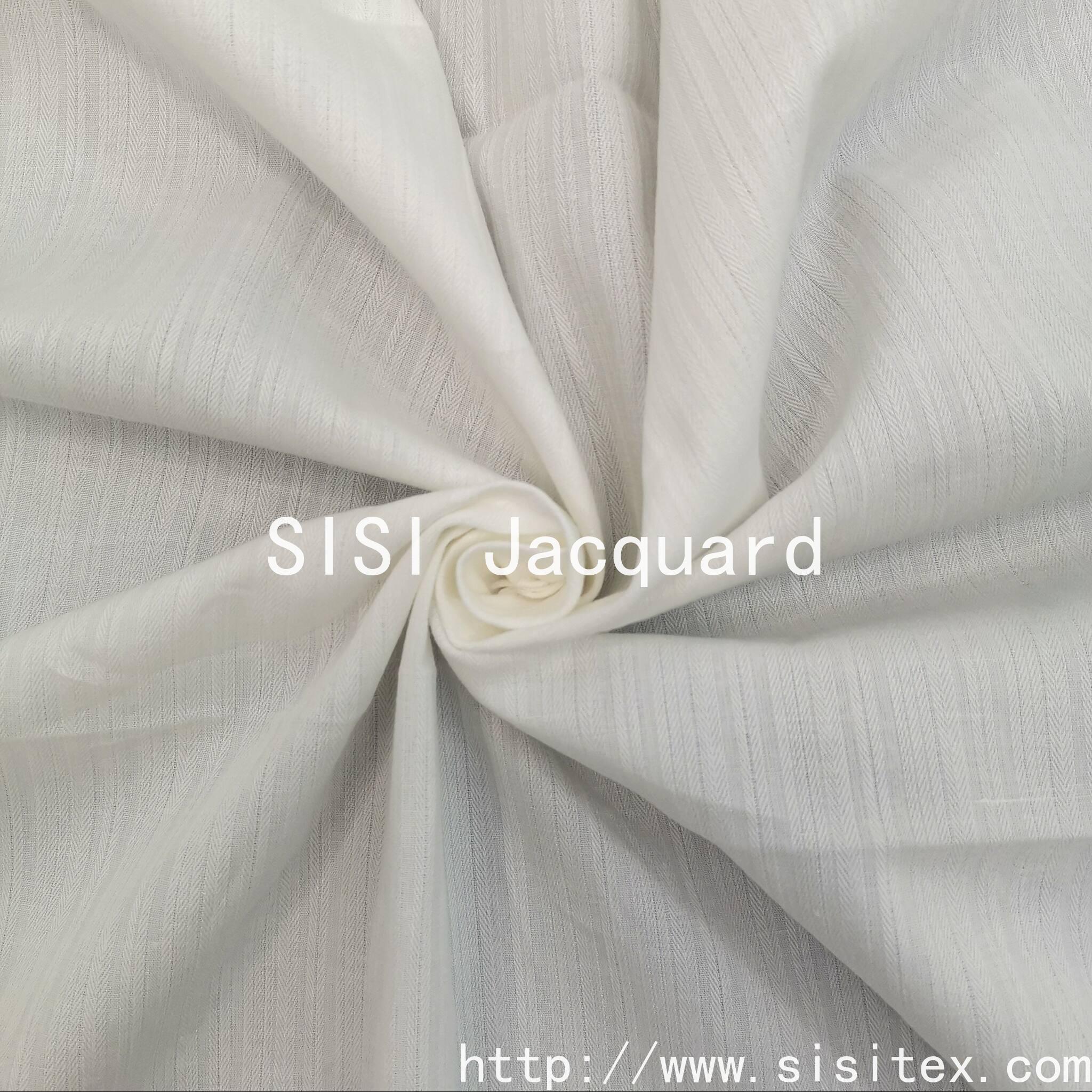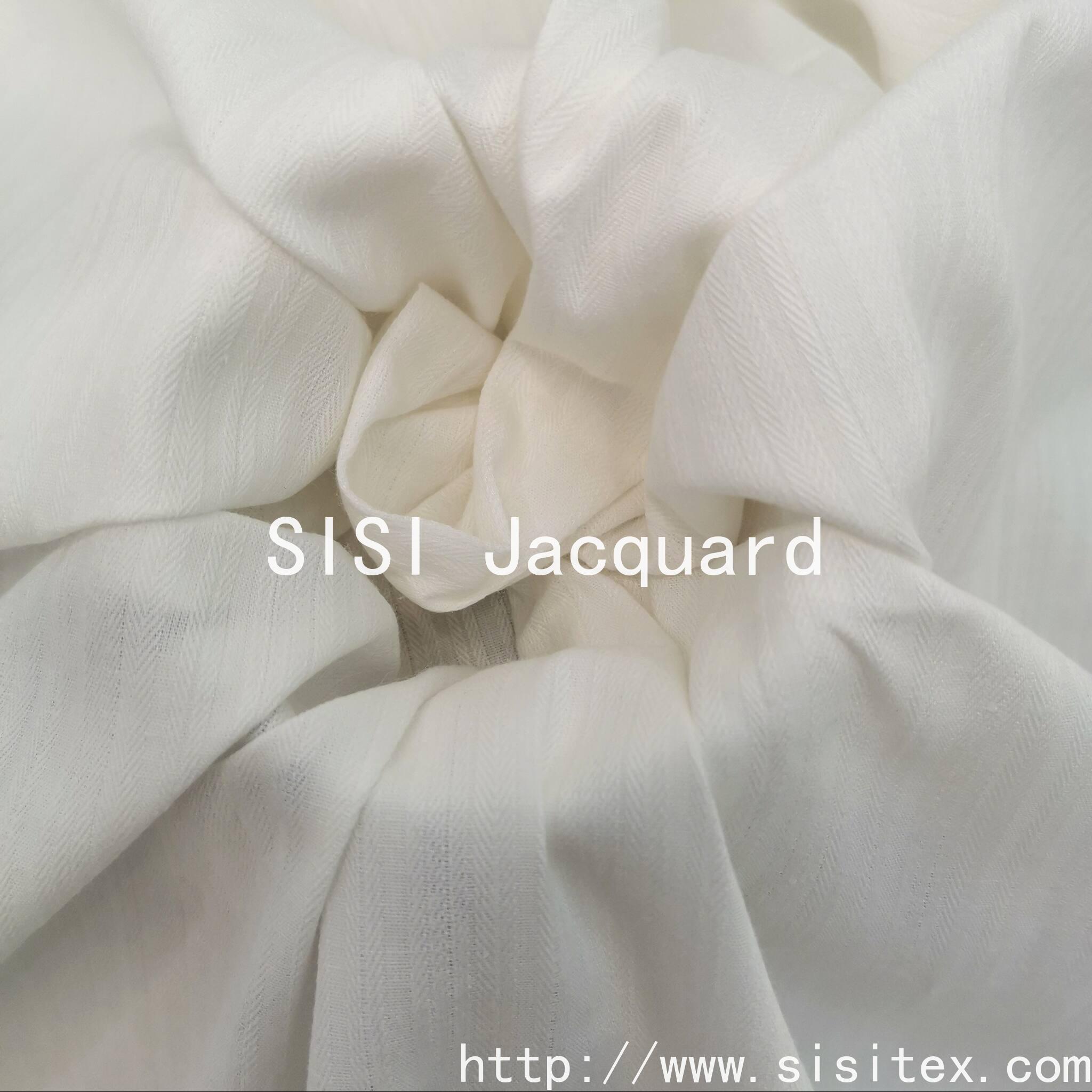 This is a 100% cotton jacquard fabric, featuring a natural skin-friendly and breathable property. The jacquard technique creates unique textures through the interweaving of warp and weft yarns, allowing the fabric to maintain its soft cotton feel while adding artistic details.