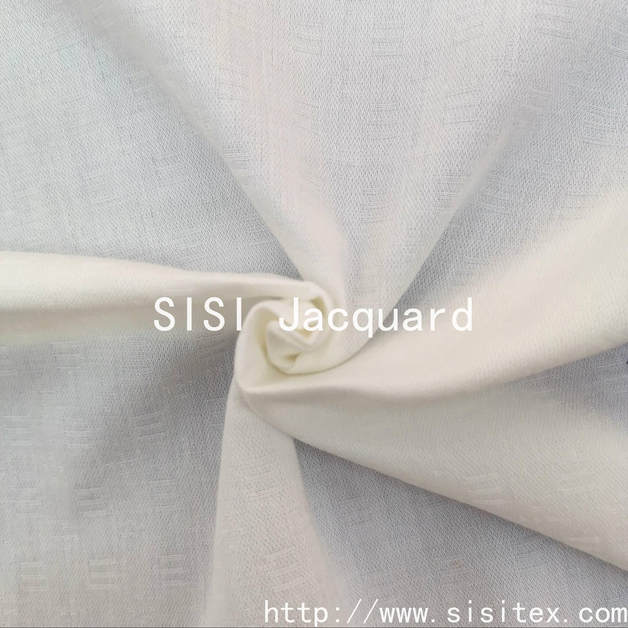 Woven cotton jacquard fabric, made by weaving 100% natural cotton yarn, featuring a jacquard technique to create a three-dimensional checkered pattern.