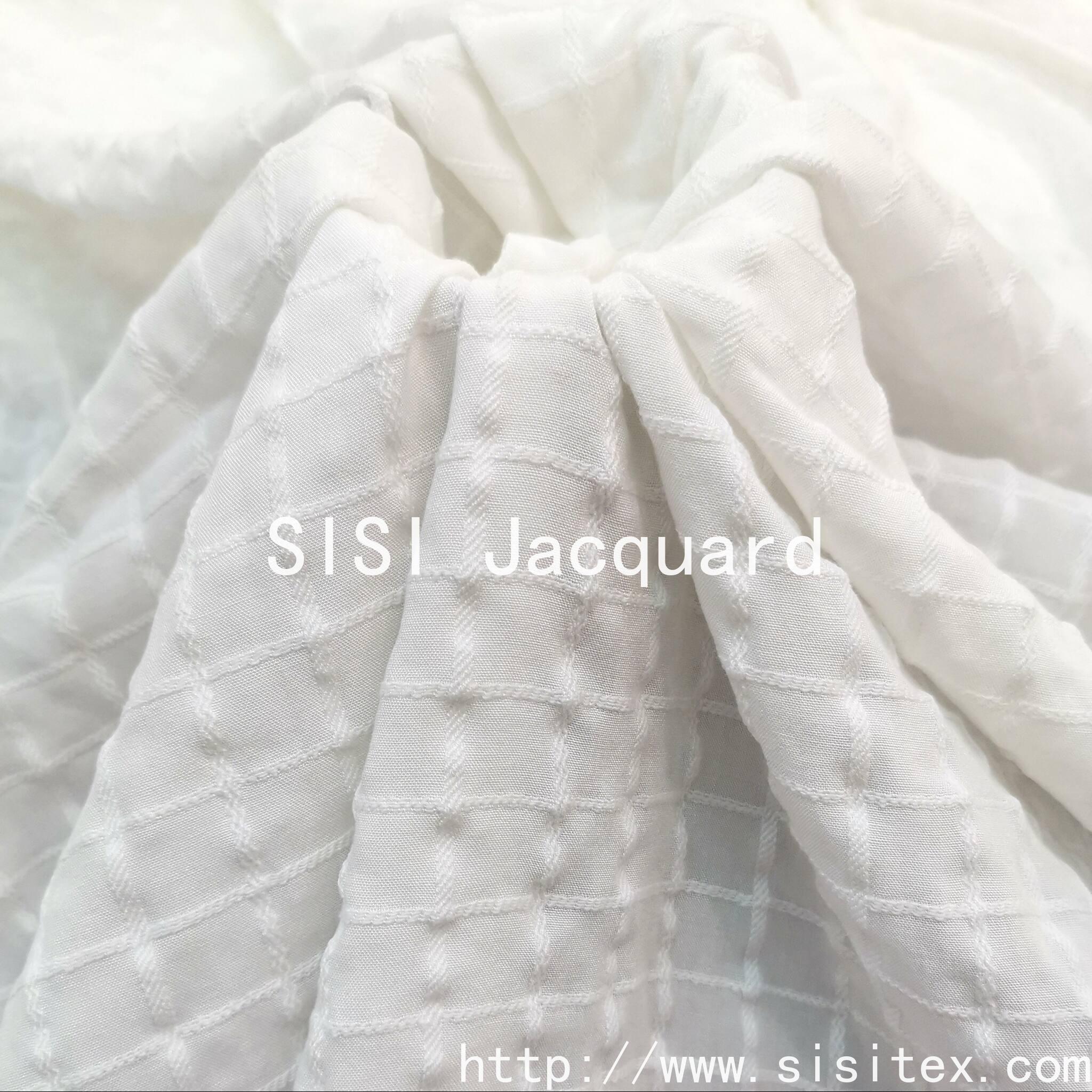 This woven bubble-pattern jacquard fabric (product code SS18691, composed of 65% cotton and 35% polyester) is based on a cotton-polyester blend. Through the three-dimensional relief jacquard technique, large-scale floral patterns with distinct contours are woven onto the fabric surface. The color combination is fresh and has a retro and elegant feel.