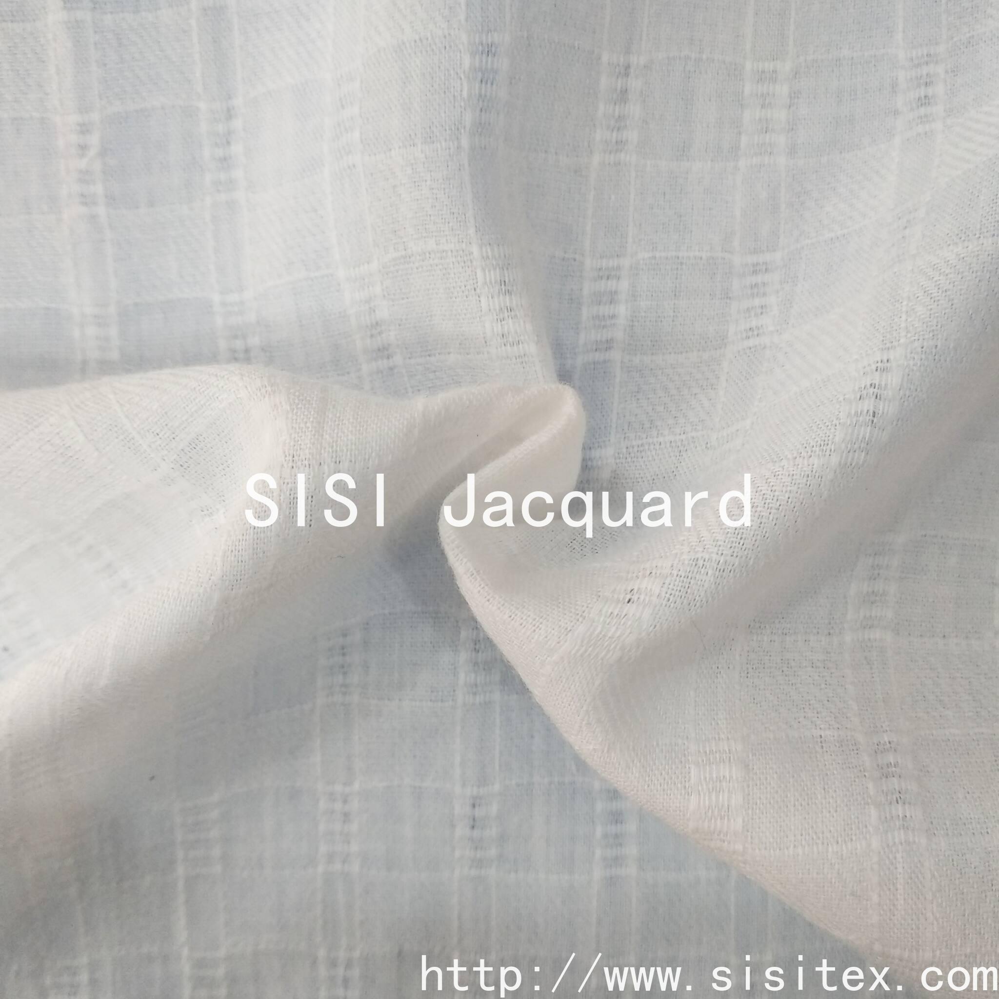 This all-cotton gauze check jacquard fabric is based on 100% natural cotton. Through the jacquard technique, the check pattern is precisely presented. The fabric combines the softness and breathability of cotton with the retro elegance of jacquard, meeting the design requirements of "light retro, heavy texture" in various fields such as summer clothing and home soft furnishings, while conveying the concept of health and environmental protection through natural materials. The retro elements of the check jacquard are suitable for multiple styles, achieving a balance between practicality and aesthetics, making it an ideal choice for those seeking natural texture and aesthetic craftsmanship.