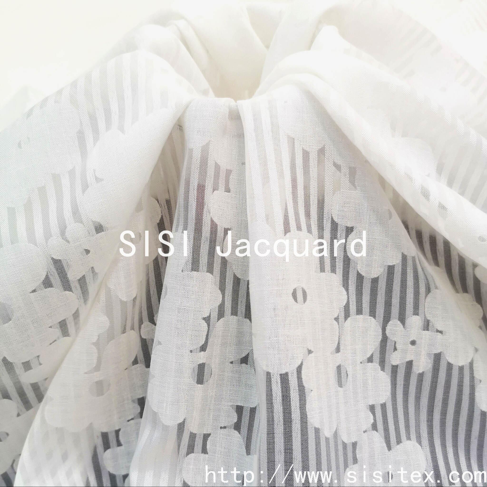 This product features CVC cotton-polyester vertical striped flower pattern fabric (SS18710-Y2), which is composed of 50% cotton and 50% polyester. It adopts the "flower pattern" technique, creating a transparent and perforated effect through local ablation, giving the fabric a visual blend of "subtle transparency" and "exquisite craftsmanship". It is the key carrier of "exclusive design sense"; the cotton-polyester blend balances "skin-friendly breathability" and "rigid drape", suitable for various scenarios such as daily wear, sports, and commuting. The cotton-polyester blend balances the skin-friendly breathability of cotton and the rigidity and drape of polyester, meeting the dual needs of "comfort and style", serving as the "texture base" for styles such as sporty casual and luxury commuting.