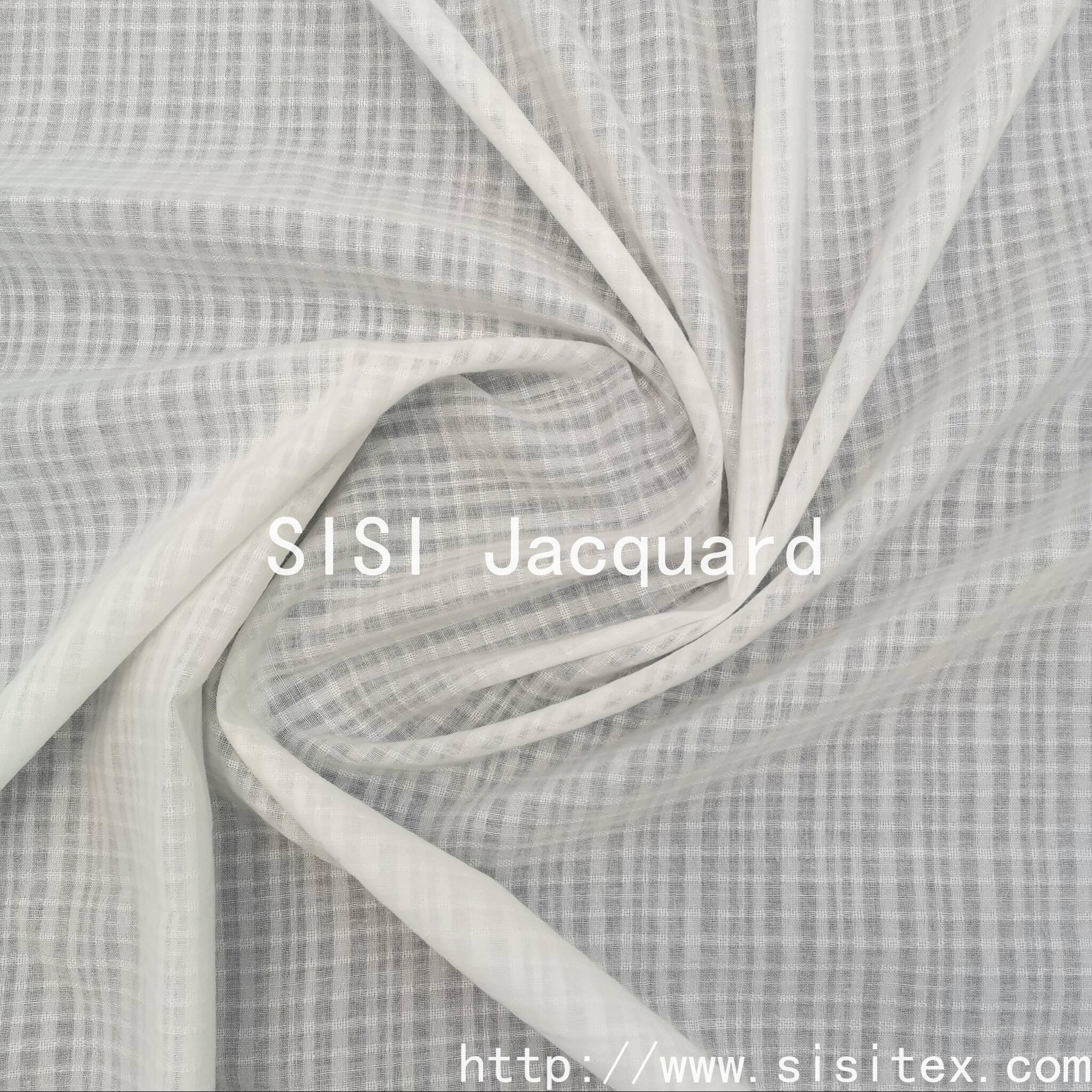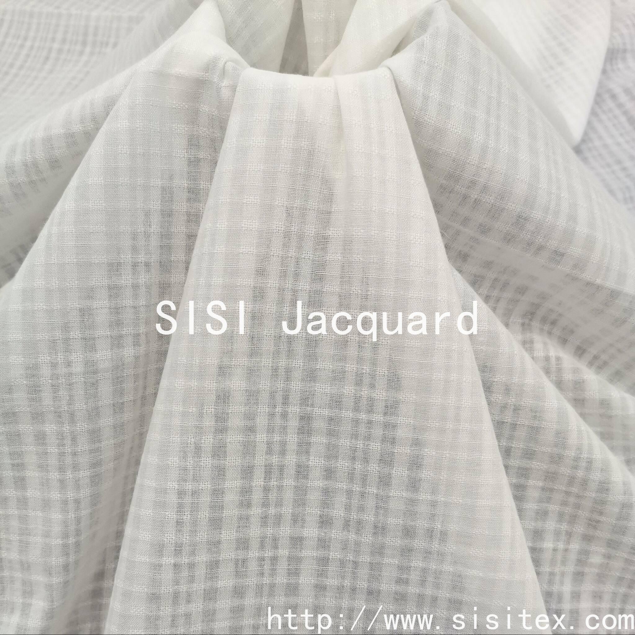 This all-cotton jacquard fabric is made from 100% cotton, offering natural skin-friendliness, breathability and sweat absorption. It is suitable for all seasons. The intricate jacquard pattern creates a smooth and uniform texture, presenting a refined look while remaining understated. It retains the softness and comfort of cotton while enhancing the design through technological upgrades. Whether used to make everyday wear such as shirts and dresses, or to create home wear and accessories, it can balance comfort and aesthetics, making it an ideal choice for those seeking "natural texture + exquisite details".