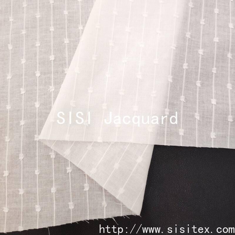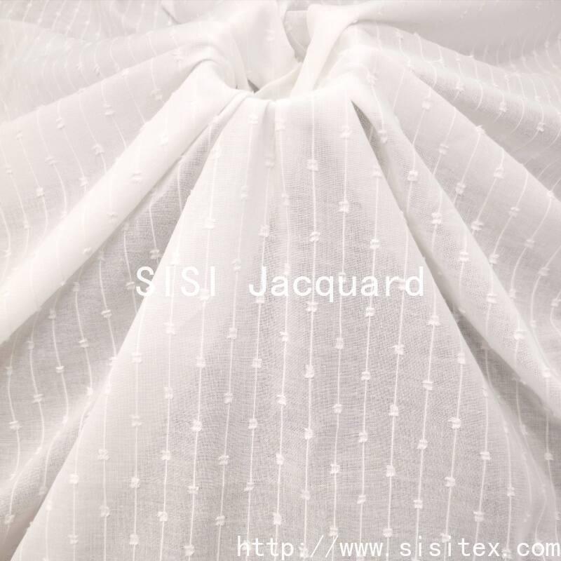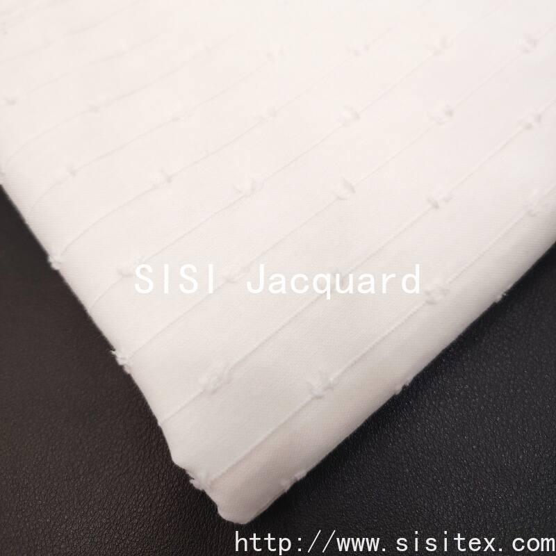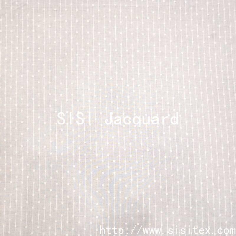 Woven pure cotton vertical stripe jacquard square pattern fabric, made of 100% cotton, featuring vertical stripes and square pattern motifs through jacquard weaving technology.