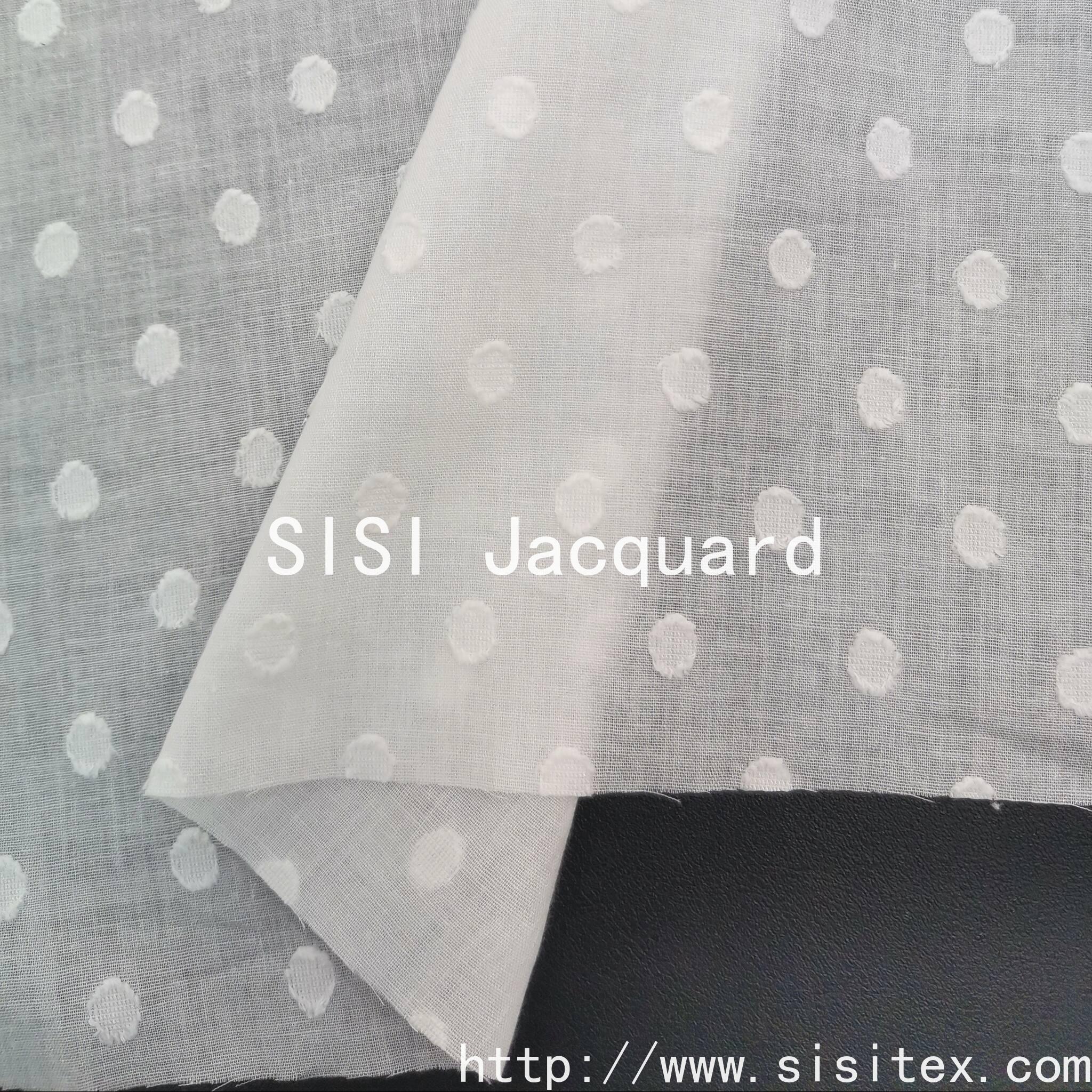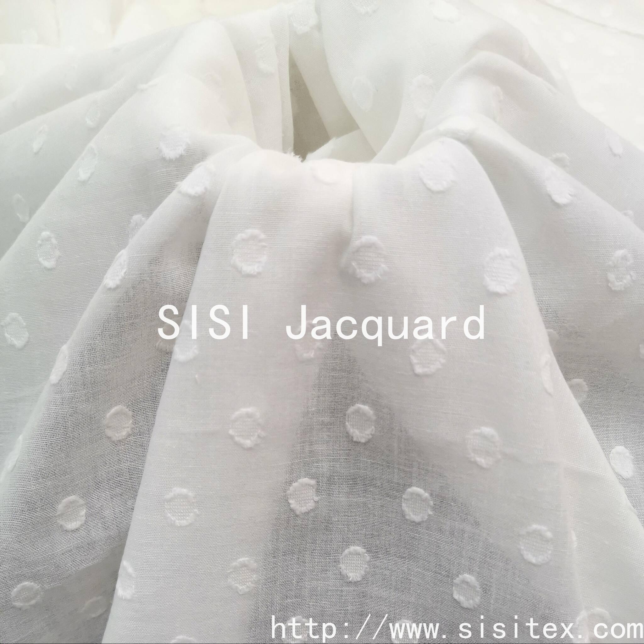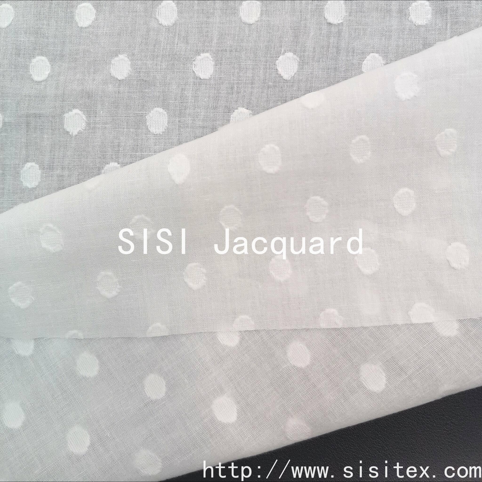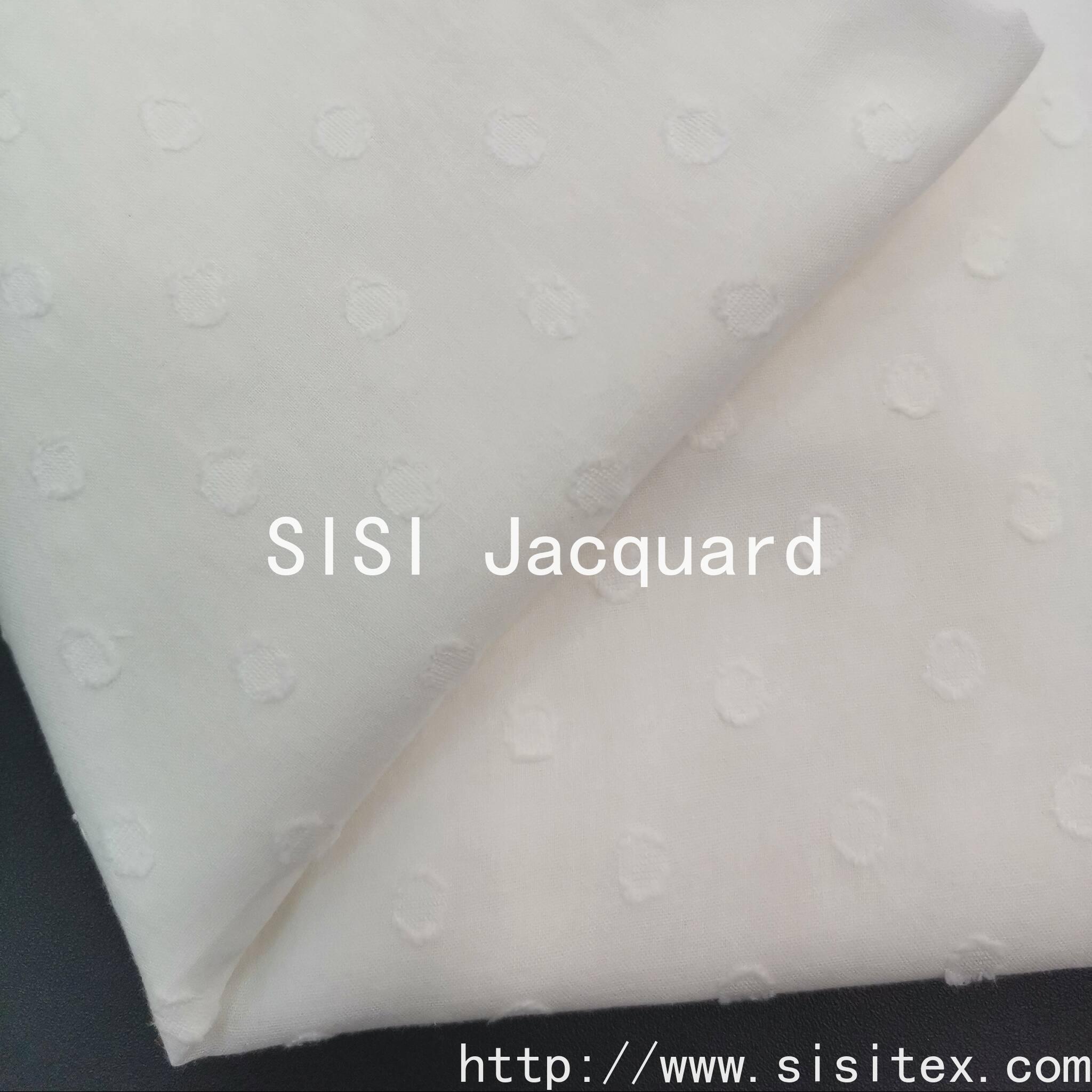 This is a 100% cotton polka dot jacquard fabric - SS18171. It is based on 100% pure cotton and presents a three-dimensional polka dot pattern through the jacquard technique. Then, the details are enhanced with the embroidery technique. The fabric has both natural skin-friendly properties and a three-dimensional artistic feel, suitable for various scenarios such as clothing, home decoration, and handicrafts. The style combines retro elegance and modern freshness, with high craftsmanship and in line with the current sustainable fashion trend. It is a high-quality fabric that combines beauty and practicality.