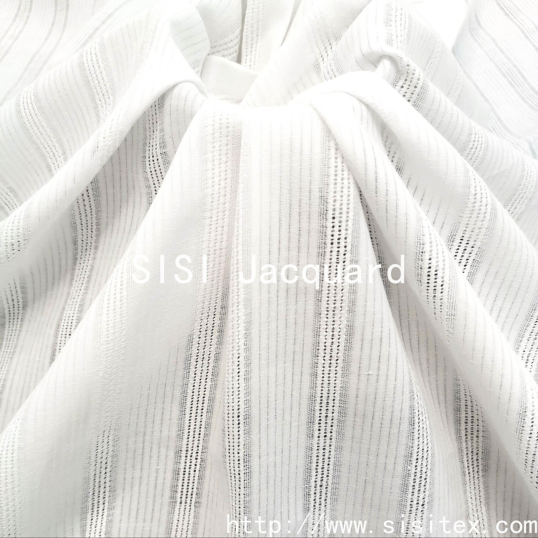 This "Silk Jacquard" all-cotton fabric is woven from 100% high-quality cotton yarn. It combines the "yarn weaving technique" and the "hollowed-out cut pattern design" to create a unique vertical stripe texture. The fabric is light and breathable, with a soft and comfortable touch. Meanwhile, through exquisite jacquard and cut-and-cut techniques, it creates a three-dimensional and hollowed-out visual effect, combining artistic beauty with practical functionality. Whether it is used for spring and summer clothing or home decoration, it can present a natural and elegant high-end texture.
