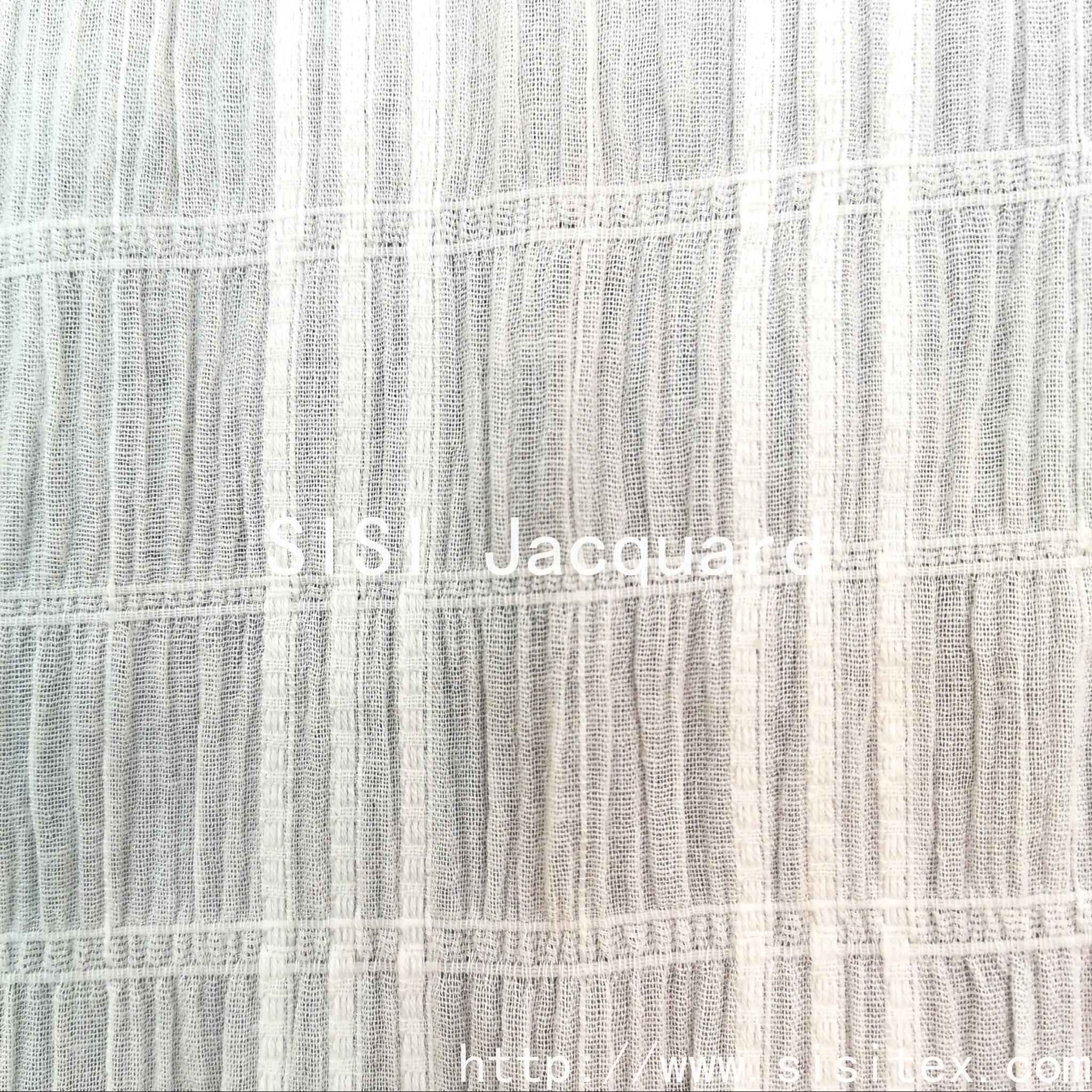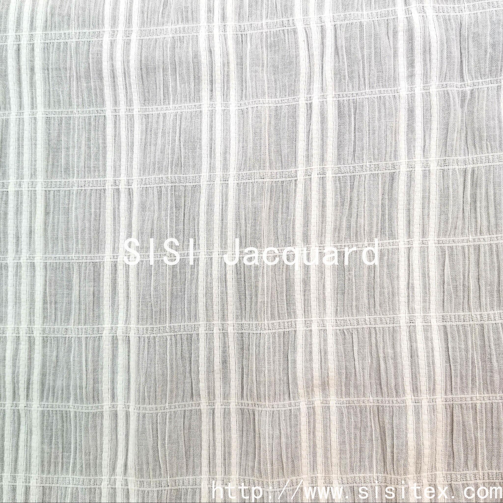 This product is made of cotton jacquard bubble fabric with stretch crepe texture. It is made of natural cotton, which is soft, breathable and comfortable to the skin. The jacquard pattern creates a three-dimensional and fluffy texture, and the elasticity is suitable for various body shapes. The combination of 97% cotton and 3% spandex ensures softness and breathability of the cotton, while the spandex provides elasticity. The jacquard technique creates a three-dimensional texture, with bubble wrinkles being fluffy and crepe fabric having a draping effect. Both visual and tactile experiences are upgraded. It is made of natural cotton, comfortable to the skin, with a three-dimensional fluffy texture, suitable for various body types, and suitable for daily wear in spring and summer. The combination of the fluffy bubble wrinkles, the draping effect of the crepe fabric, and the elastic properties meet the functional requirements of "lightweight and breathable + multi-scenario adaptability", and is suitable for daily and casual scenarios in spring and summer.