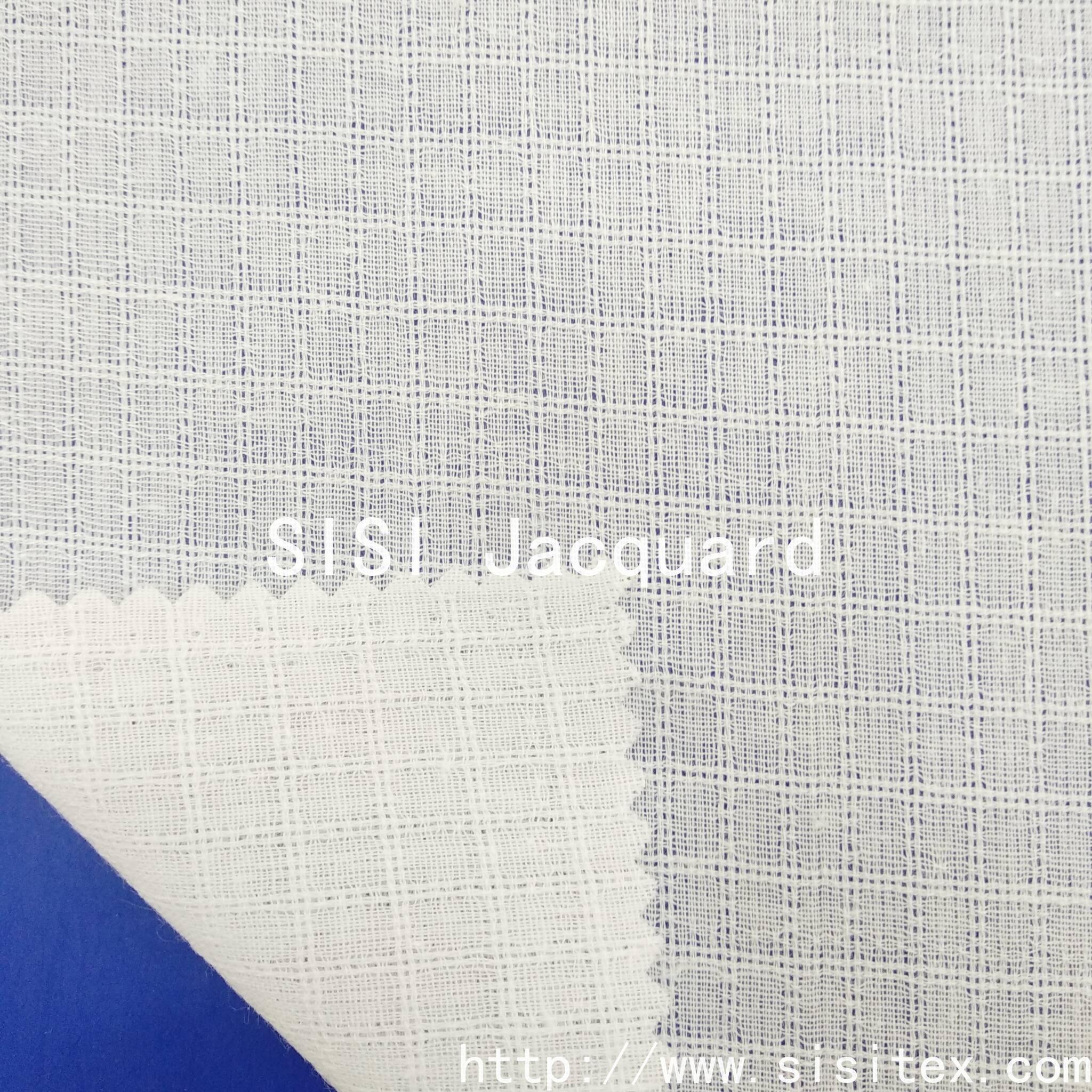 This product is made of a fully square-pattern jacquard fabric SS18187, 100% cotton. It is naturally breathable, fits closely without irritating the skin, and is good for skin health. The jacquard technique precisely presents the square pattern, and the design enhances breathability. The craftsmanship details showcase the quality. The combination of square jacquard and technique retains the retro charm of traditional patterns while injecting modern fashion elements through the design. It is suitable for various styles of clothing and home items. It can be used for women's dresses, shirts, men's shirts, home sets, etc., meeting the needs of daily wear and home decoration.
