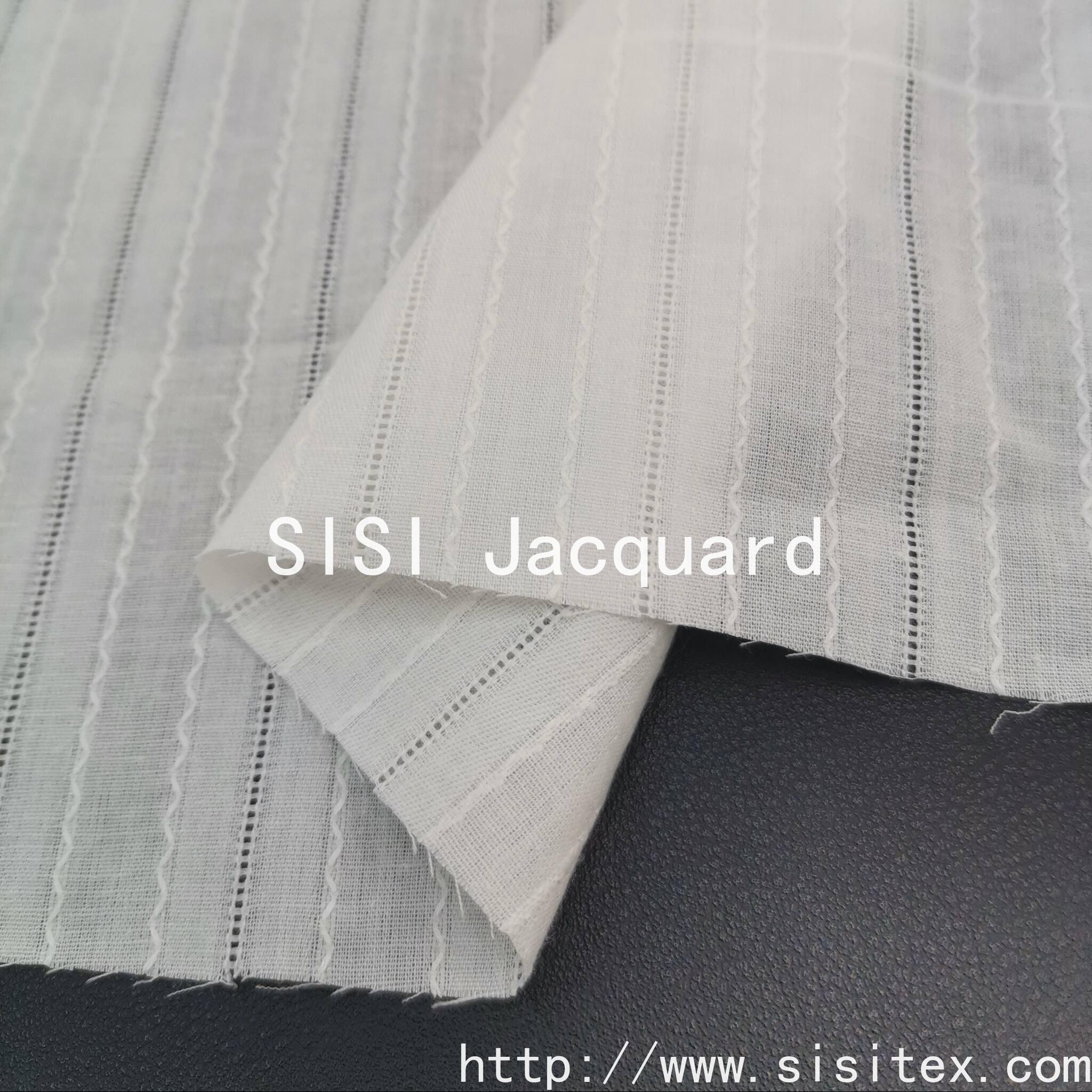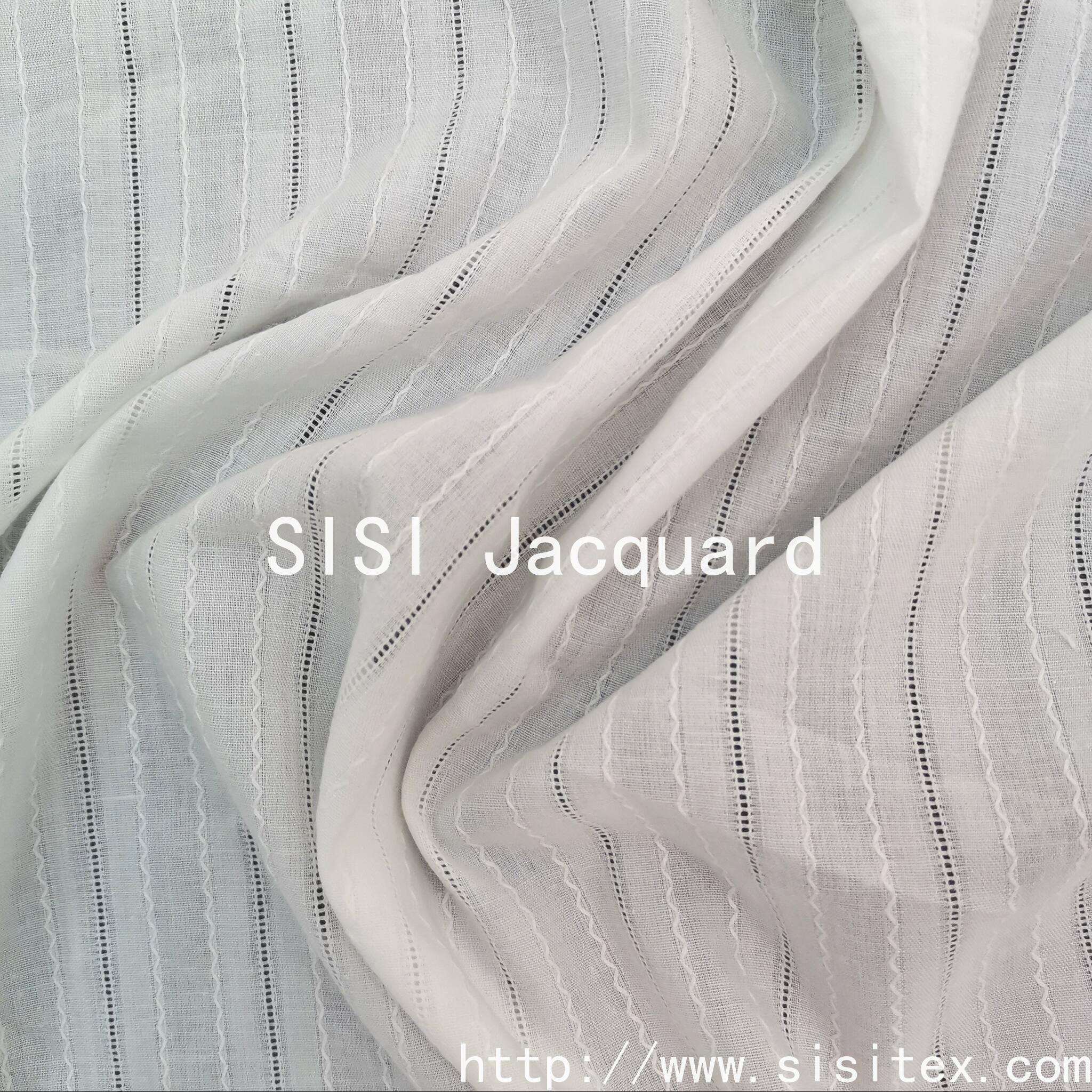 This product is a full-striped gauze fabric with hollow and jacquard patterns, SS18188. The design direction that combines naturalism with technology makes the jacquard the core carrier of "balancing aesthetics and functionality"; the pattern jacquard elements echo the retro style of Japan and South Korea, and the geometric texture creates a simple and elegant feeling;