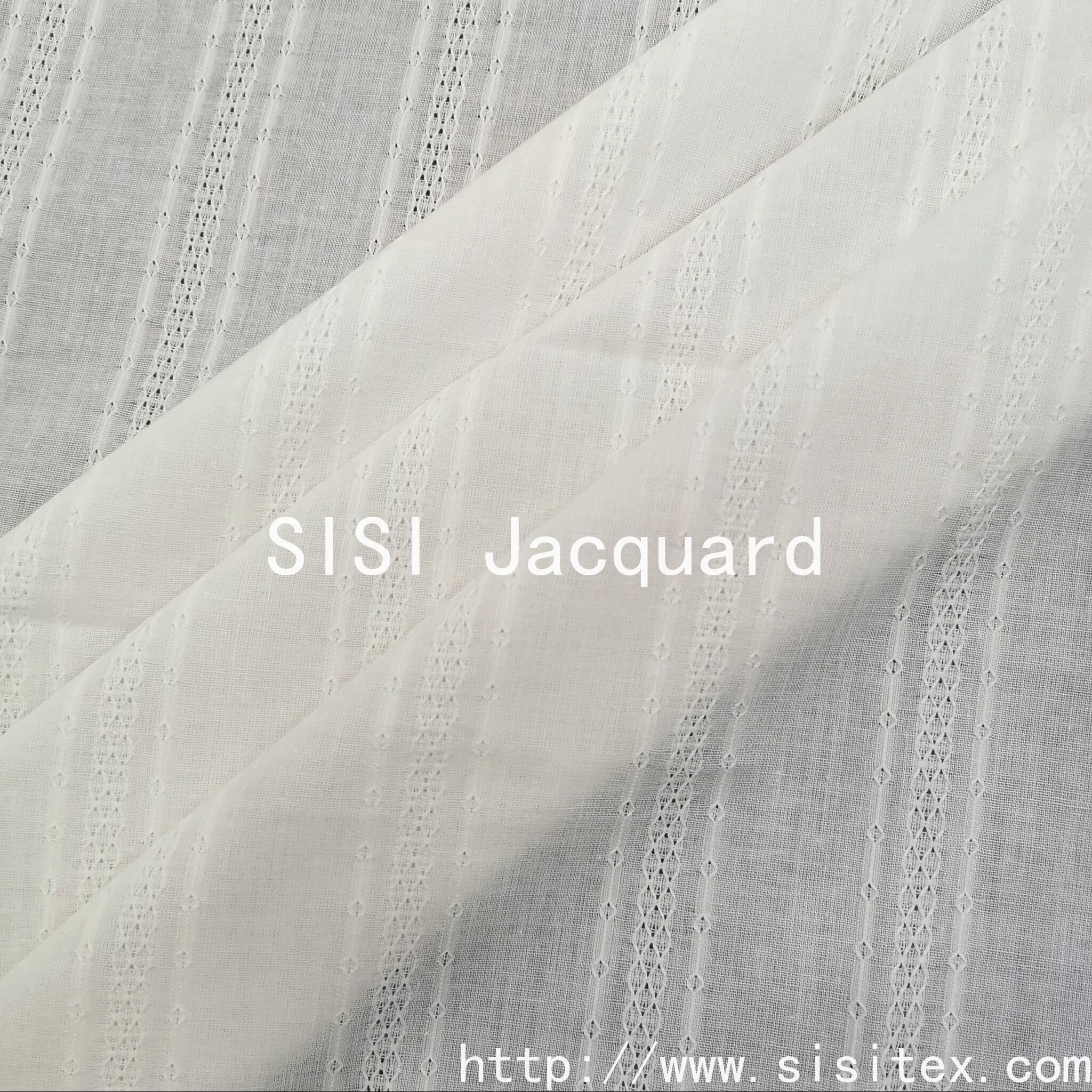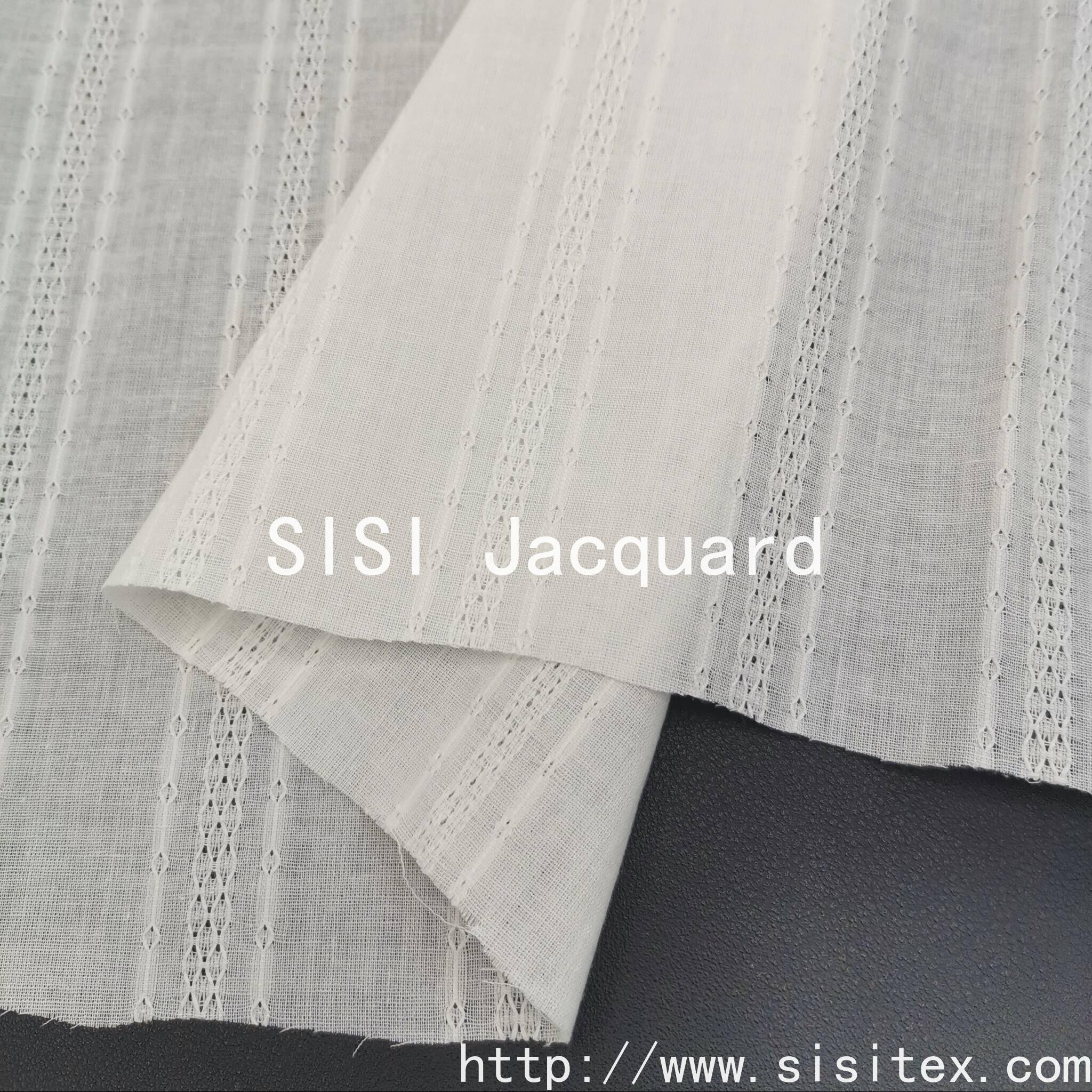 This product is a woven cotton muslin jacquard fabric SS18753. The all-cotton material aligns with the sustainable fashion trend. The jacquard technique gives the fabric a three-dimensional texture, meeting consumers' dual demands for "natural texture + unique design". It is suitable for everyday items such as shirts, dresses, and home wear. The combination of the jacquard pattern and the cotton's skin-friendly property creates a comfortable and aesthetically pleasing wearing experience. The jacquard technique replicates traditional patterns, combined with the warm texture of cotton, conveying the Eastern charm of "traditional aesthetics + modern design". The jacquard texture and the cotton's breathability are compatible, balancing both decorative and practical aspects.