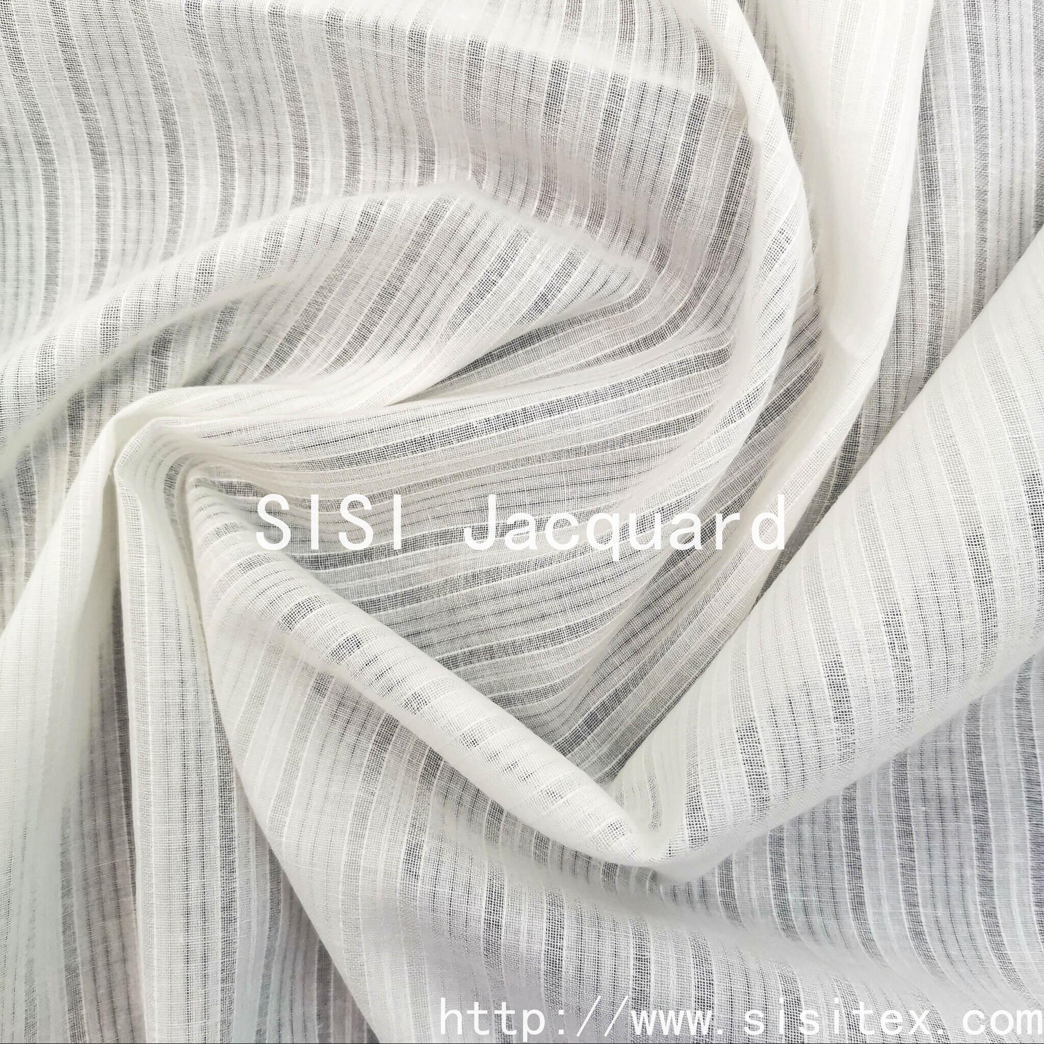 This product is a woven cotton voile with hidden strip jacquard fabric SS18191. It is made of 100% pure cotton yarn. The woven voile structure ensures good breathability. The hidden strip jacquard technique creates delicate textures, presenting a visually exquisite and soft touch. The pure cotton material is skin-friendly and breathable, with no irritation when in contact with the skin. The voile structure is lightweight and breathable, enhancing the visual identification of the clothing, while also balancing aesthetics and practicality. Pure cotton is a renewable natural fiber, and the production process is environmentally friendly, aligning with the sustainable fashion trend.