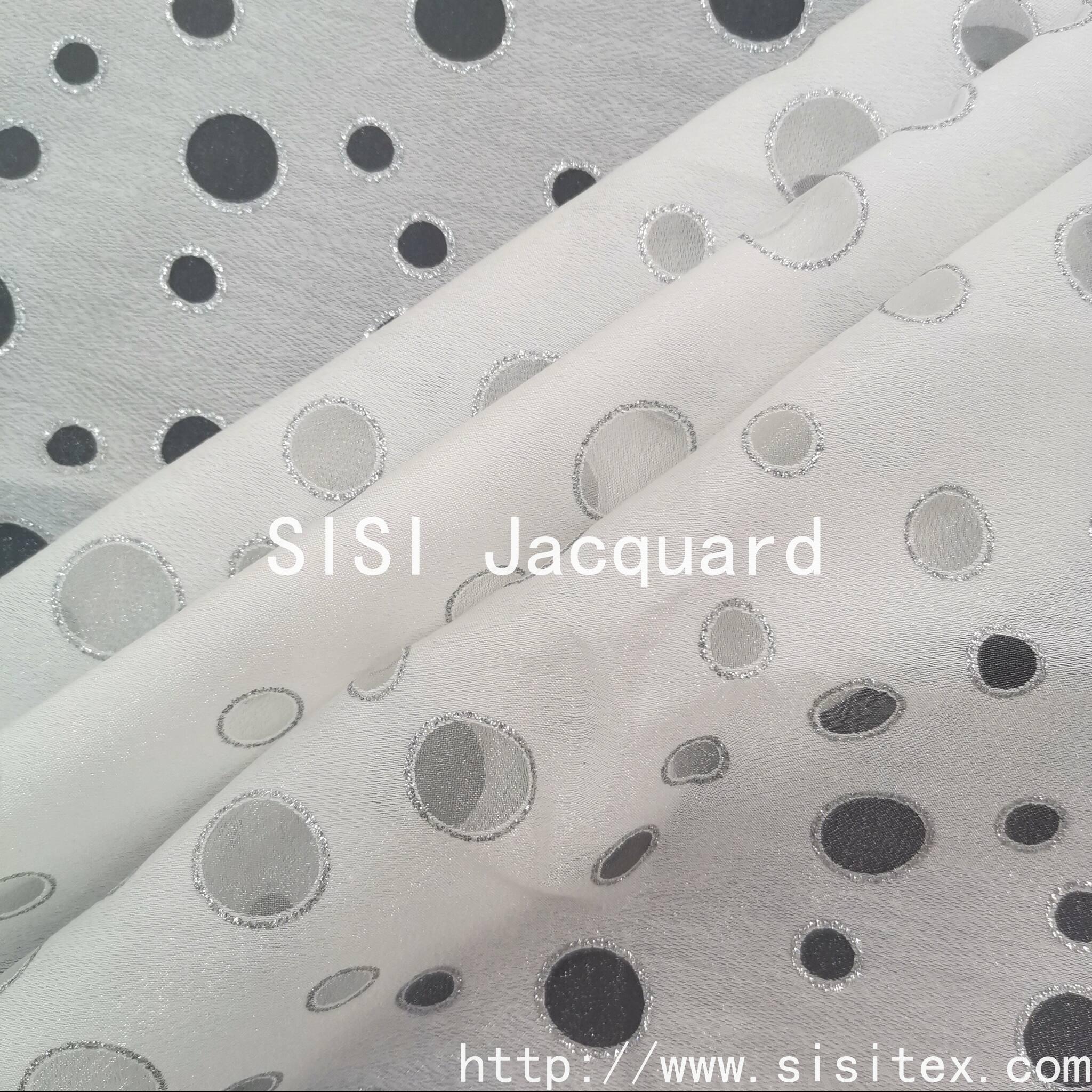 This product is the TR Gold-stamped round circles with damaged and burned flowers fabric SS18754-Y1. It is made through the burning process, where chemical agents selectively remove the fibers to create natural, irregular circular patterns. It combines the retro and incomplete aesthetic with modern artistic appeal. The combination of TR fabric and the burning process not only retains the anti-wrinkle and wear-resistant properties of the TR fabric, but also gives the fabric a unique three-dimensional relief effect and perforated design, making it an important design in the spring and summer clothing and home decoration fields.