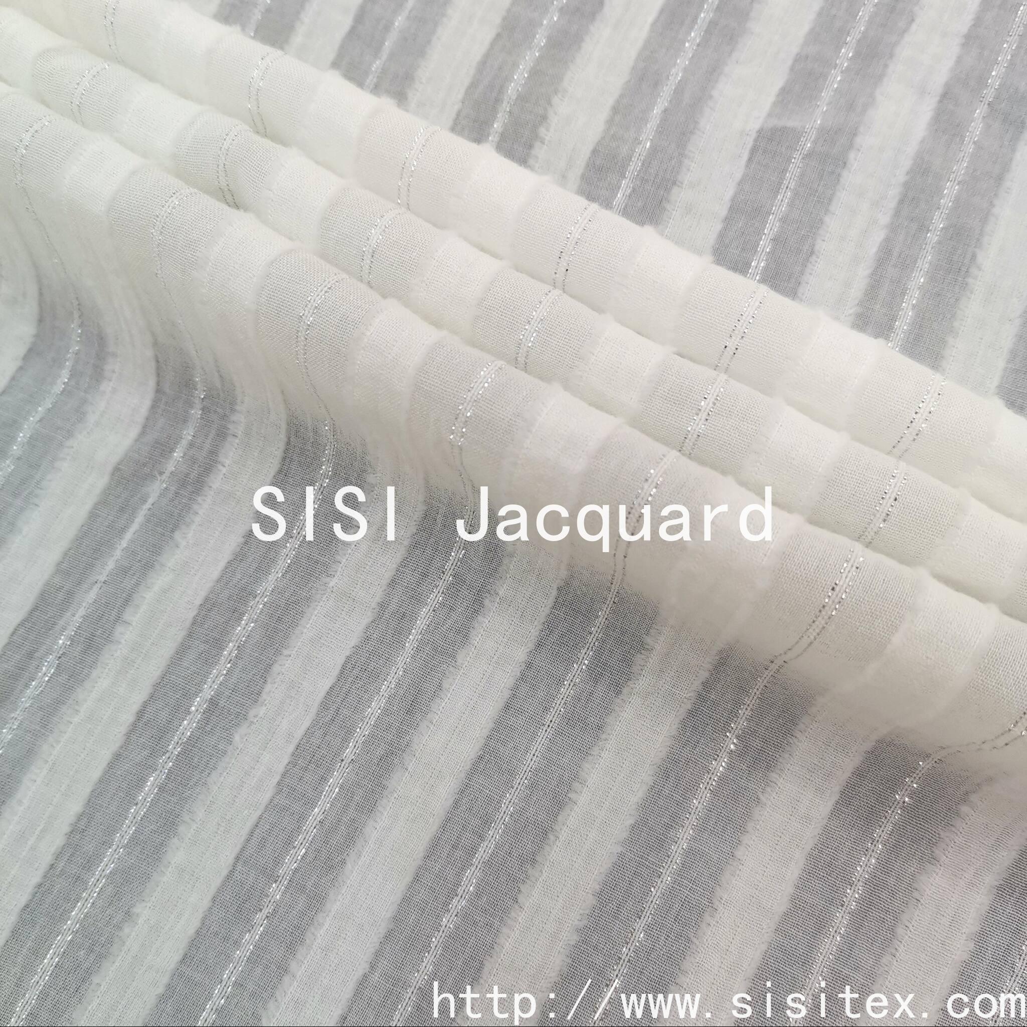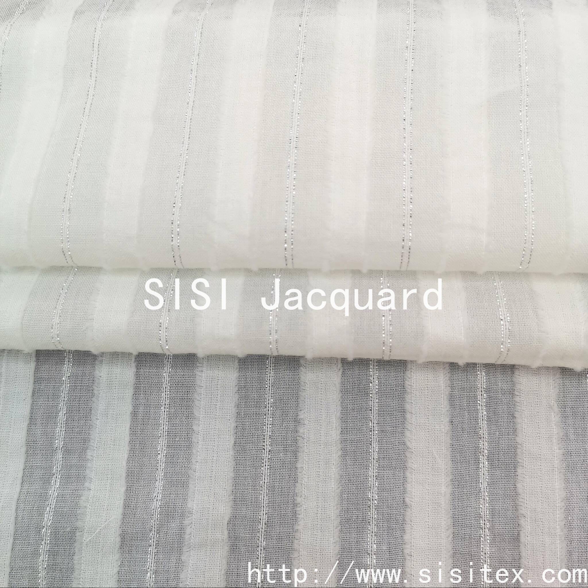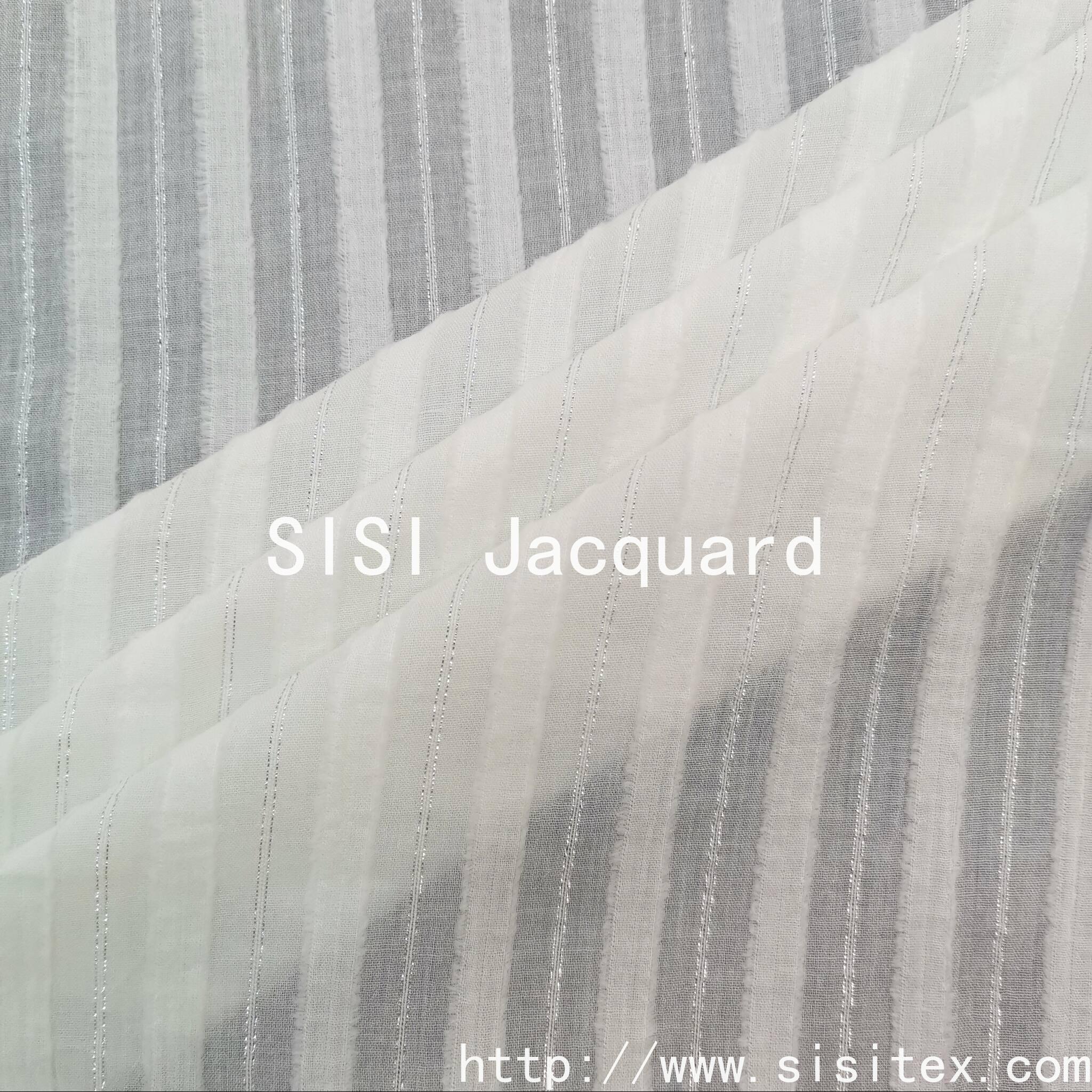 This product is made of 100% cotton with silver thread trim and jacquard pattern. The silver thread trimming technique enhances the elegance of the fabric. The jacquard design accentuates the artistic details, making the fabric have both "natural texture" and "refined embellishments". The combination of the silver thread's luster and the retro feel of the jacquard creates a style suitable for traditional clothing such as cheongsam and hanfu, reinforcing the "Oriental aesthetic" tone. The cotton's skin-friendly and breathable properties make the fabric suitable for daily commuting, outdoor leisure, and other scenarios, conveying a relaxed and carefree atmosphere.