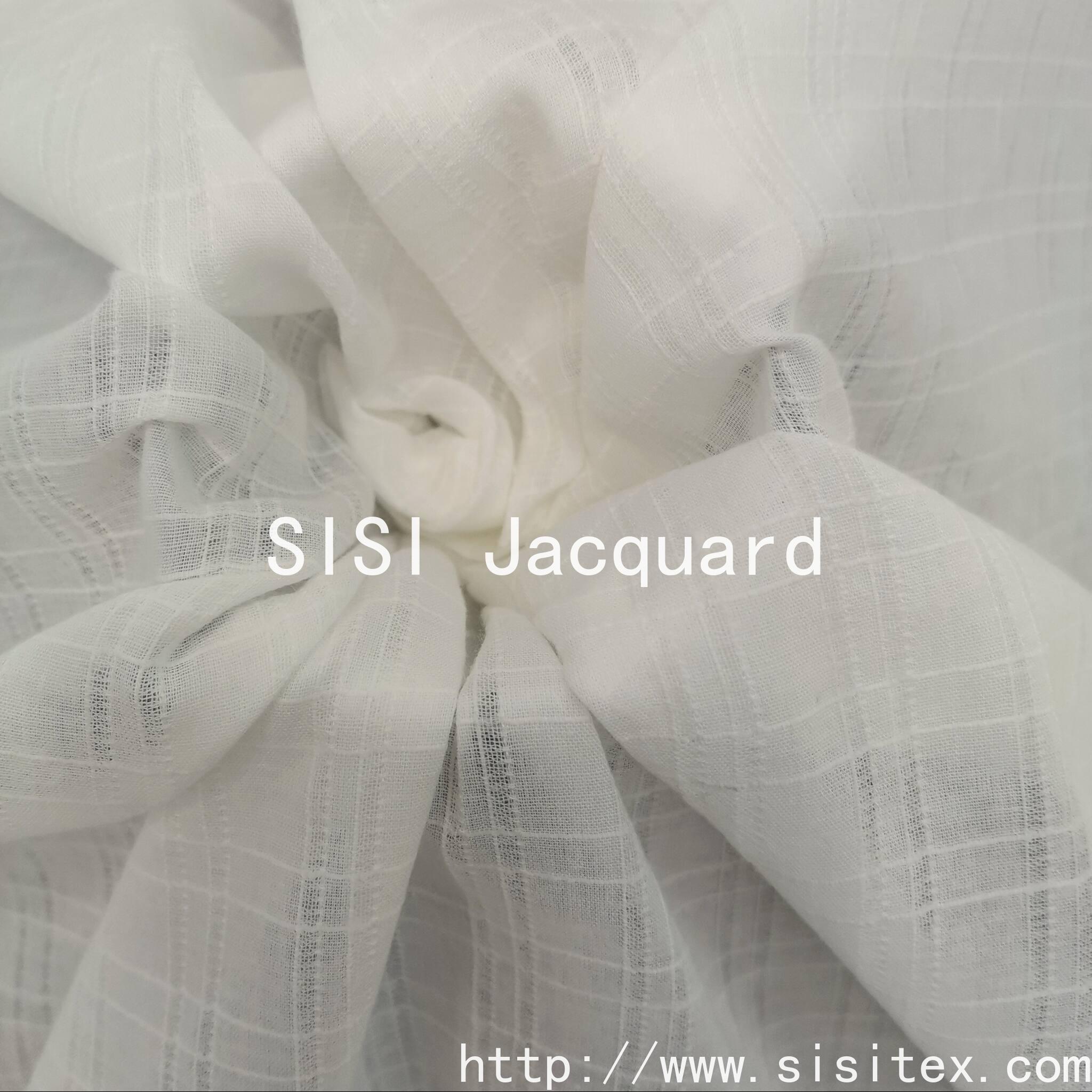 This product is made of 100% combed cotton jacquard fabric SS18195. It features a subtle check pattern created by the precise interweaving of warp and weft threads. The jacquard technique gives the fabric a three-dimensional texture, distinct from the flatness of printed patterns, and it is highly artistic and unique. The retro check design is suitable for refined styles such as small-chic and new Chinese style. It has a "detail-oriented" attribute for daily wear; the all-cotton material is soft and breathable, not causing excessive sweating when worn close to the body, and the comfort lasts throughout the day. The cotton fabric is durable , and it doesn't shrink or shed fibers after washing. The daily maintenance is convenient and effortless. Whether for commuting, dating, or at home, it can be easily worn, making "elegant and retro" the base color of daily outfits.